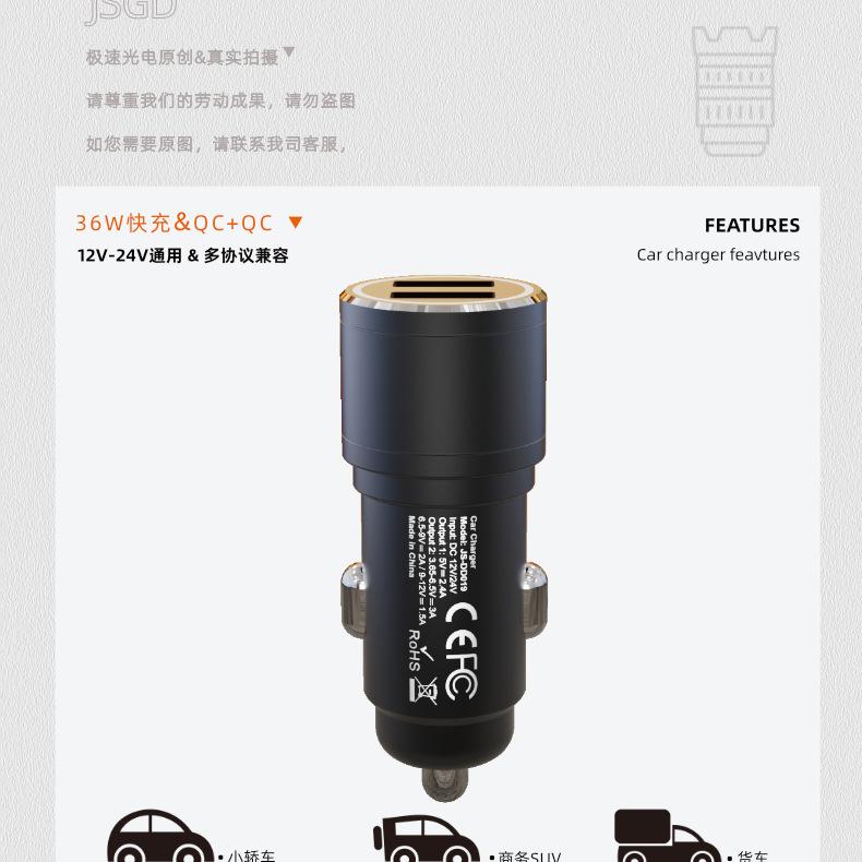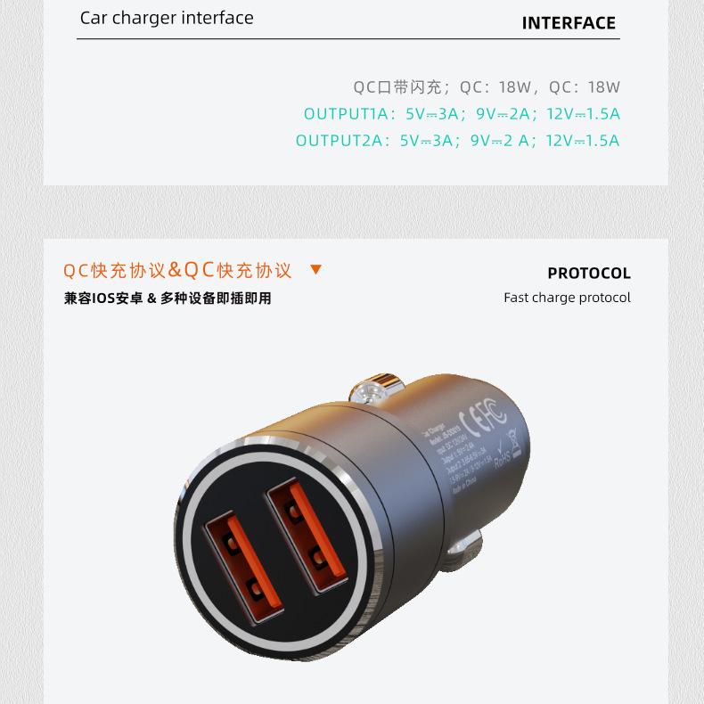Cargador de coche QC36W al por mayor encendedor de cigarrillos carga rápida para teléfono móvil cabezal de carga USB para coche Cargador de coche Carga Súper Rápida