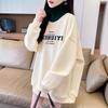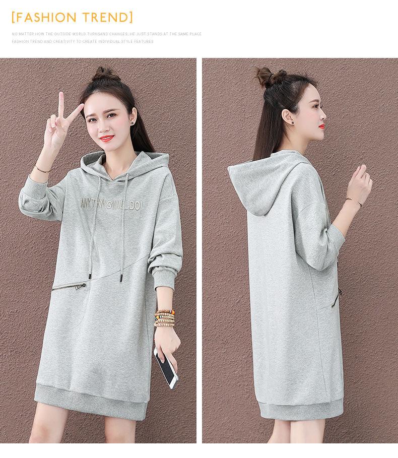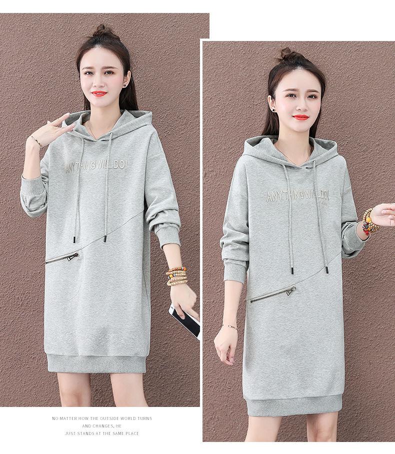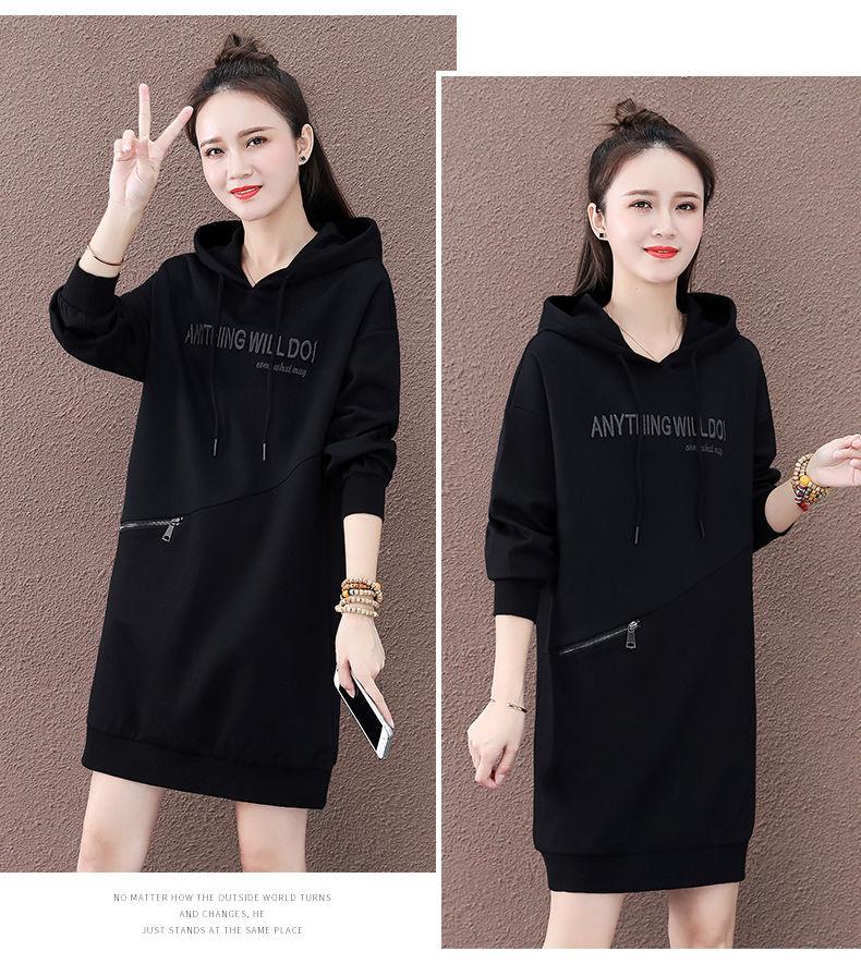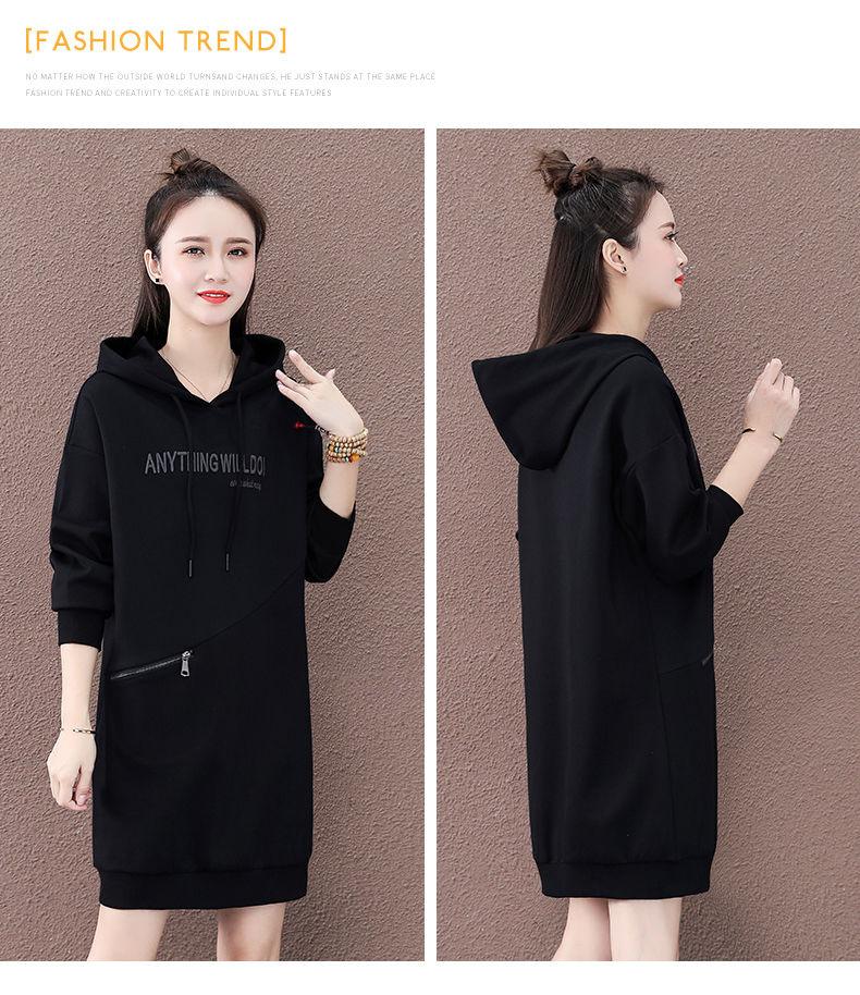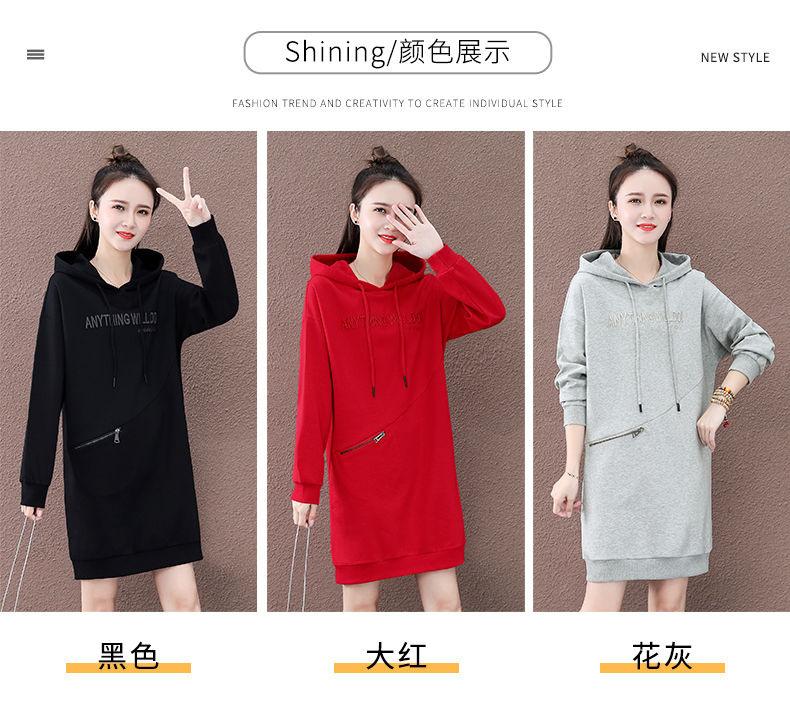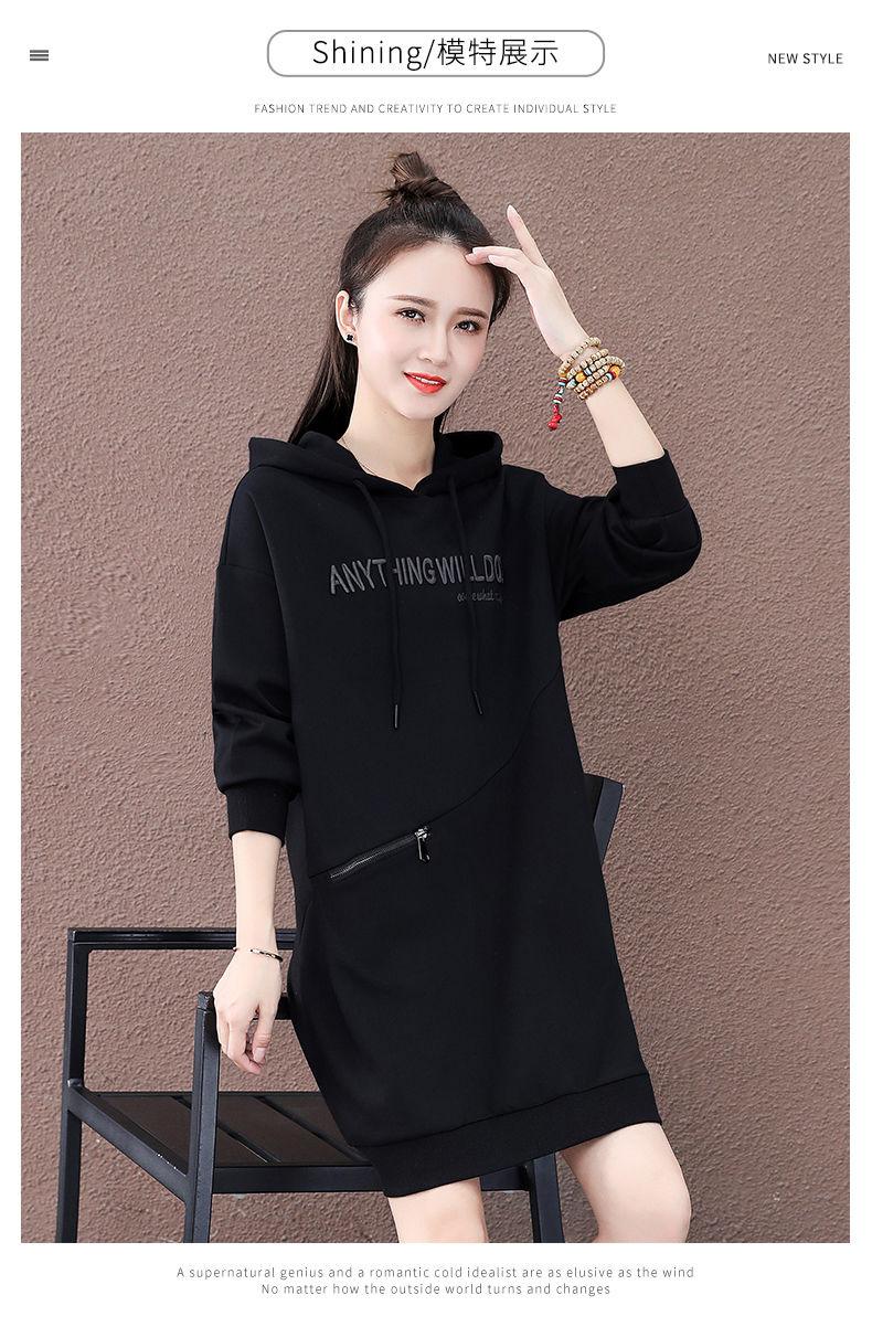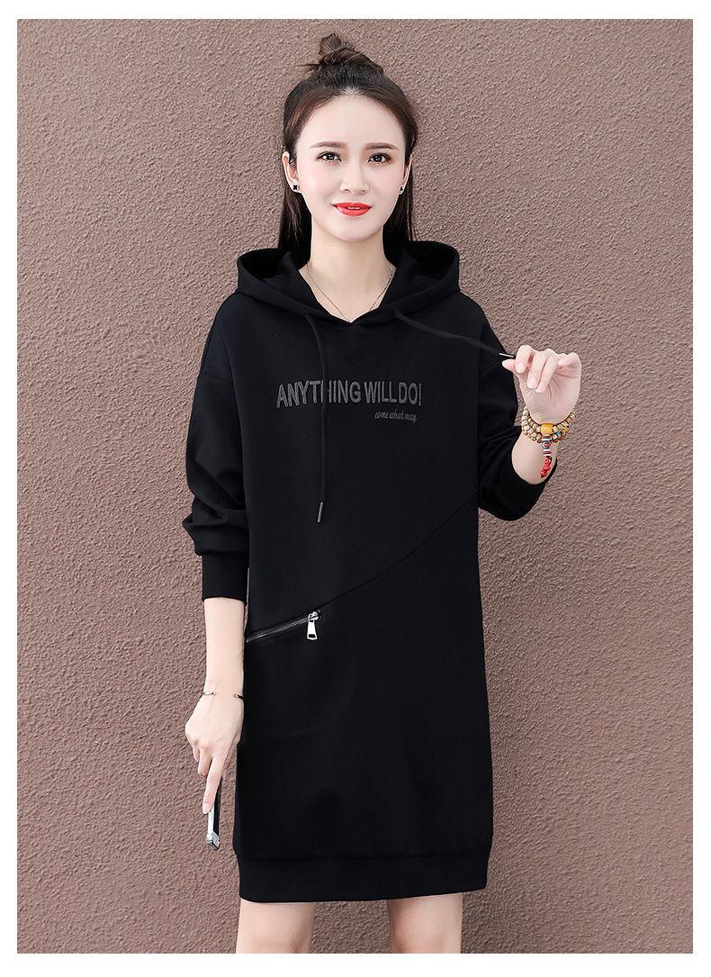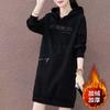 Suéter con falda larga de 200 kg, grueso y forrado de vellón para otoño/invierno, jersey de chica gordita para mujer, abrigo holgado con letras bordadas