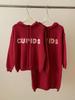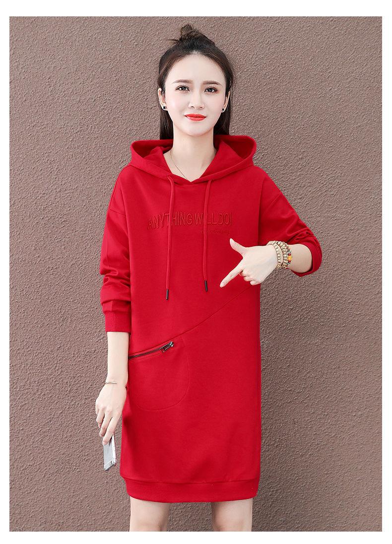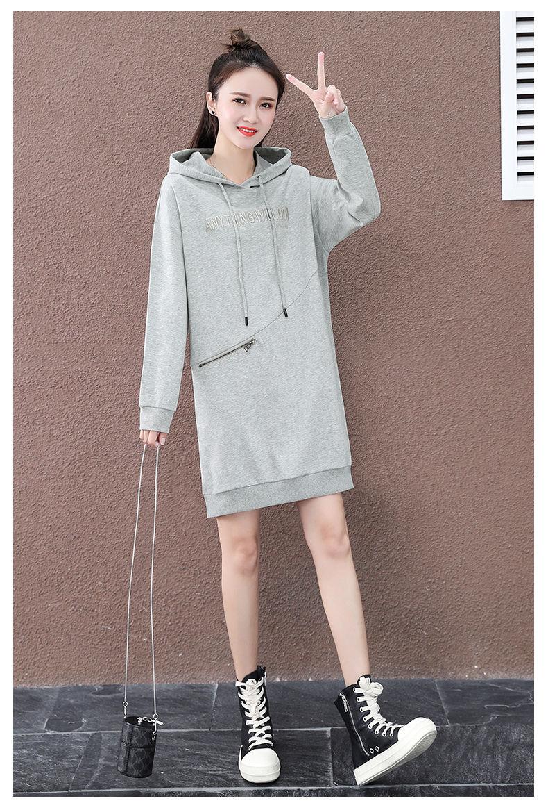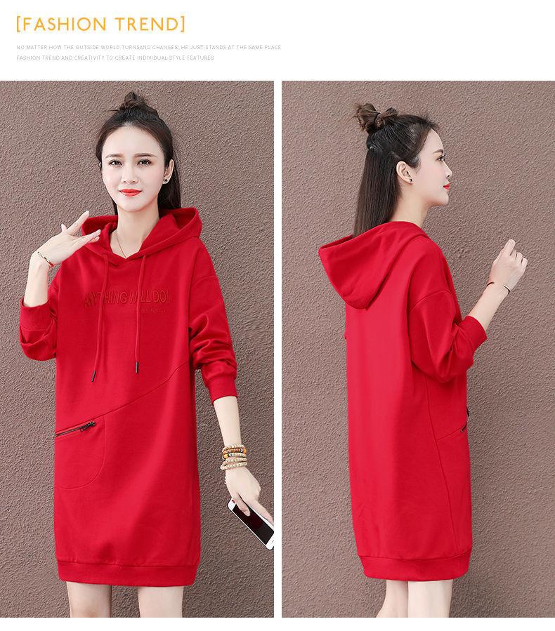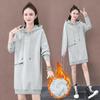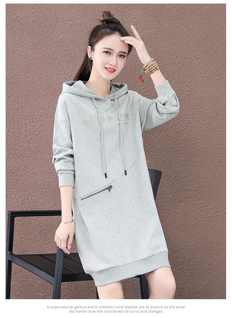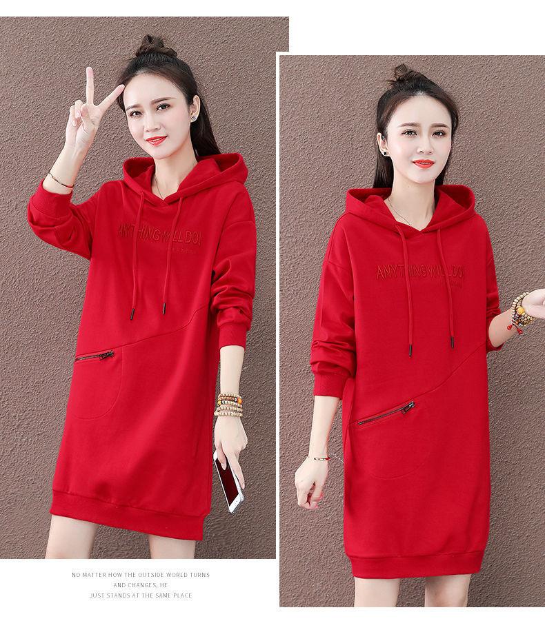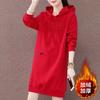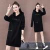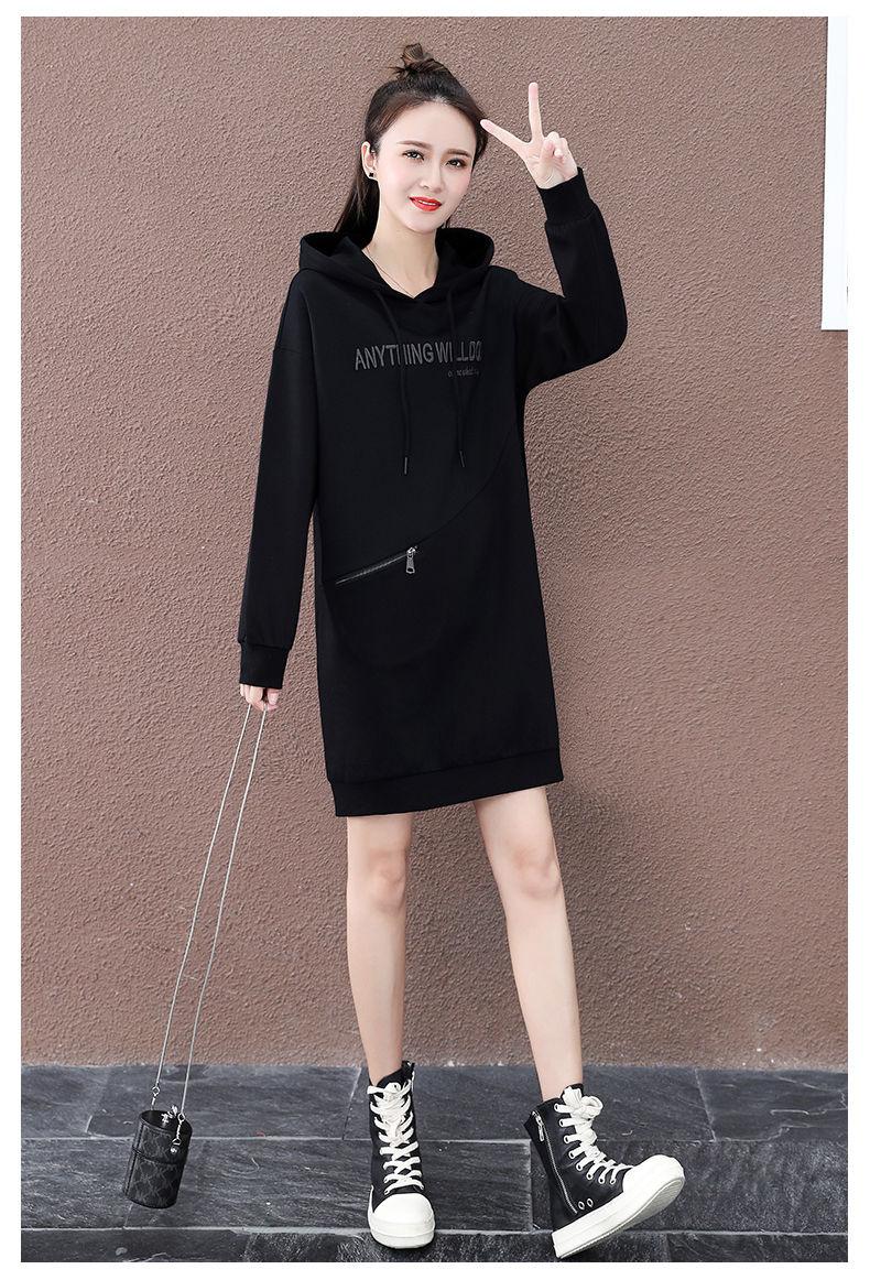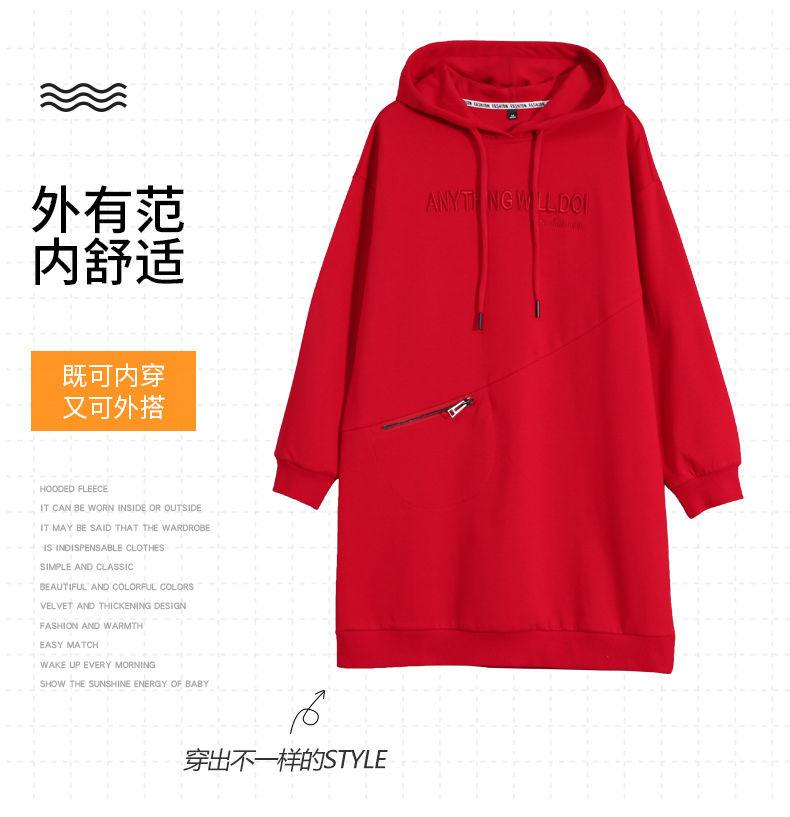 Suéter con falda larga de 200 kg, grueso y forrado de vellón para otoño/invierno, jersey de chica gordita para mujer, abrigo holgado con letras bordadas