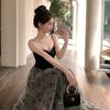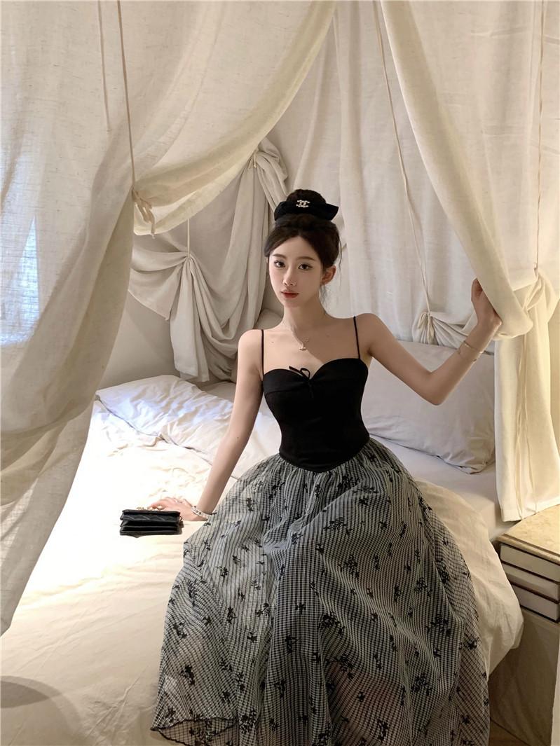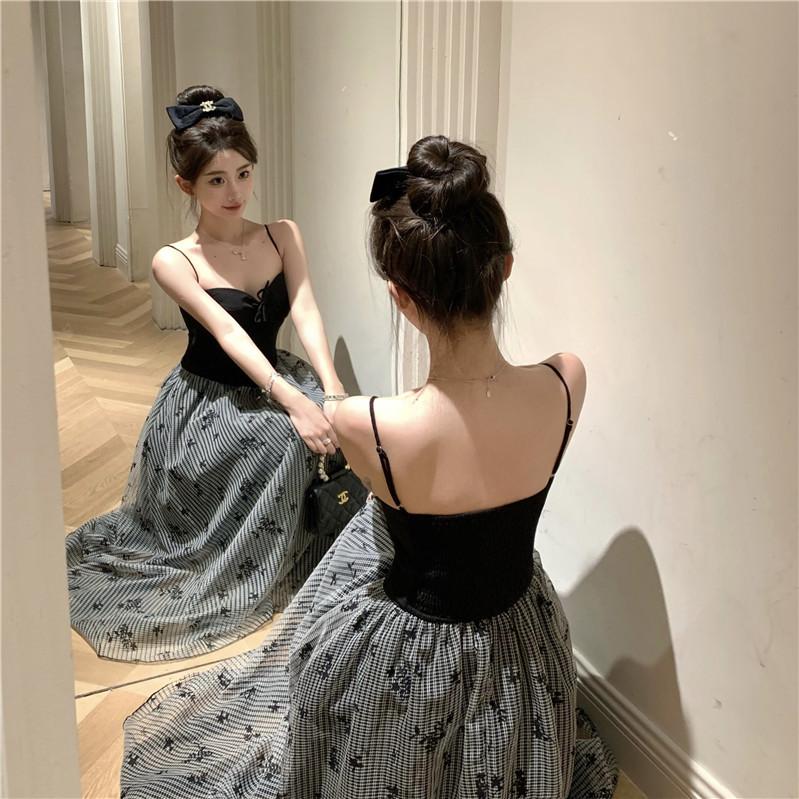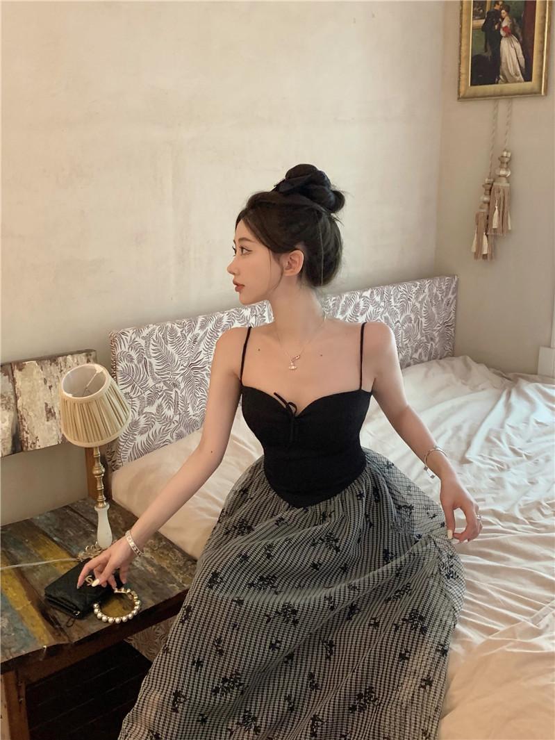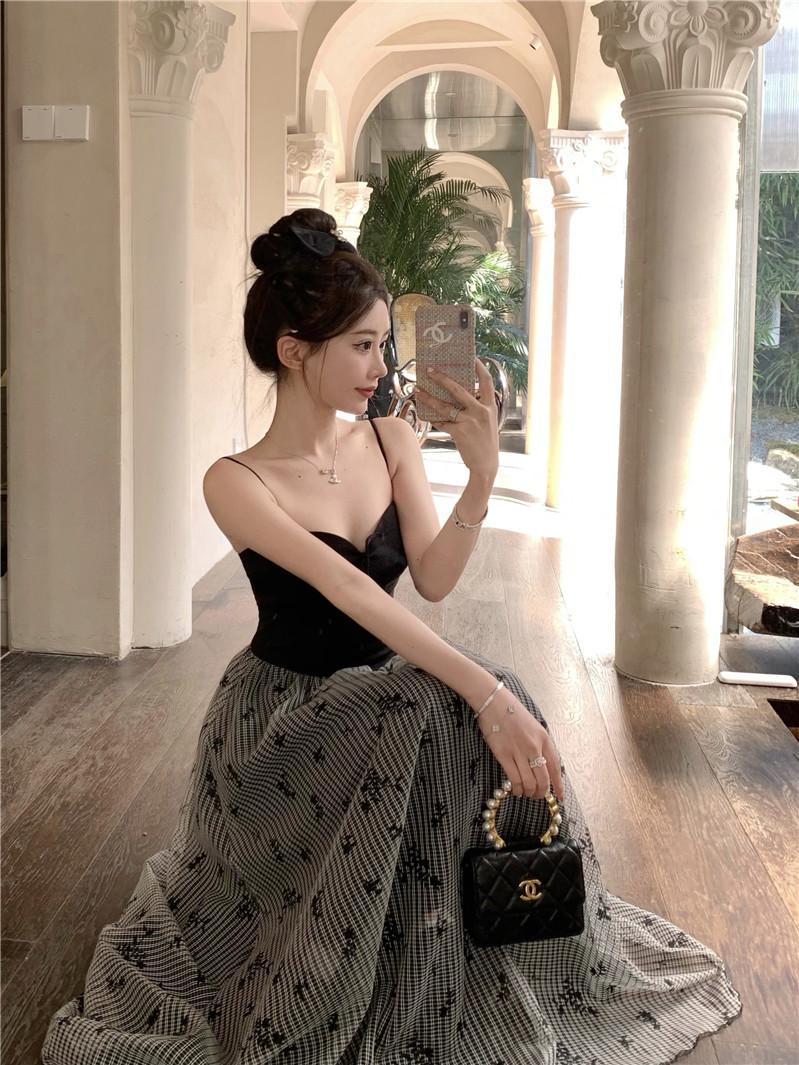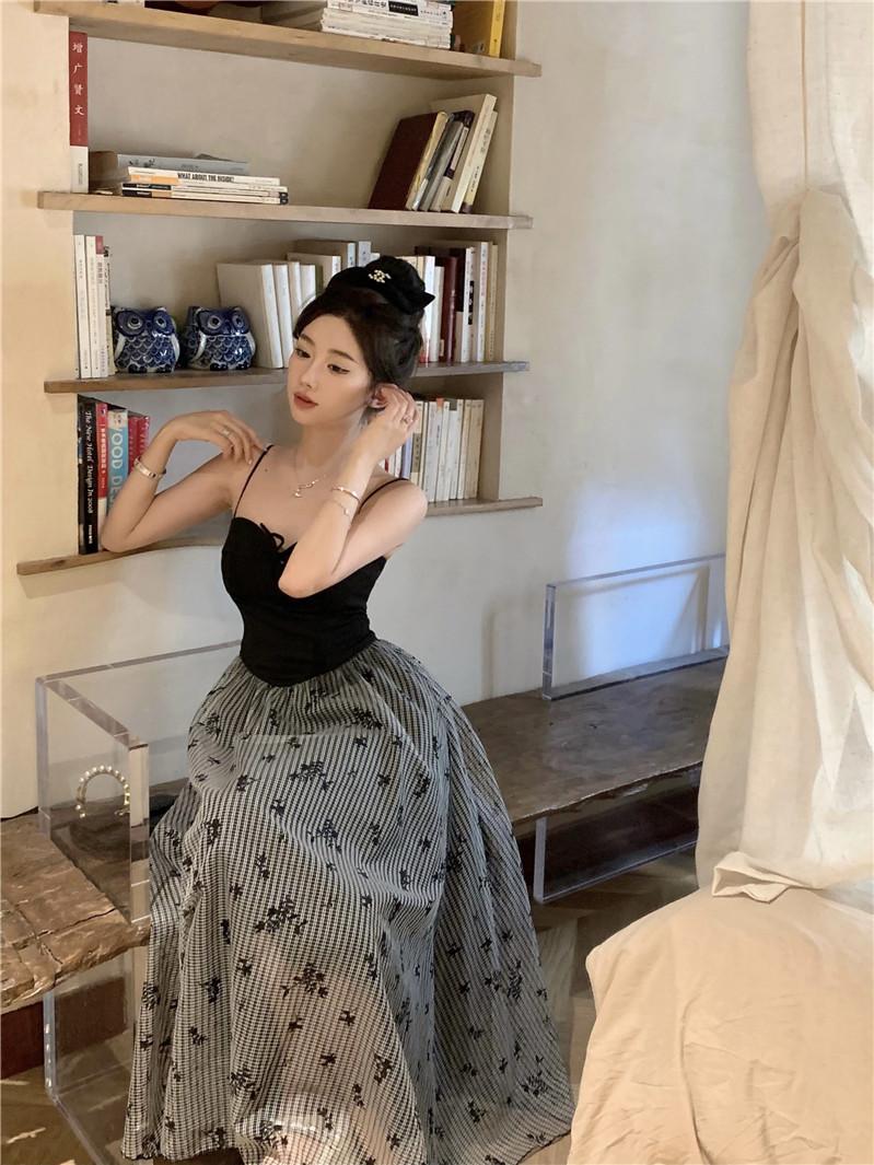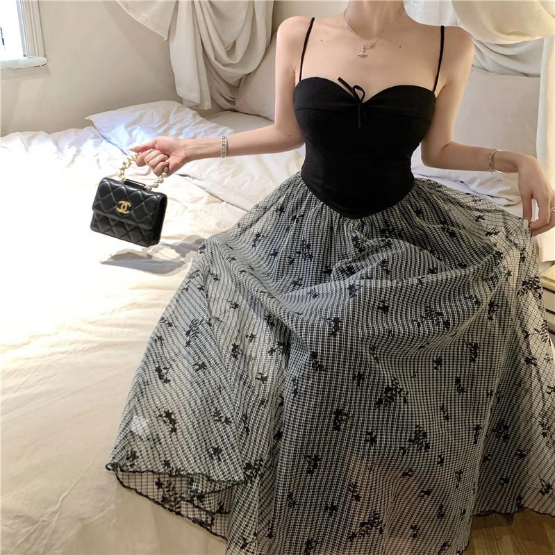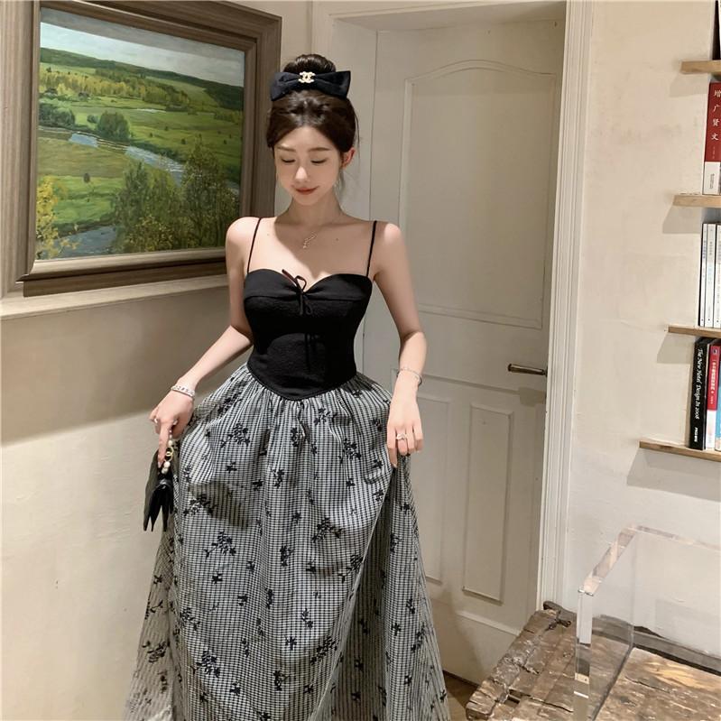 Foto Real de Vestido Floral Retro Francés Estilo Hepburn con Tirantes Verano 2025 Look Adelgazante Estilo Lujuria Pura Vacaciones Falda Larga