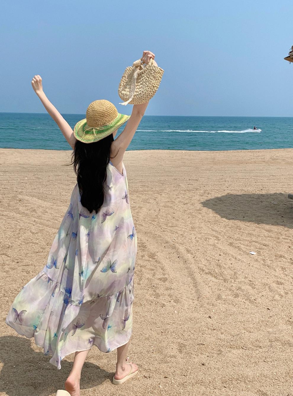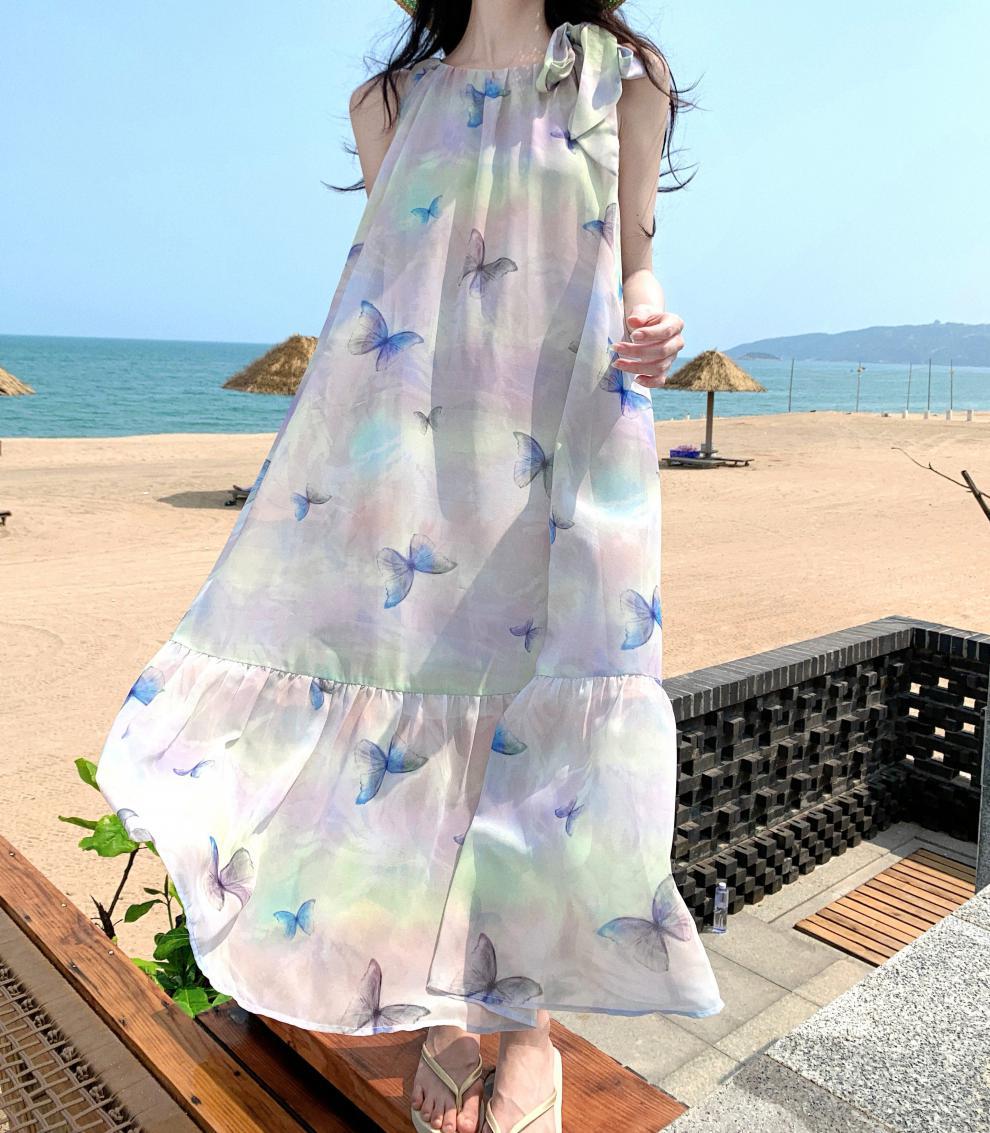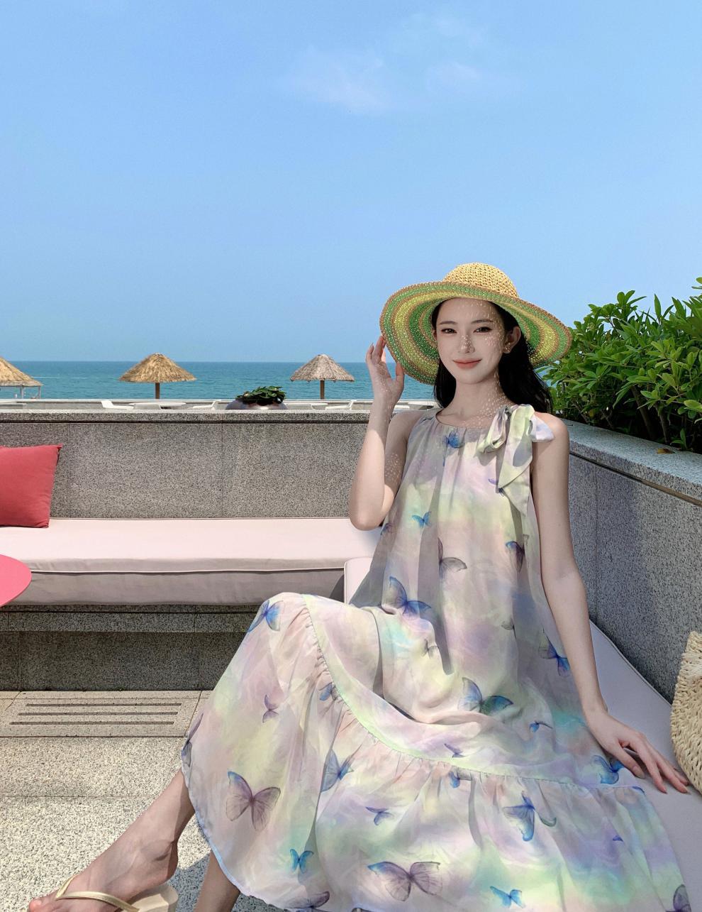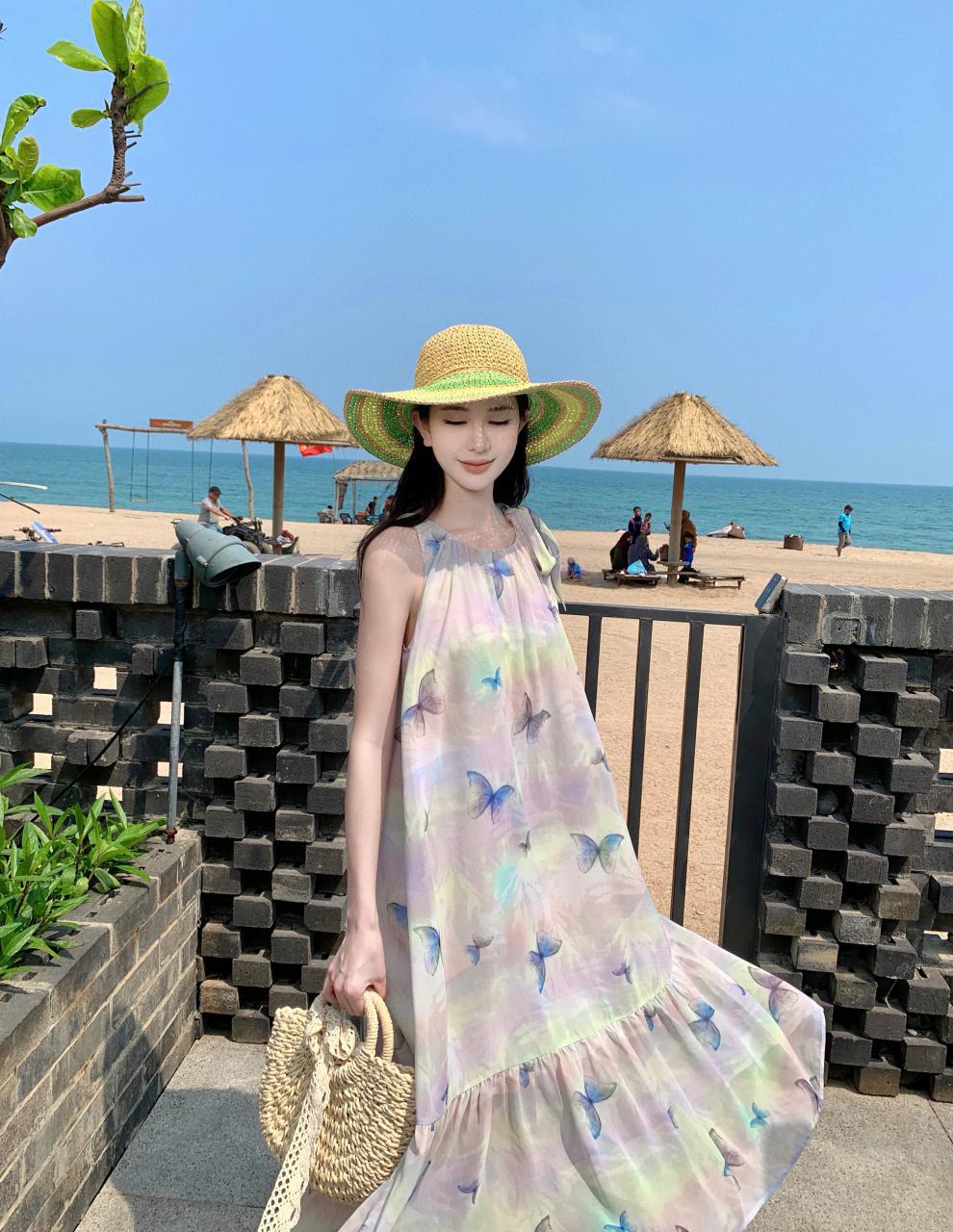 Foto Real Vestido Mariposa Suave Elegante 2024 Verano Nuevo Vestido Chaleco Hada Vacaciones Playa Vestido Largo