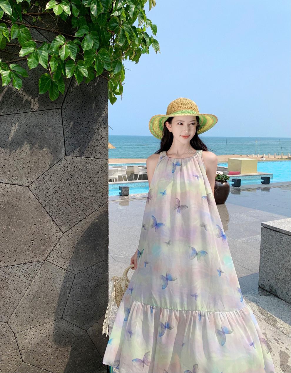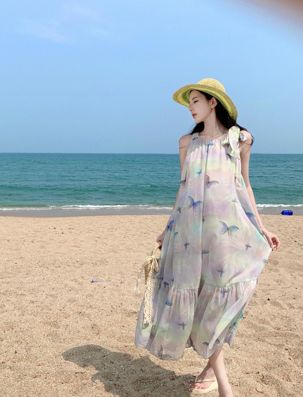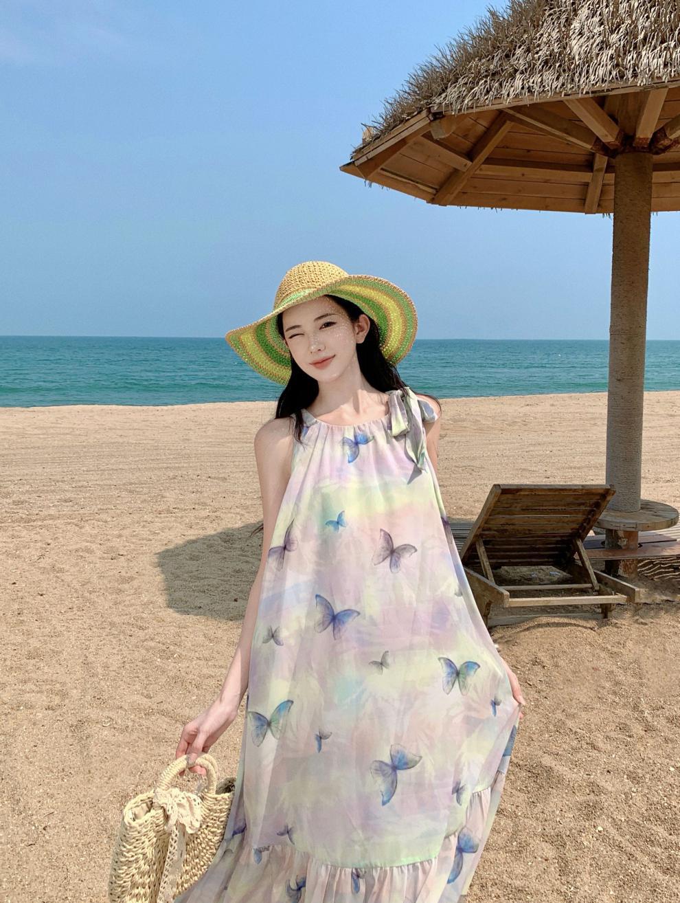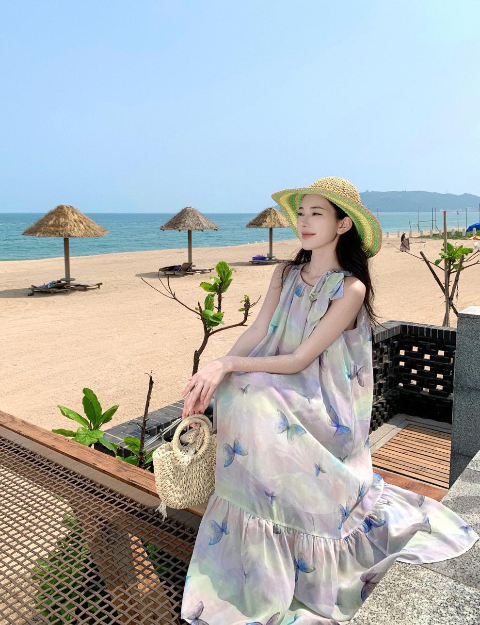 Foto Real Vestido Mariposa Suave Elegante 2024 Verano Nuevo Vestido Chaleco Hada Vacaciones Playa Vestido Largo