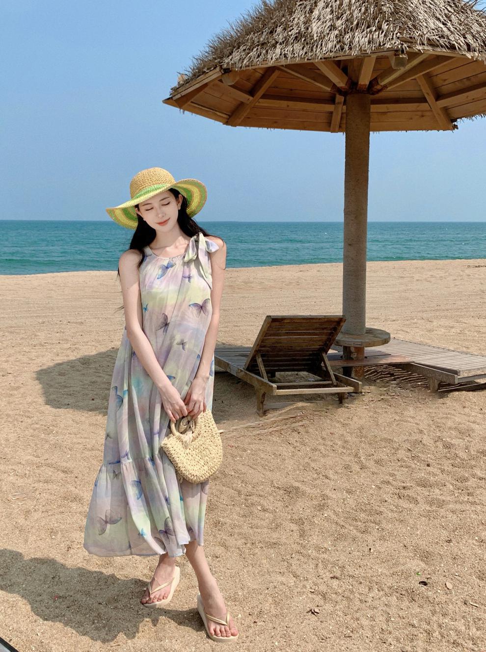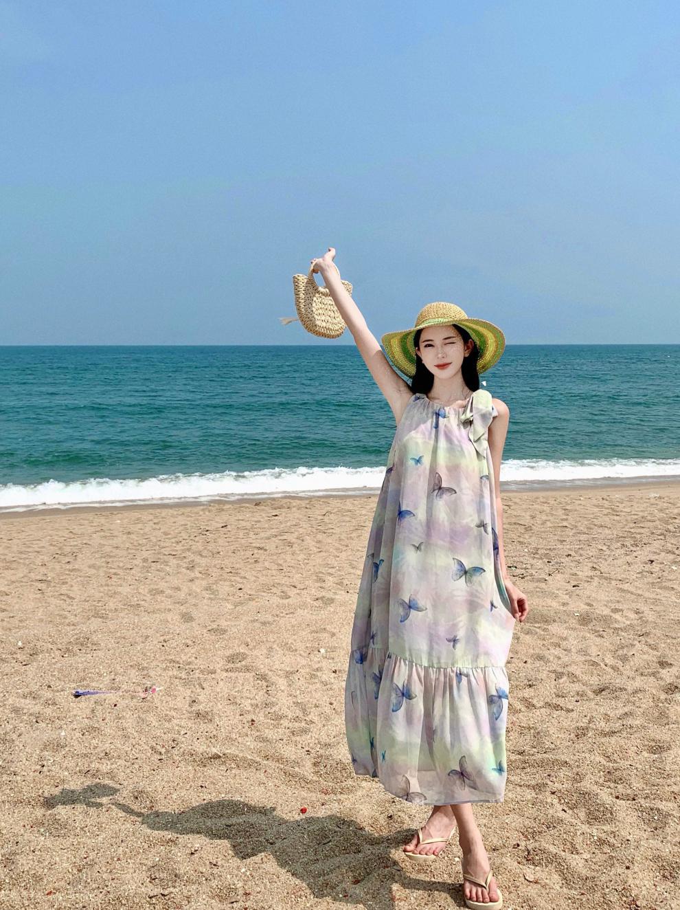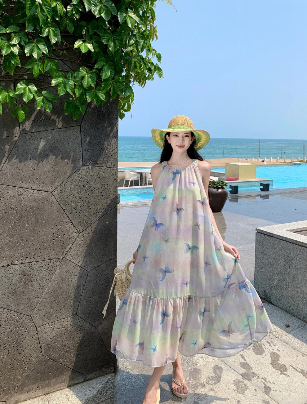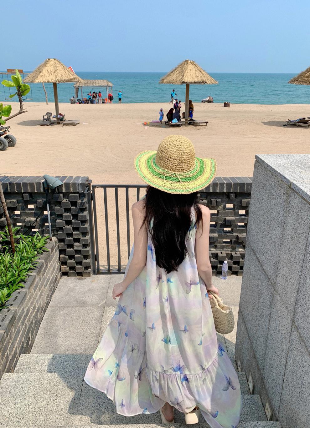 Foto Real Vestido Mariposa Suave Elegante 2024 Verano Nuevo Vestido Chaleco Hada Vacaciones Playa Vestido Largo