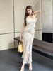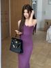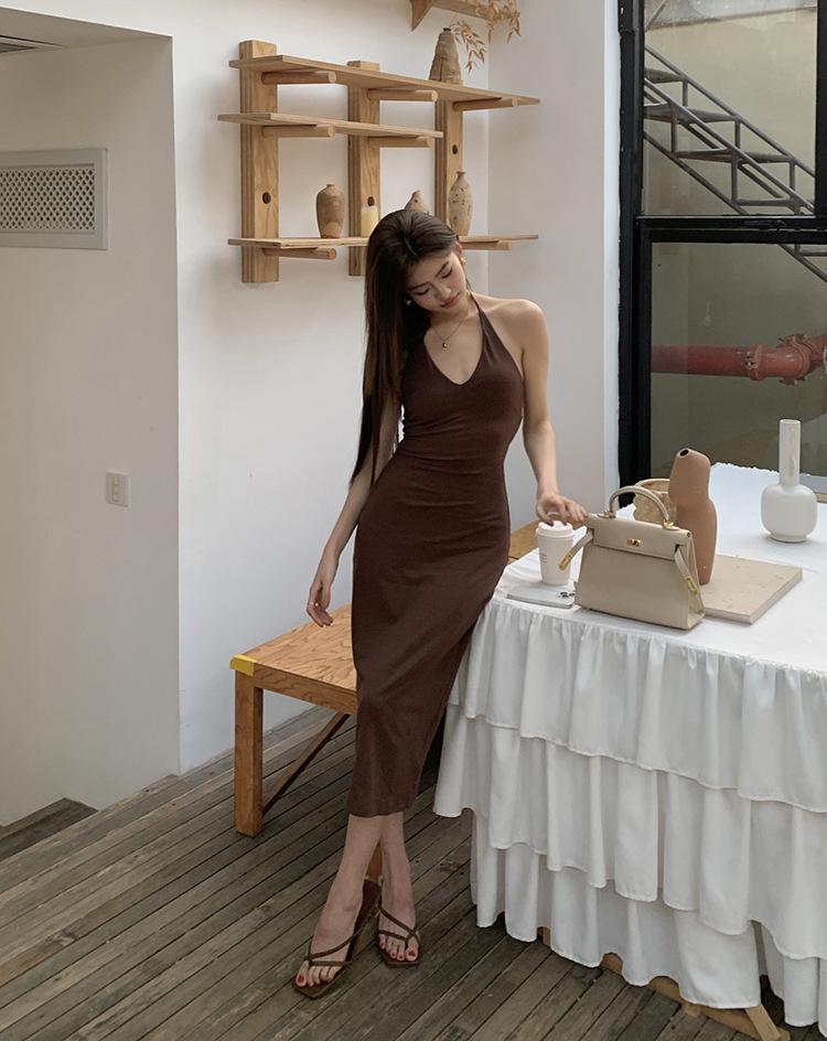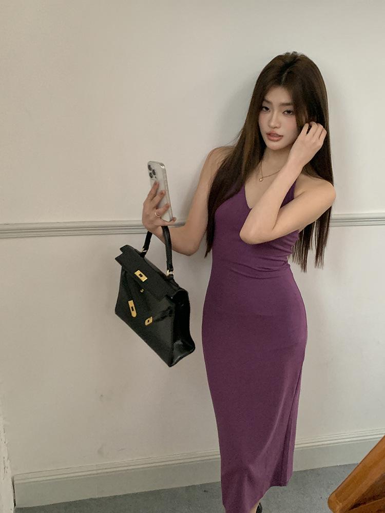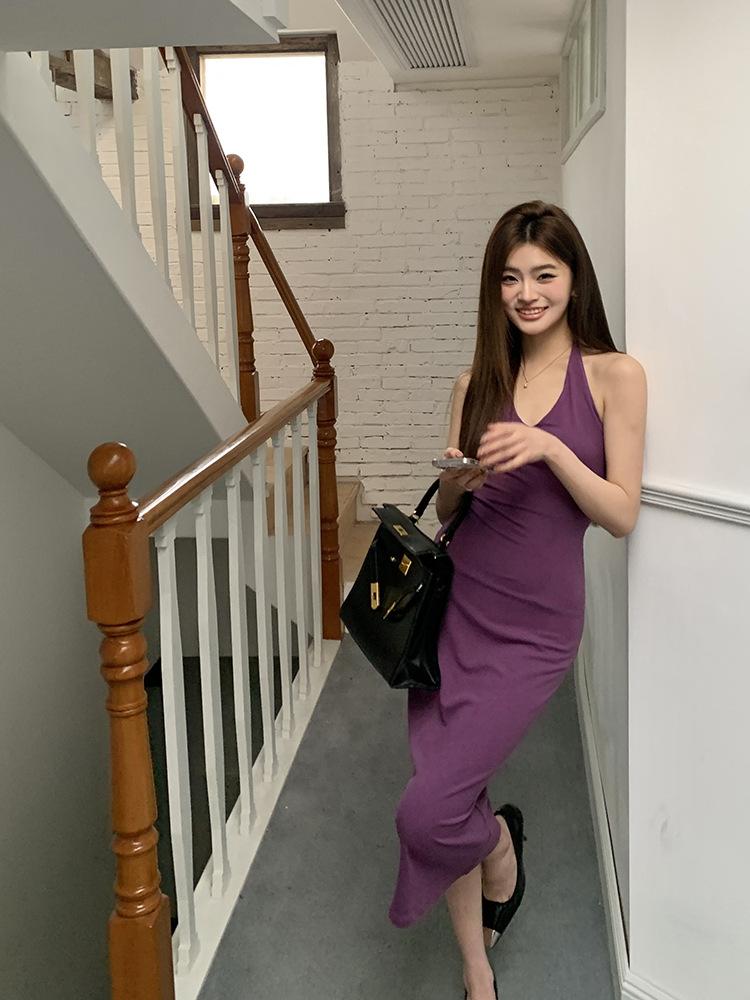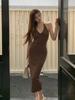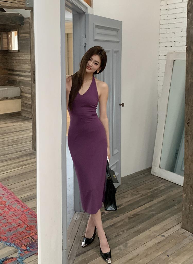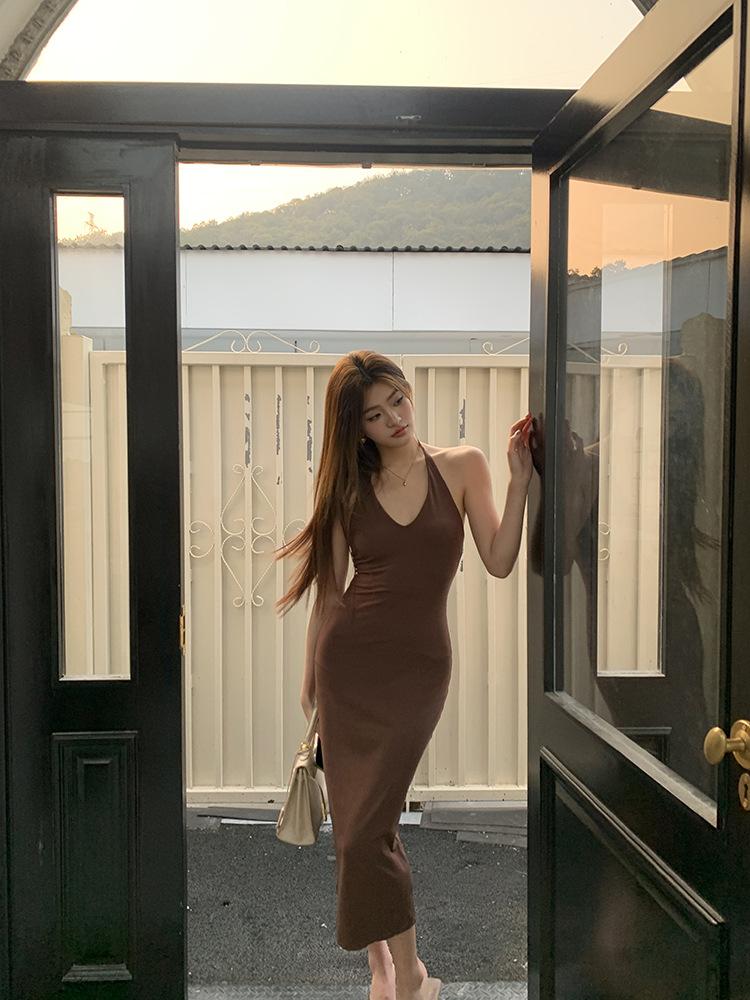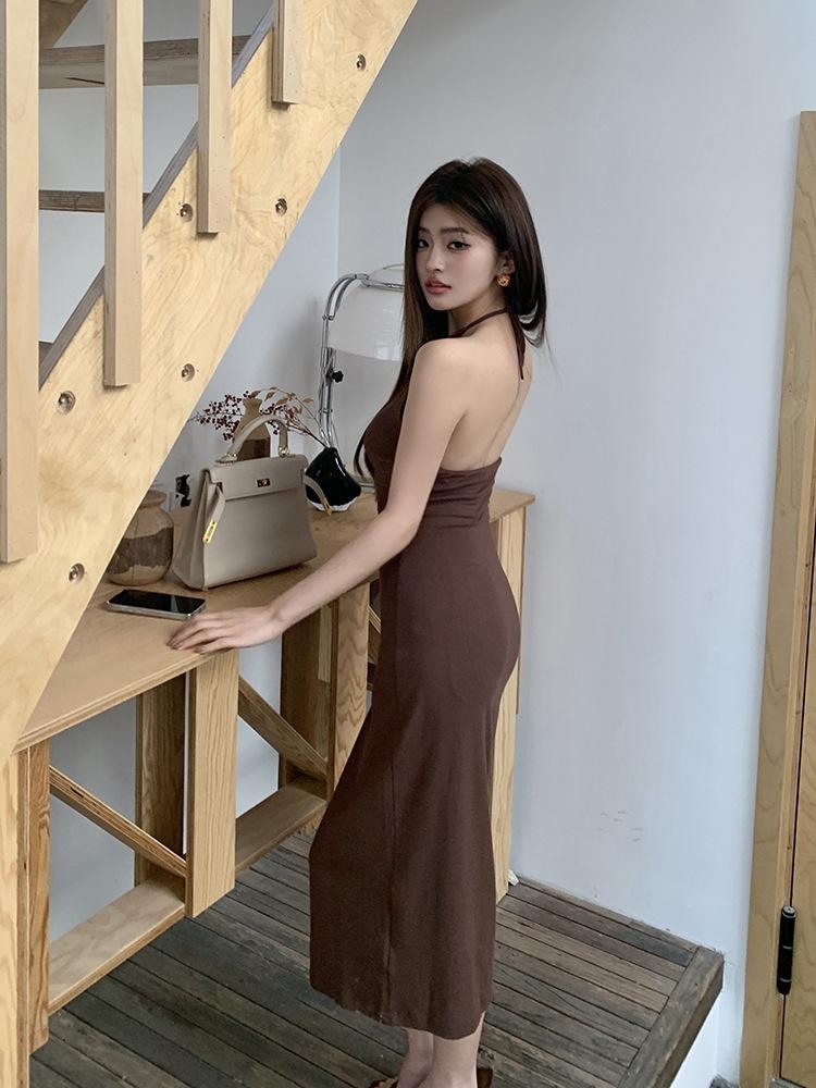 Vestido de verano de alta calidad, nuevo estilo francés con escote en V, estilo halter, diseño adelgazante, para mujer, vestido de longitud media