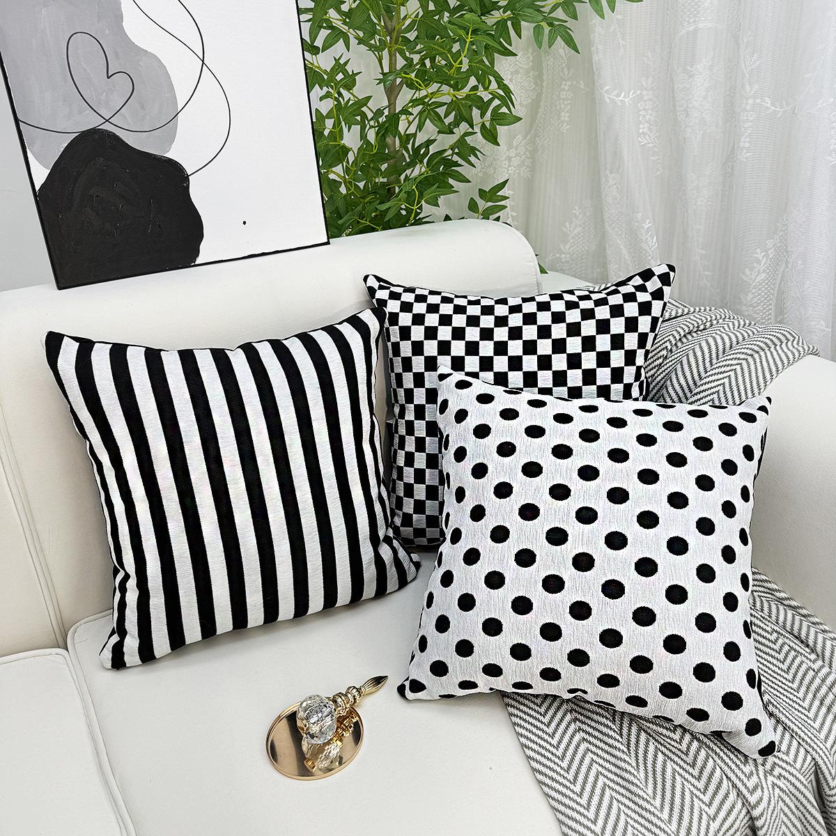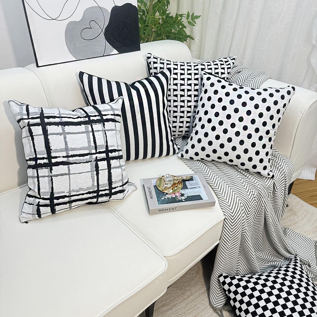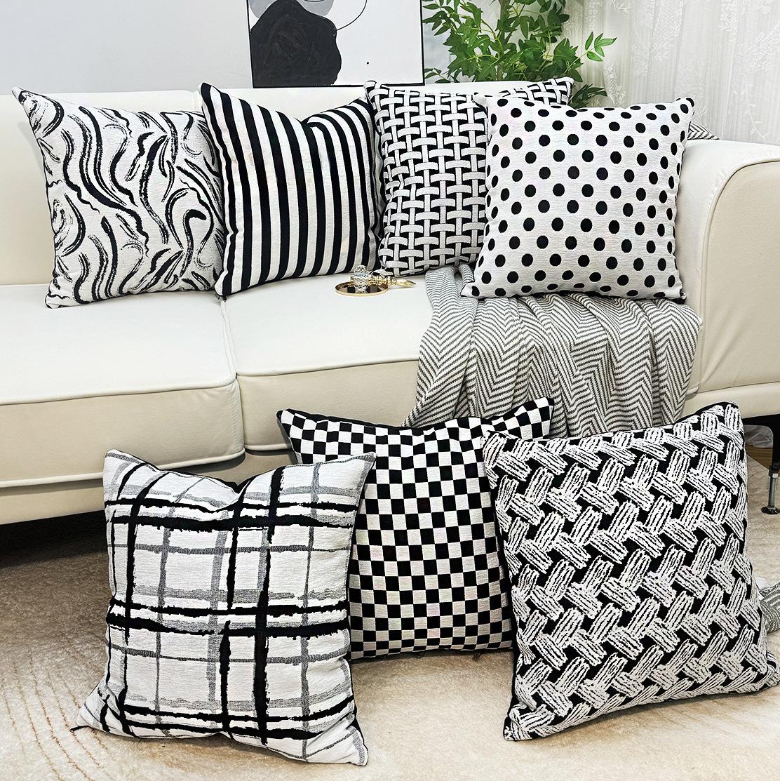 Compra Nórdico Simple Moderno Funda de Cojín Geométrico Abstracto Cuadros Rayas Blanco y Negro Chenilla Funda de Almohada Sofá al por mayor en Joom.pro