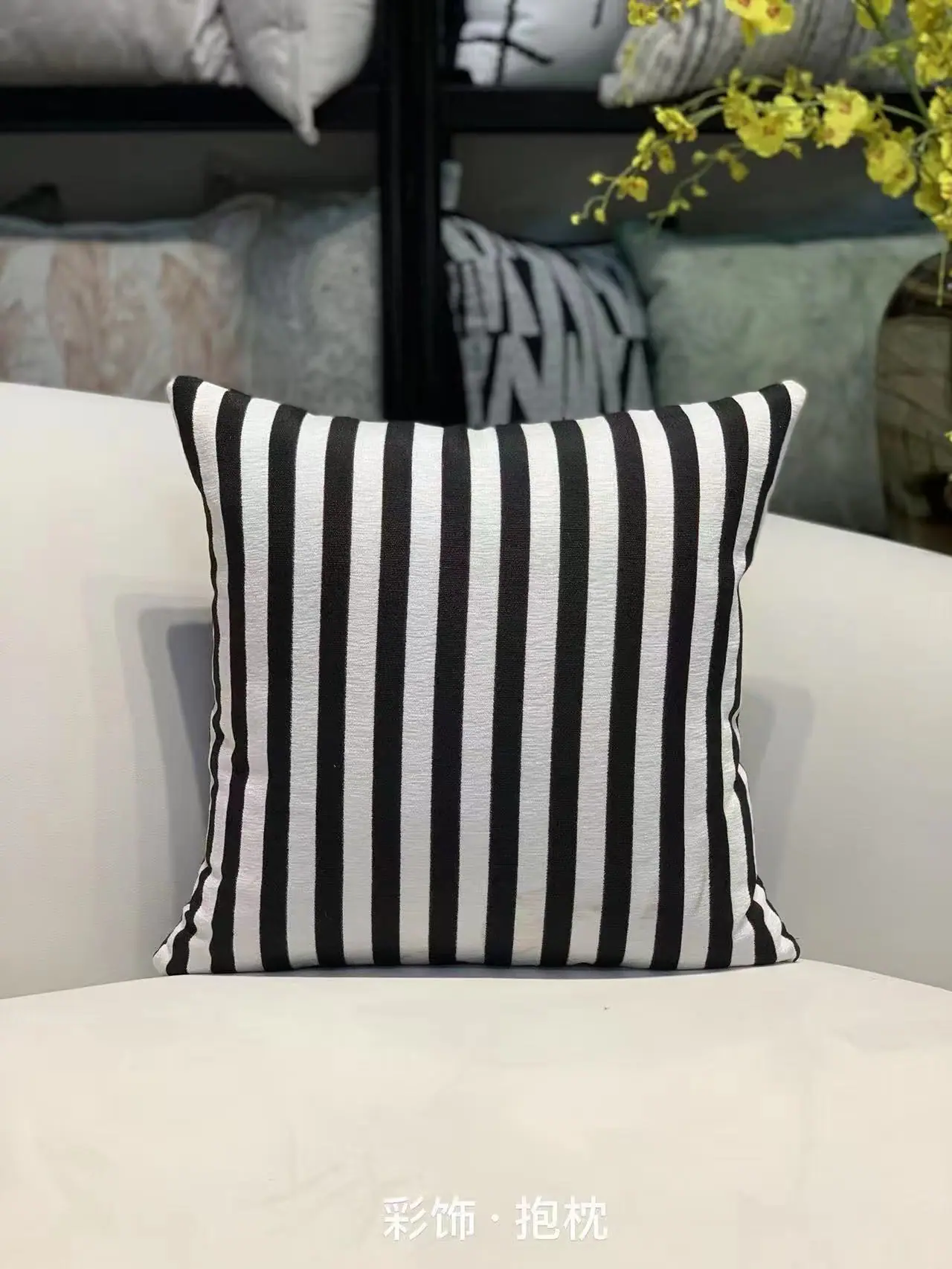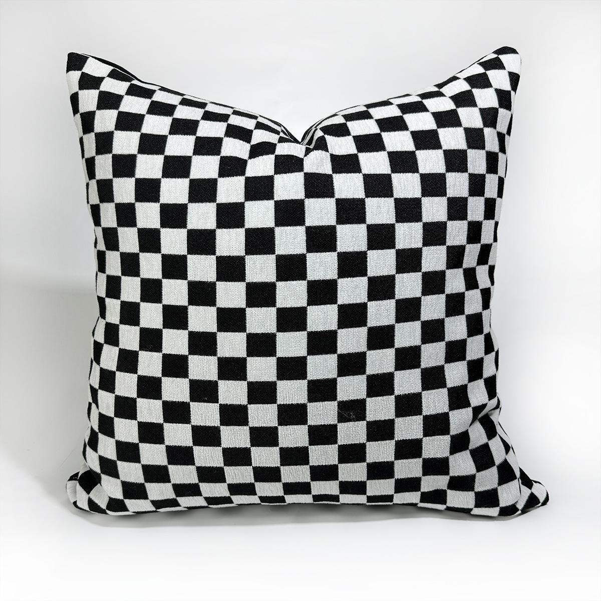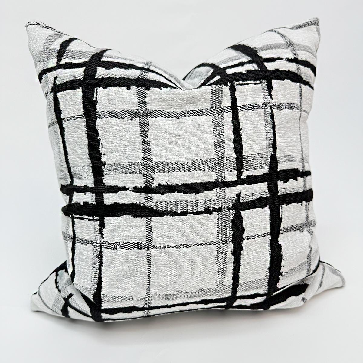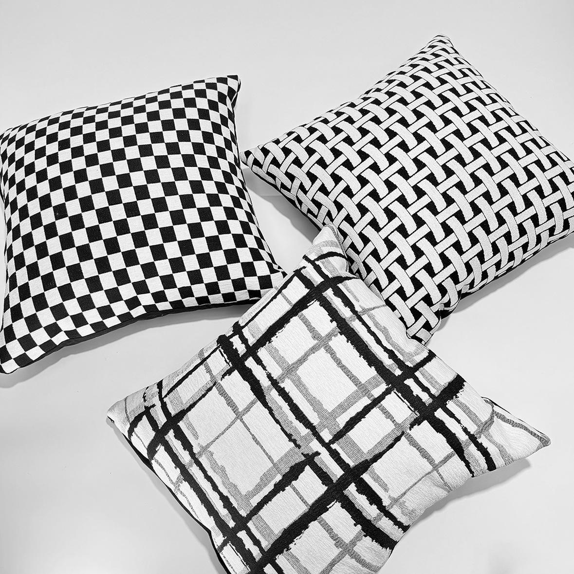 Compra Nórdico Simple Moderno Funda de Cojín Geométrico Abstracto Cuadros Rayas Blanco y Negro Chenilla Funda de Almohada Sofá al por mayor en Joom.pro