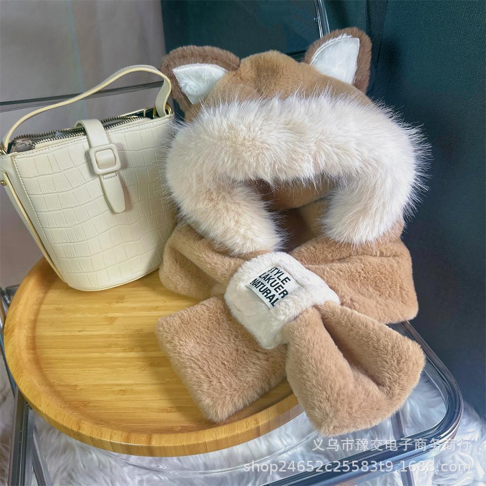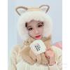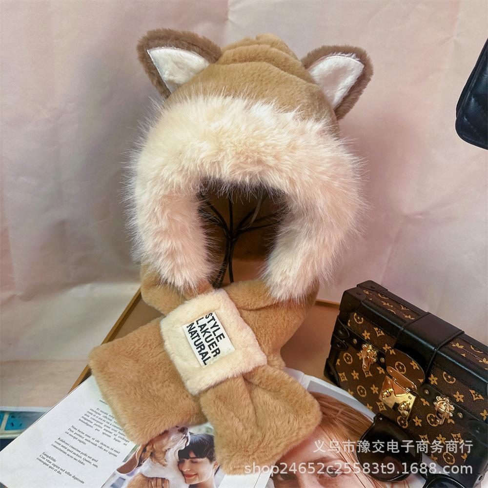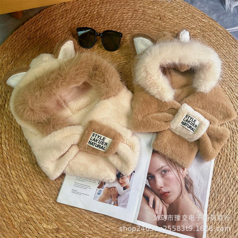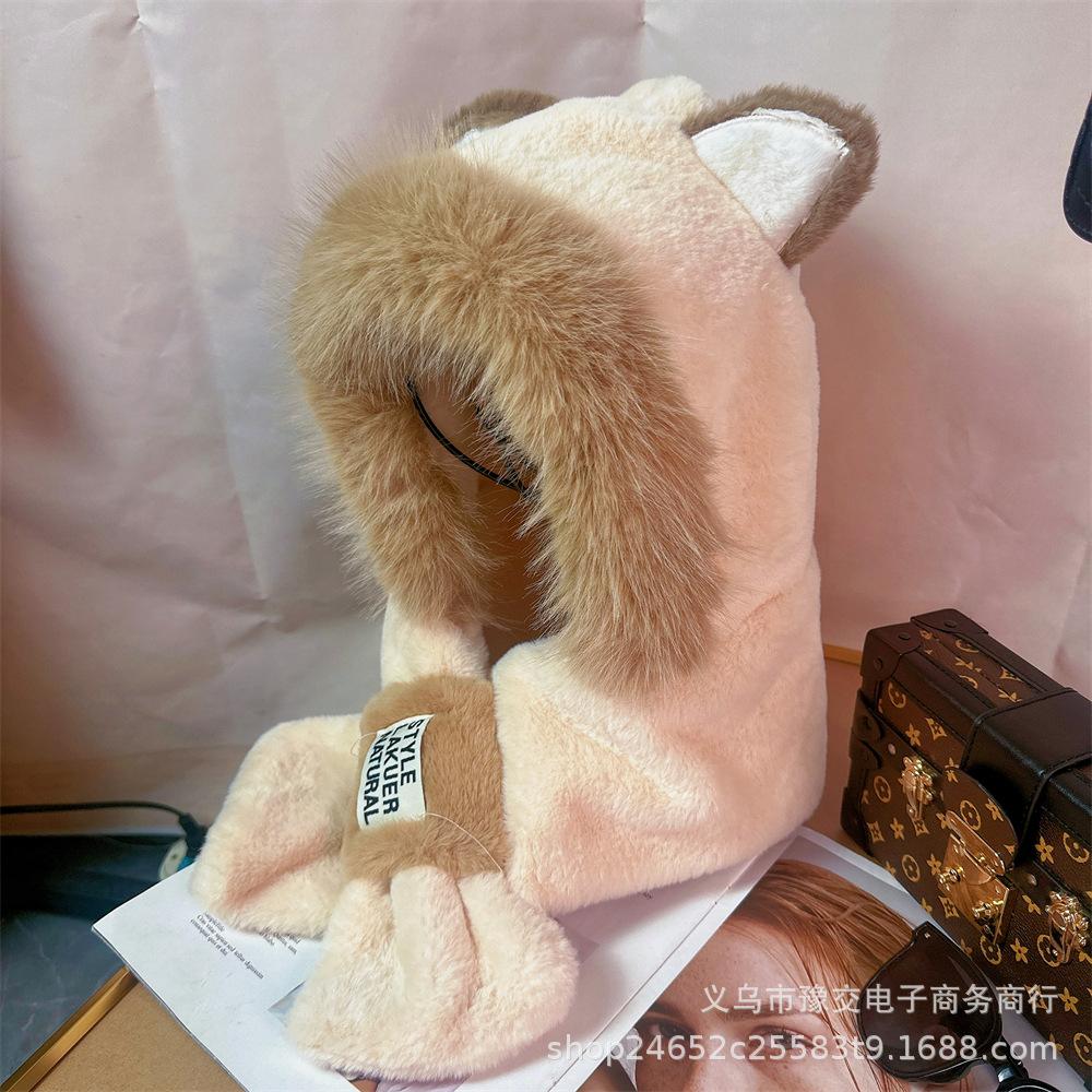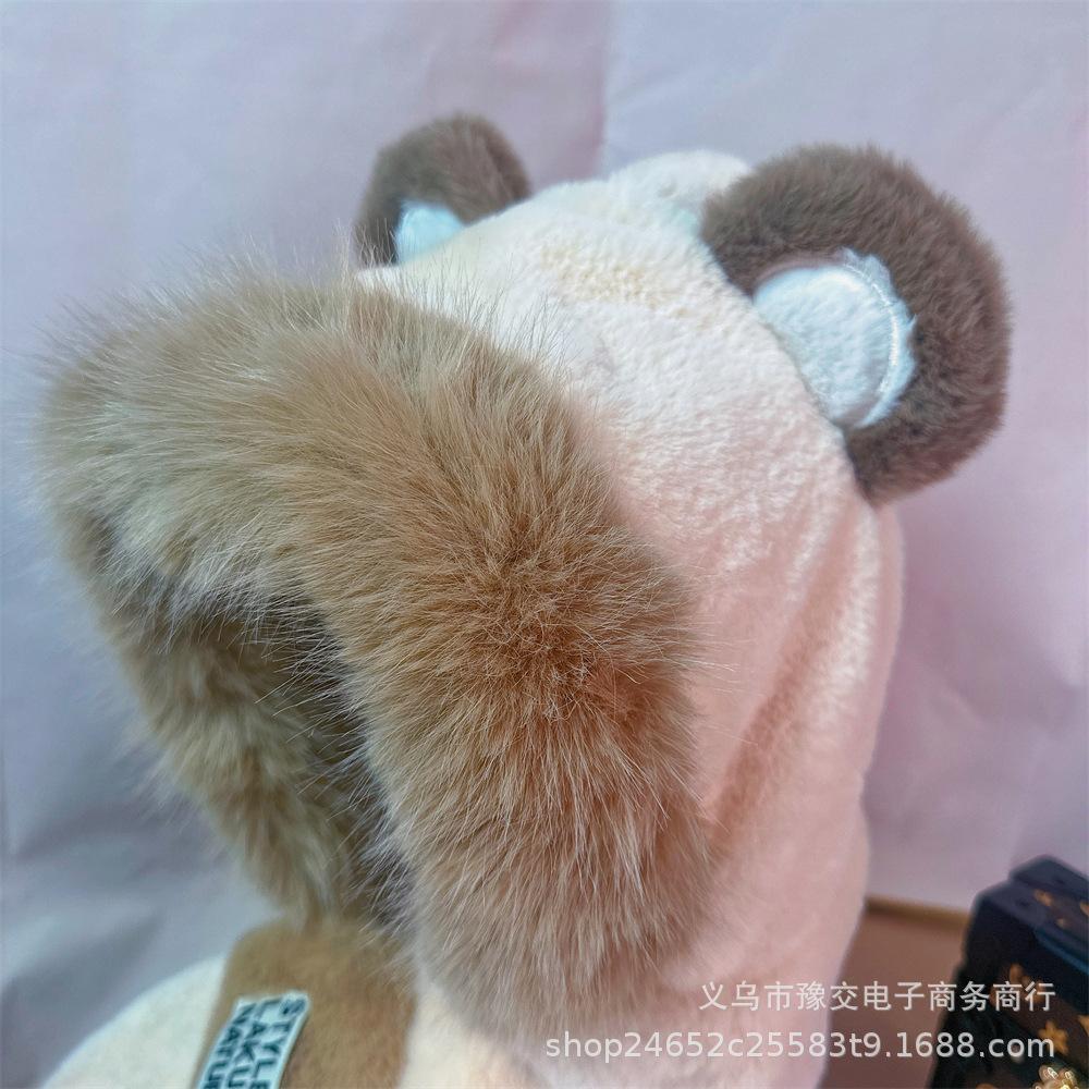Gorro de oso para mujer invierno cálido con capucha bufanda guantes integrados cálido orejas de gato sombrero a prueba de viento tres piezas Invierno