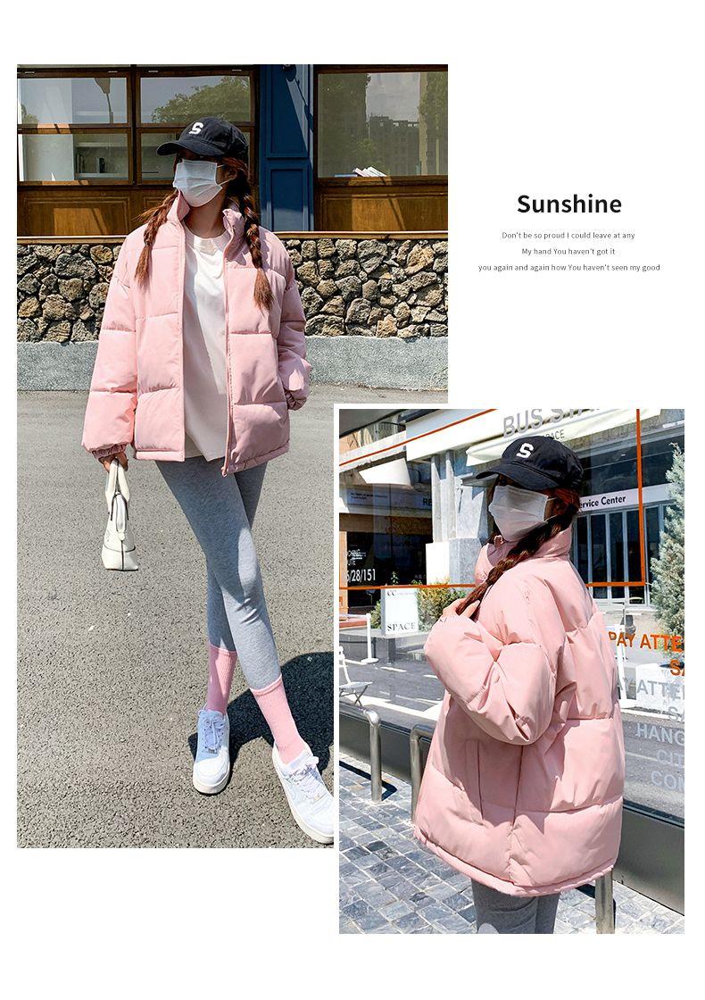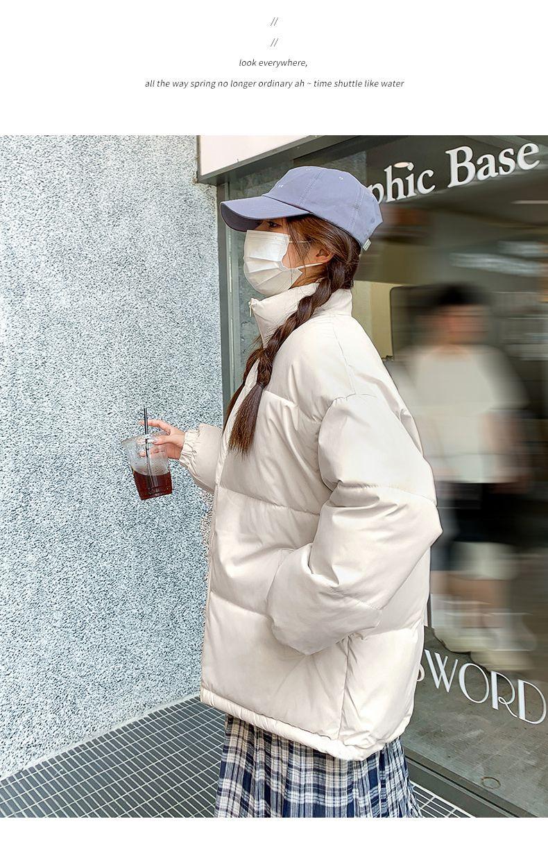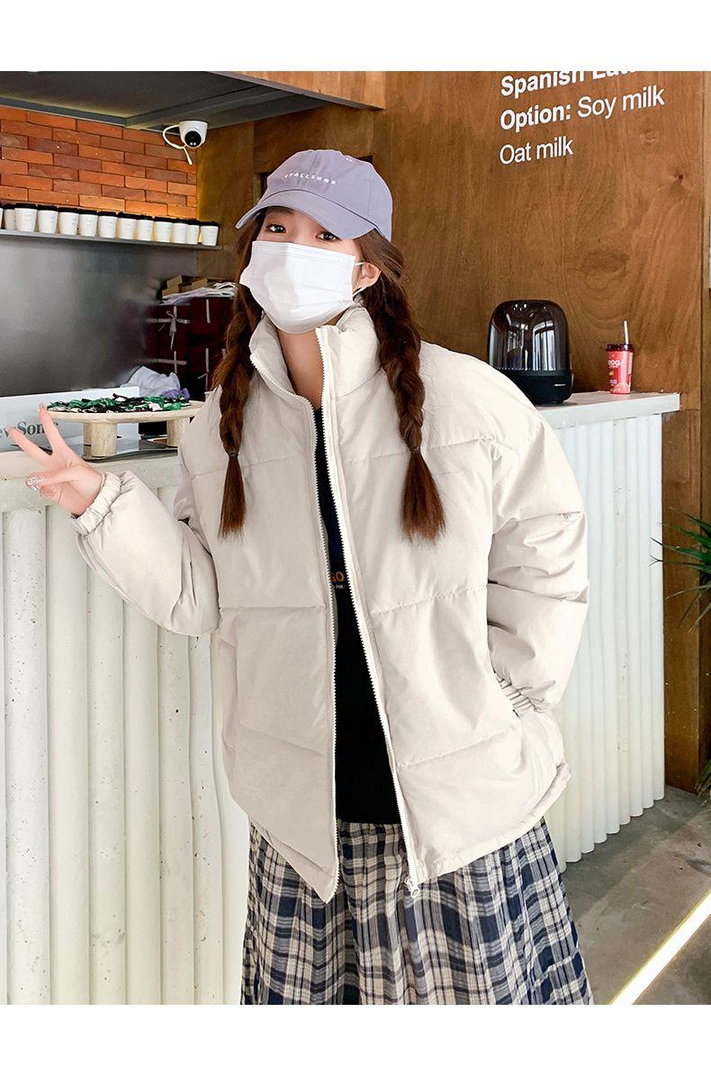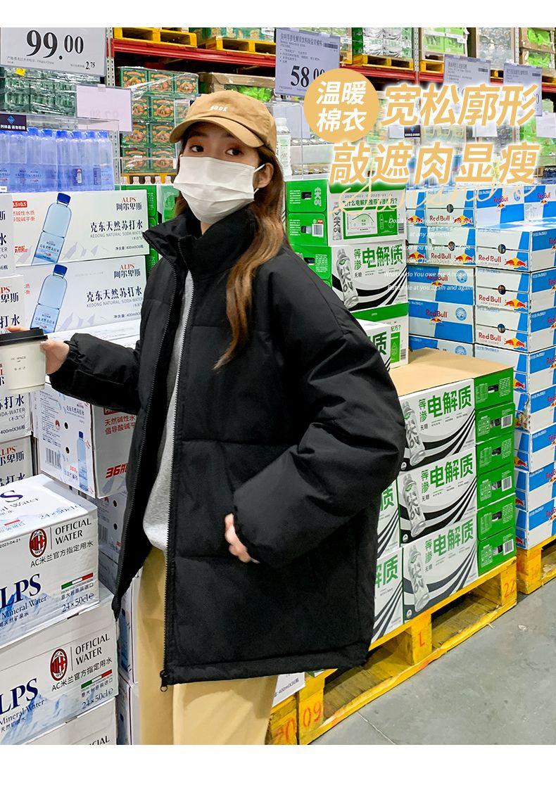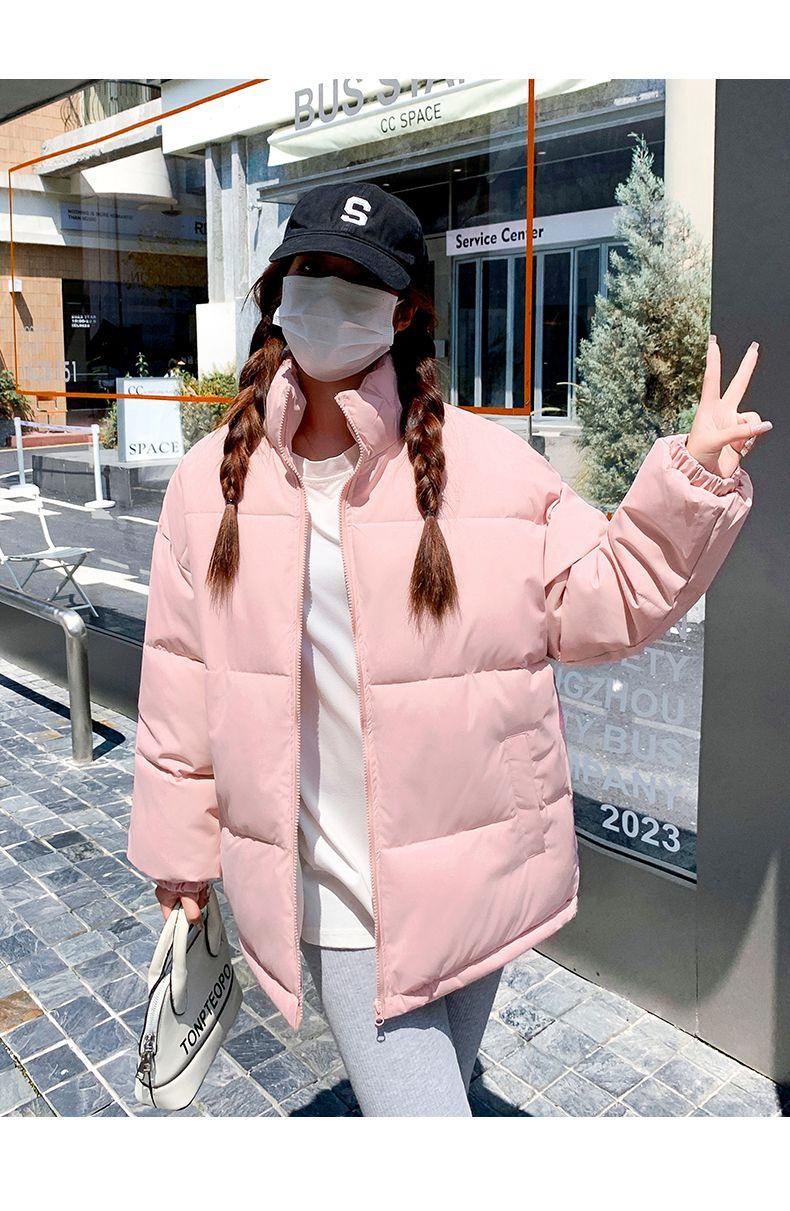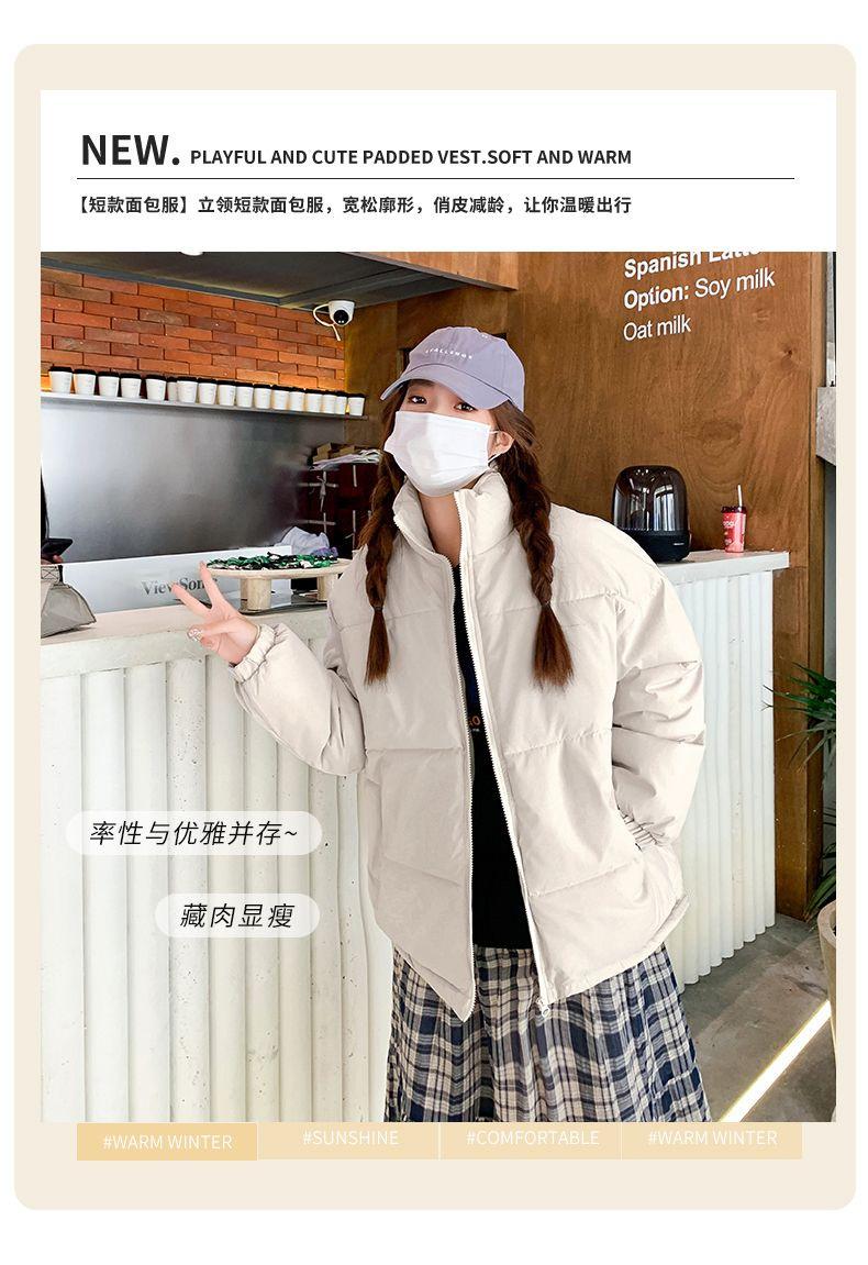 Chaqueta acolchada de algodón gruesa informal de invierno, estilo coreano, holgada, de color sólido, con cuello cálido pequeño, traje de pan