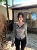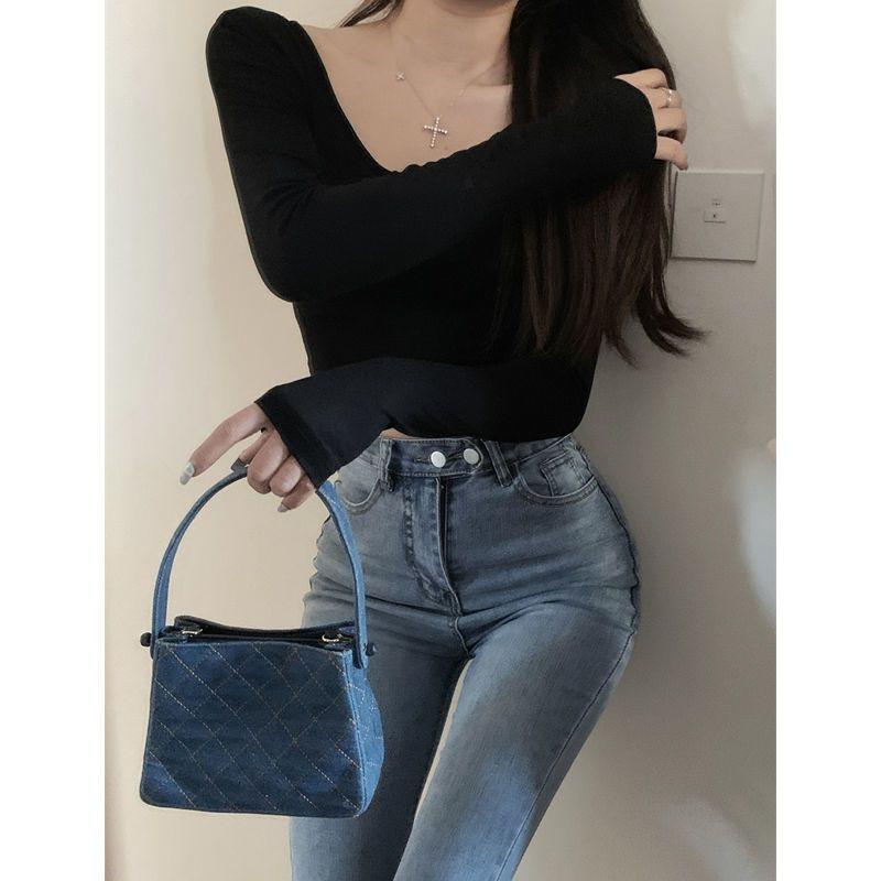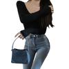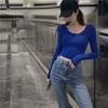 Camiseta sexy de manga corta con cuello en V para mujer, diseño chic de nicho, ajustada, para primavera y otoño, nueva camiseta de fondo