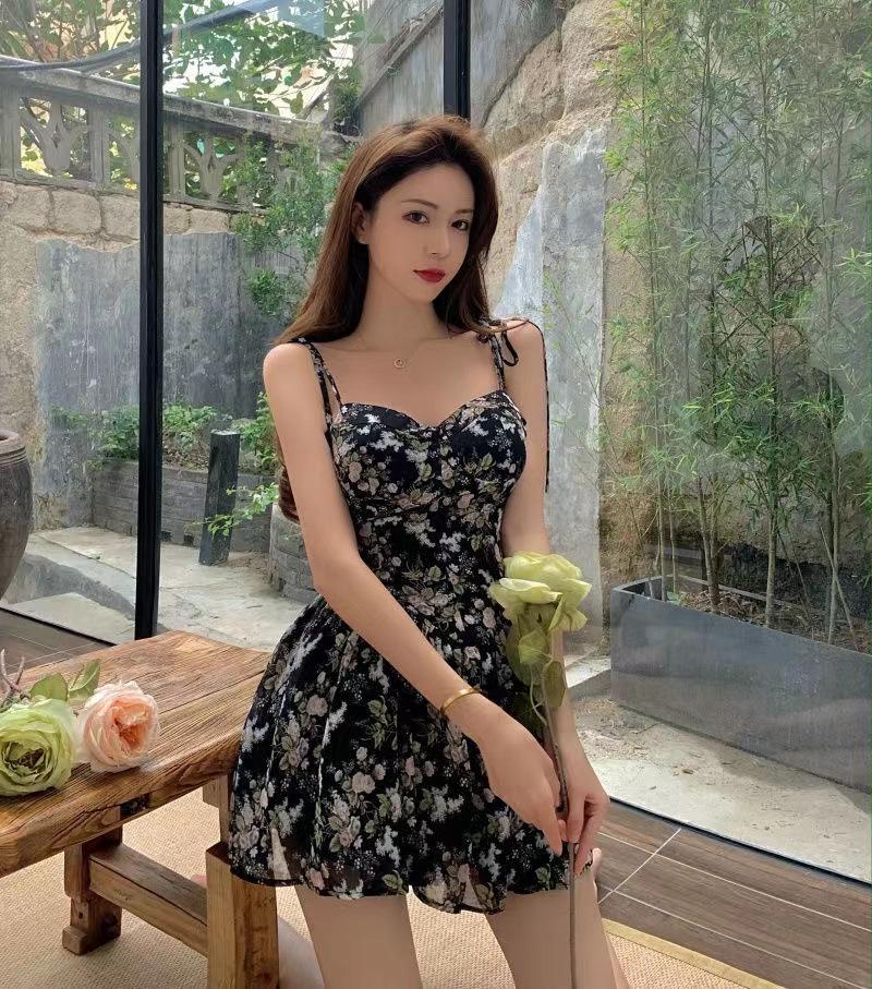Vestido de tirantes para mujer, novedad de verano 2020, falda floral, cintura adelgazante, vestido estampado retro, moda para mujer
