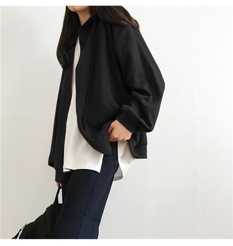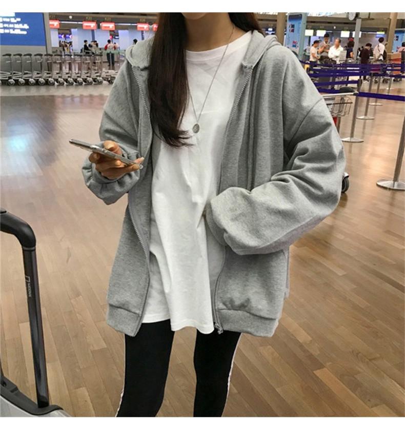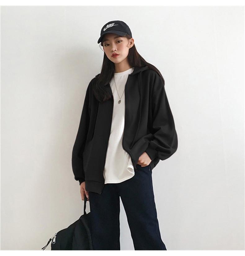 Sudadera delgada con capucha para mujer 2023 Otoño Nuevo estilo cremallera color sólido abrigo de moda para mujer estilo coreano holgado estudiante transfronterizo