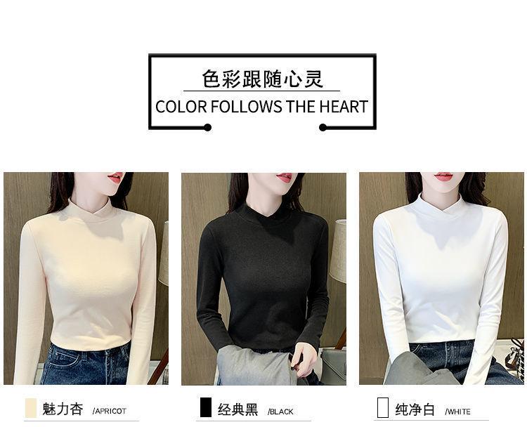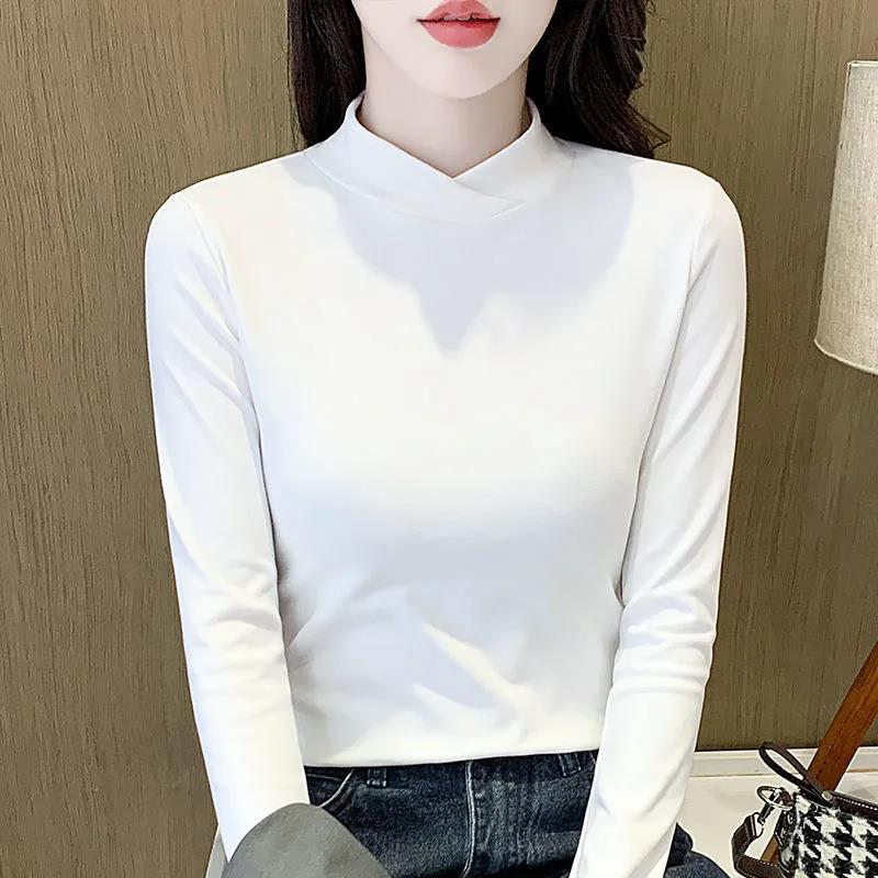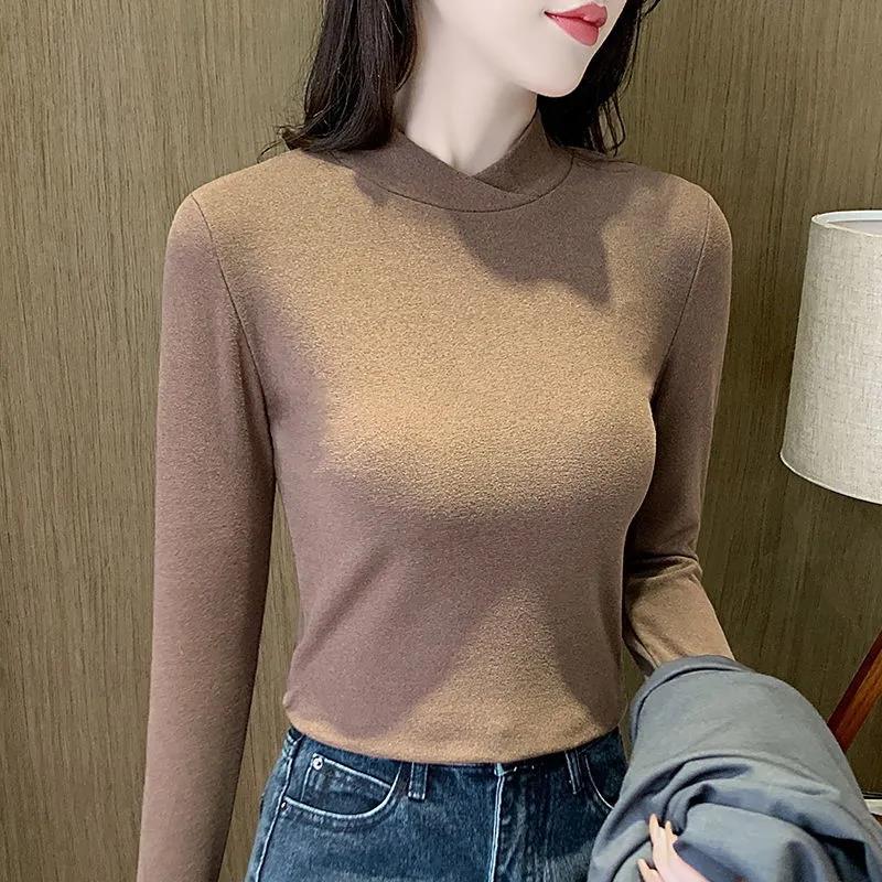 Camiseta interior de mujer otoño e invierno con cuello cruzado interior 2023 nueva camiseta de terciopelo de cuello alto medio top de moda para mujer