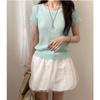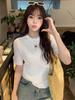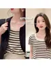 Suéter Fino de Punto de Verano para Mujer Ajustado Seda de Hielo Manga Corta Estudiante Rayado Talla Única Rayado Bicolor