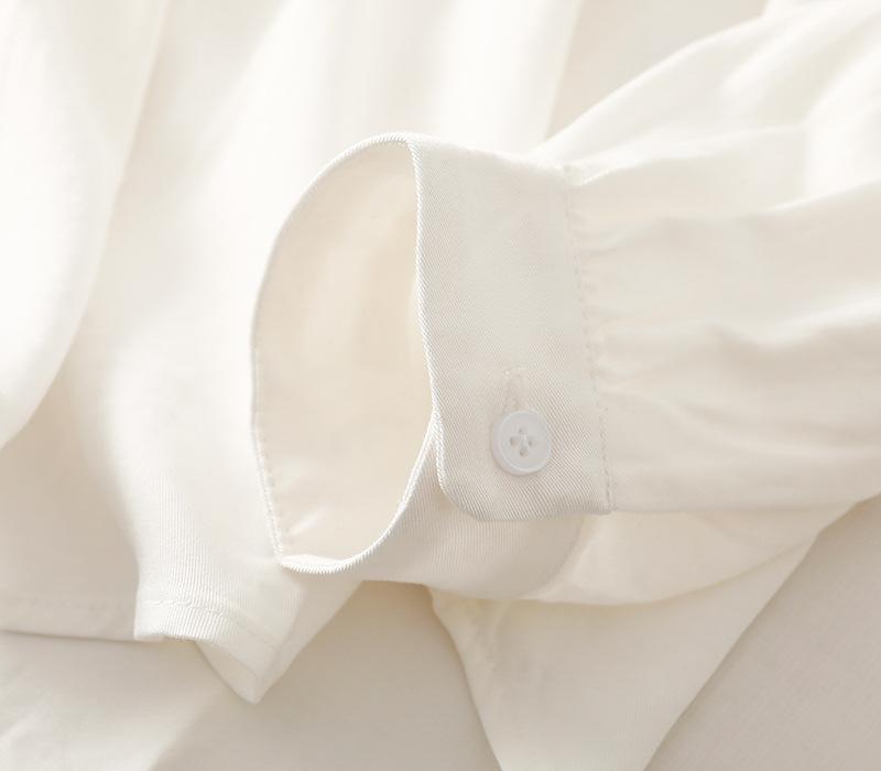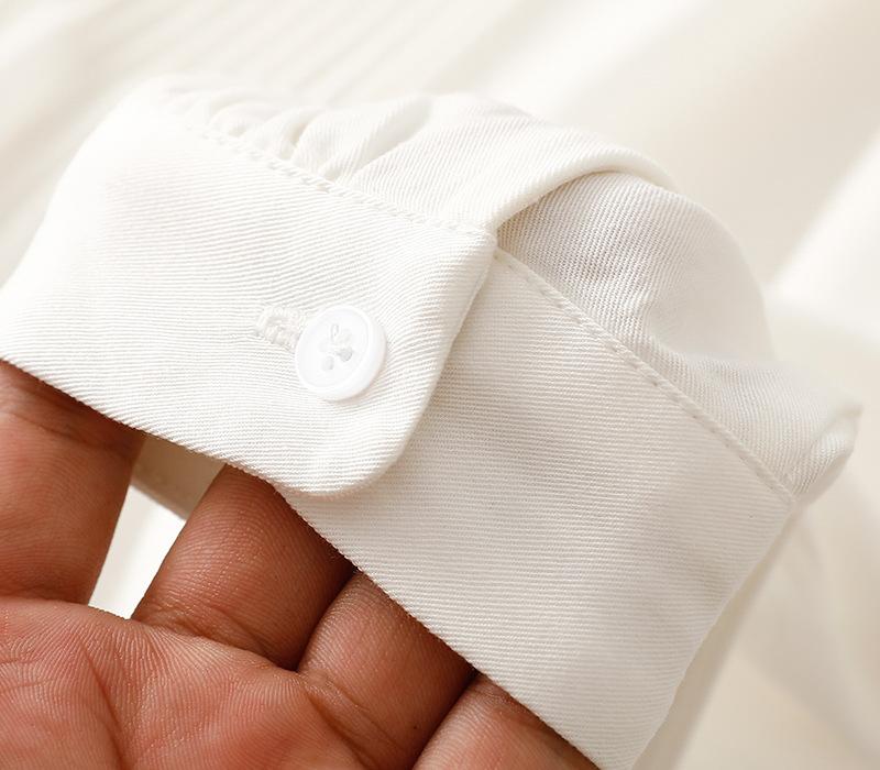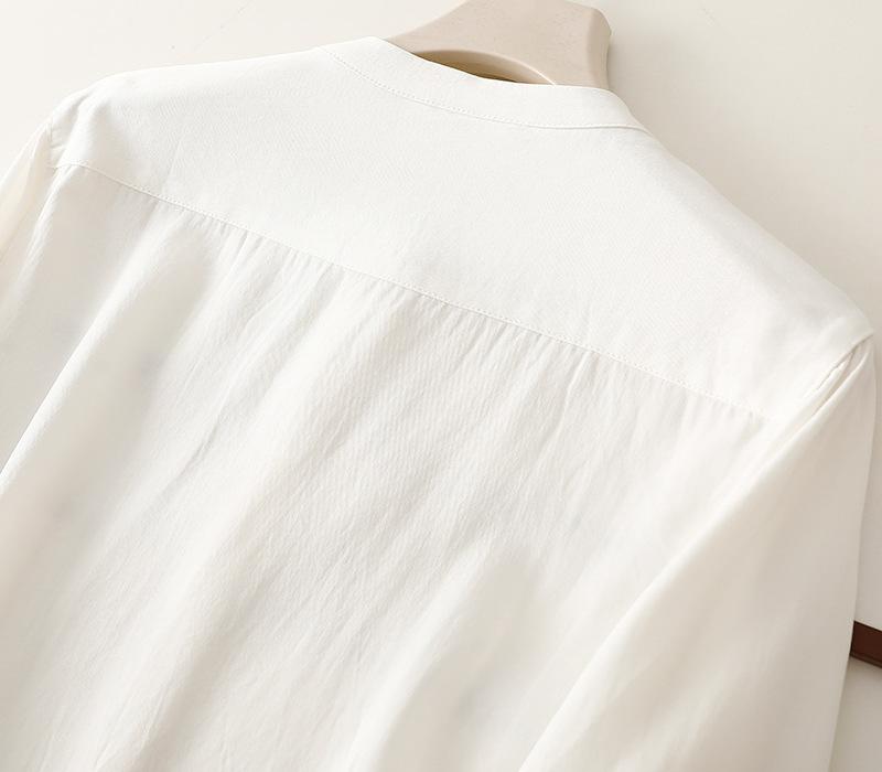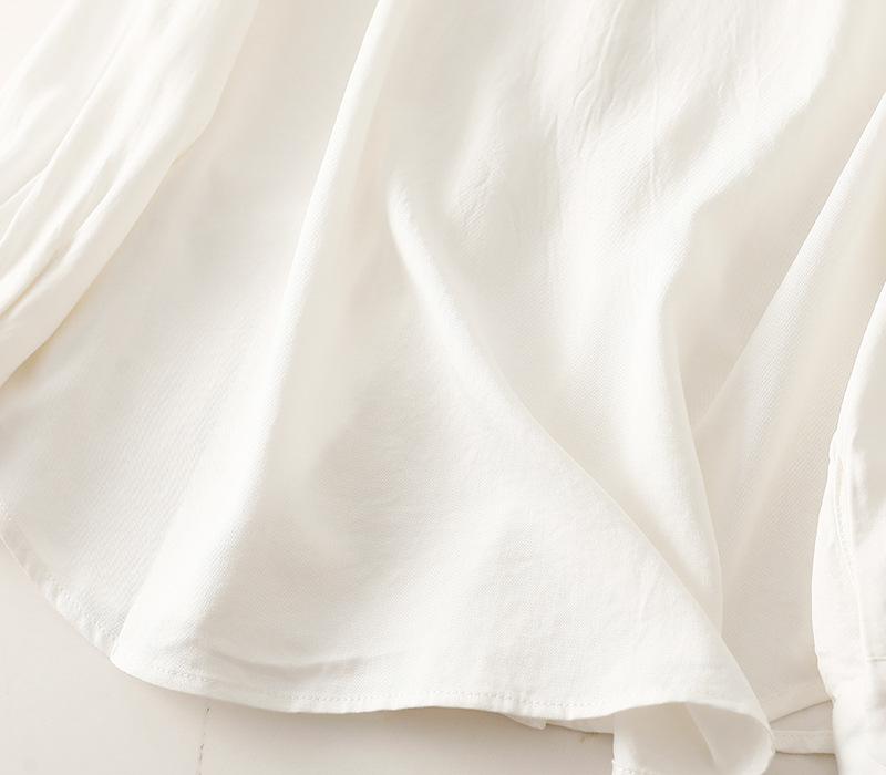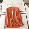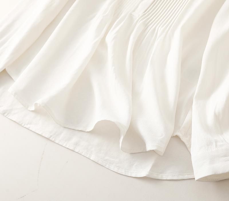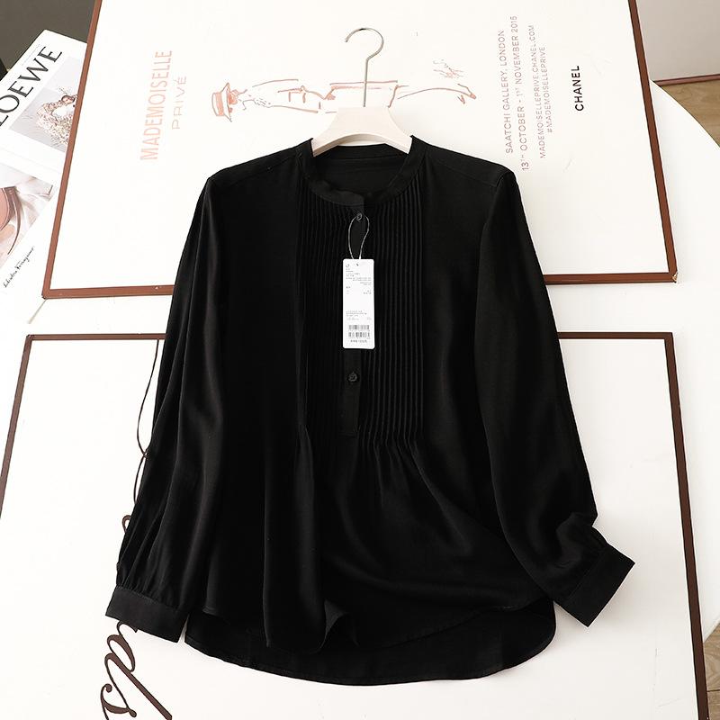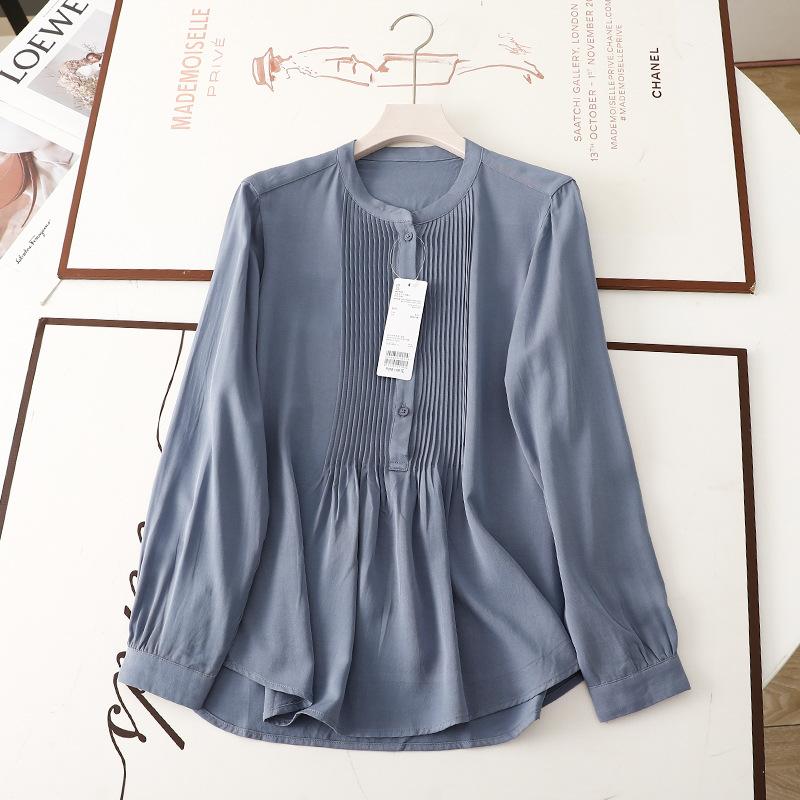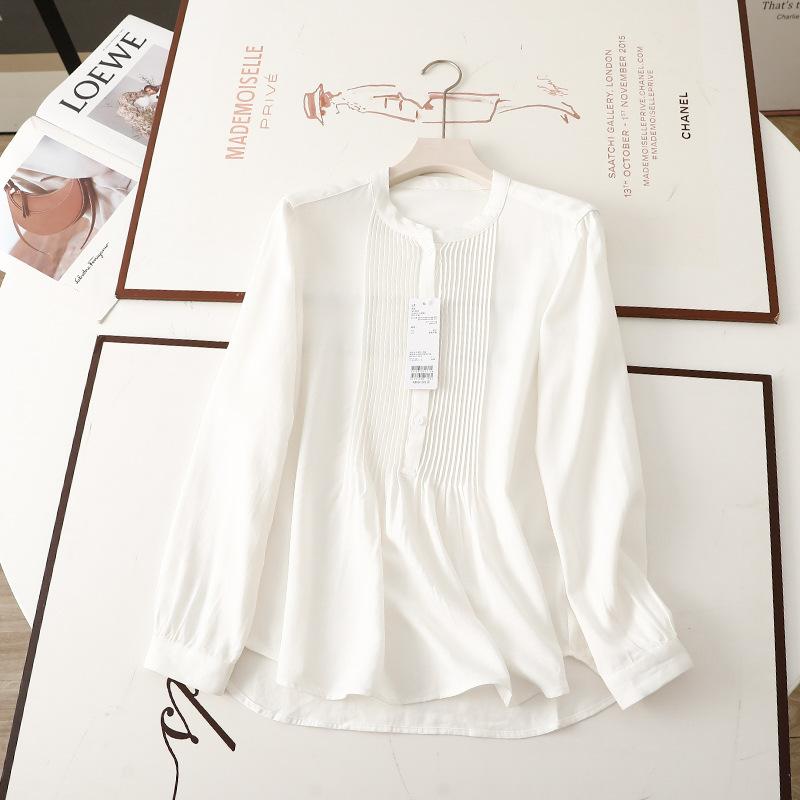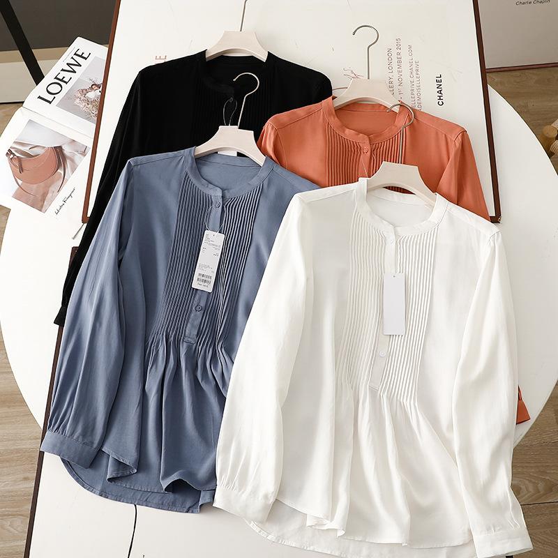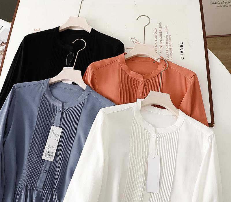 Camisa elegante de diseño elegante para uso diario, de manga larga, cuello redondo, plisada, color liso, para primavera 2024