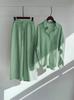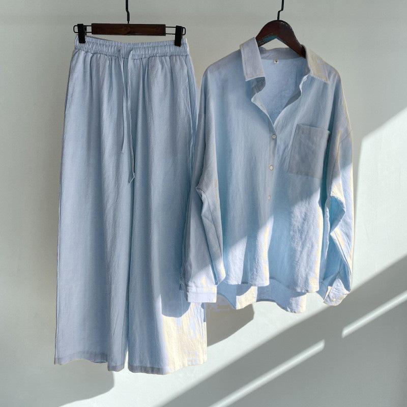 Amazon Transfronterizo Primavera Talla Grande Traje de Camisa para Mujer Moda Retro Cintura Alta Holgado Manga Larga Pantalón Conjunto de Dos Piezas