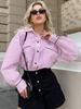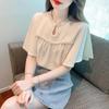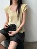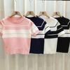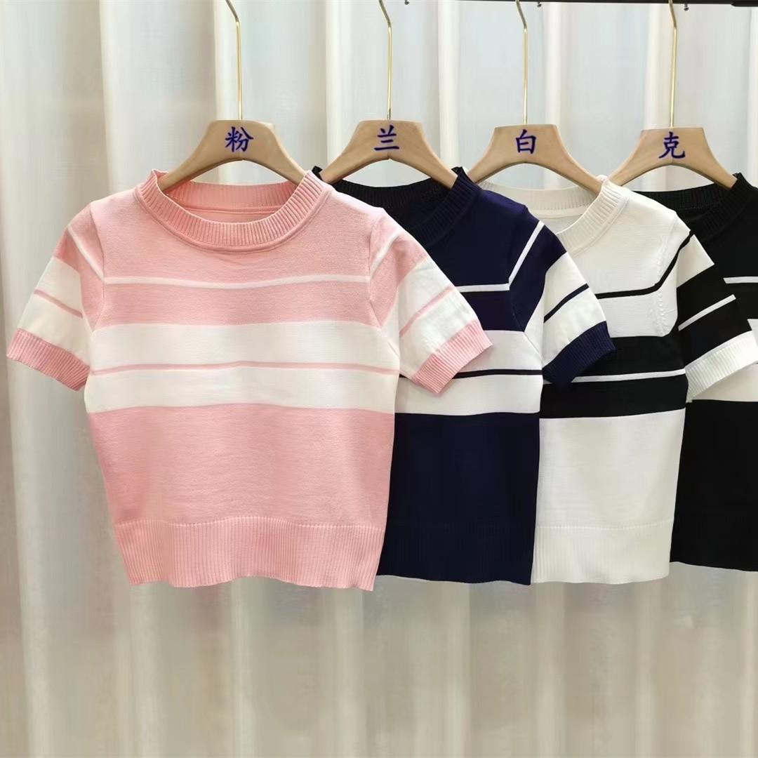 Verano 2023 nuevo top versátil de manga abullonada, suéter versátil de manga corta a rayas de color contrastante delgado blanco y negro para mujer