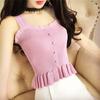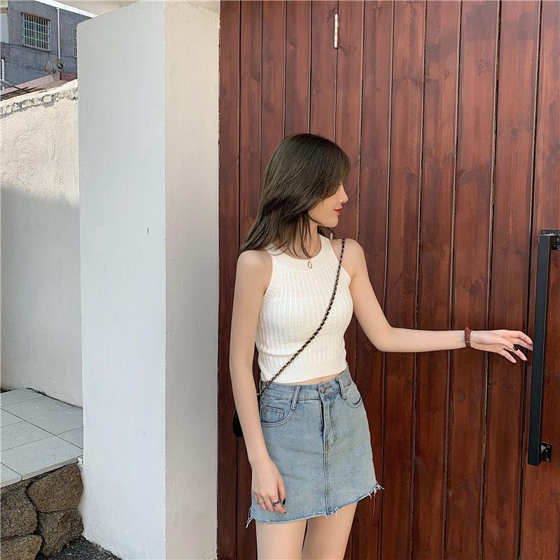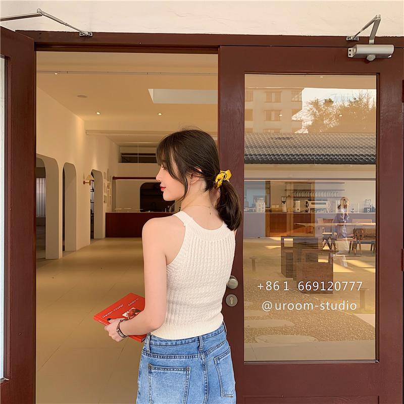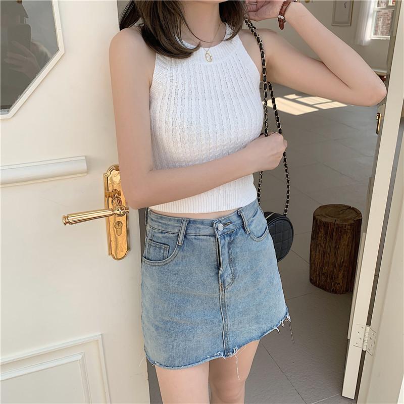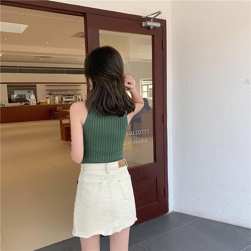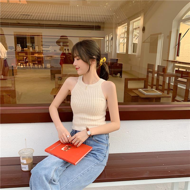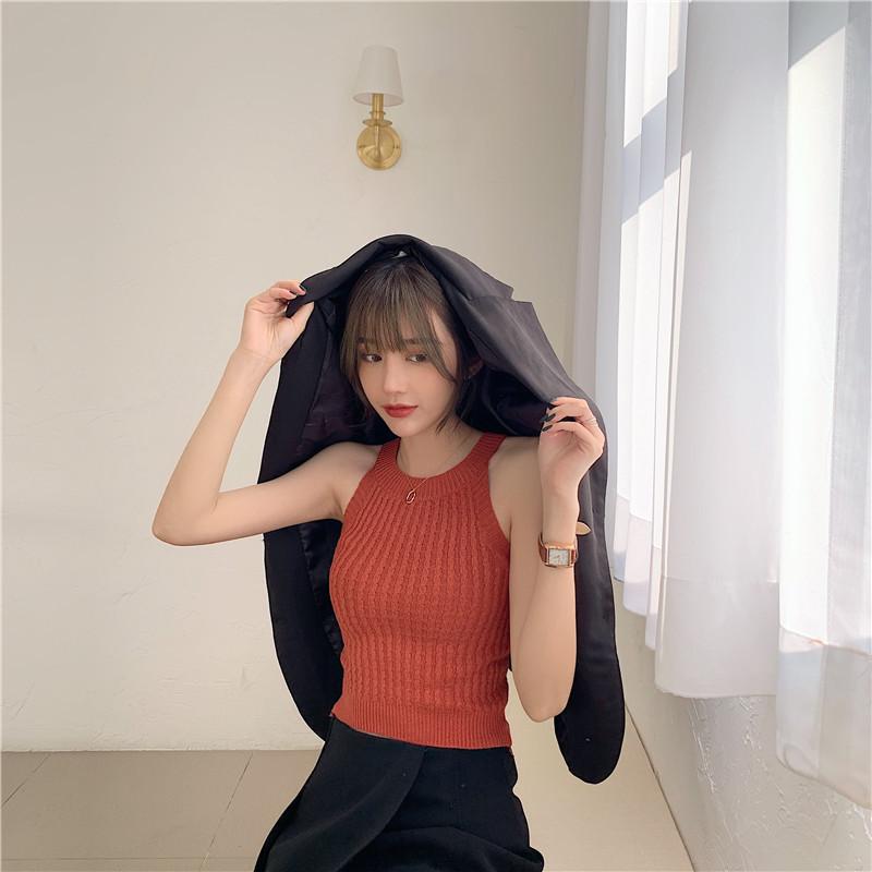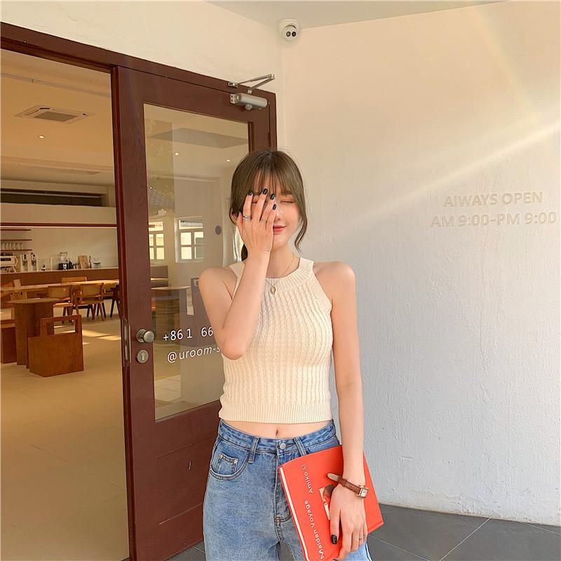Camisola corta con cuello halter para mujer, prenda exterior que combina con todo, de punto, con hombros descubiertos, estilo coreano elegante, top preppy sin mangas