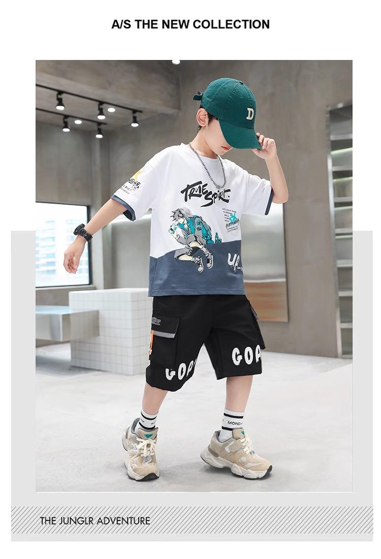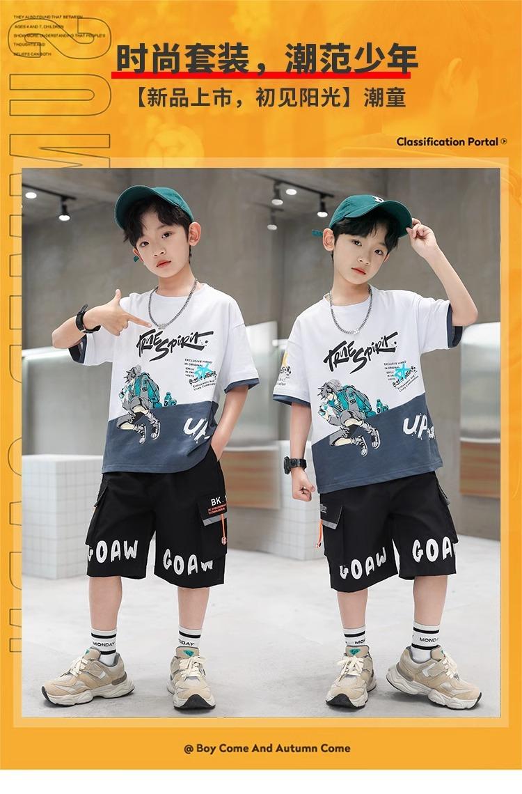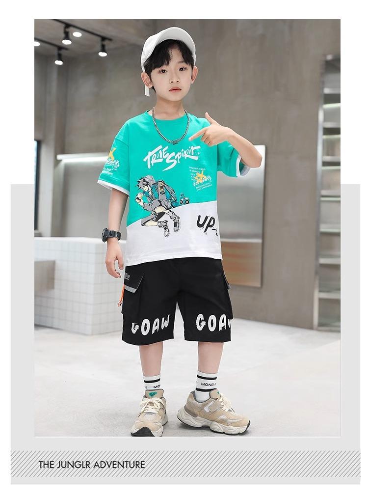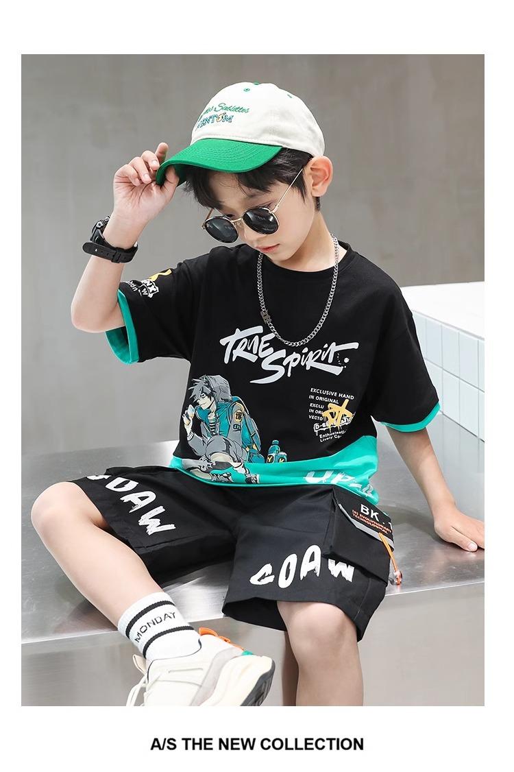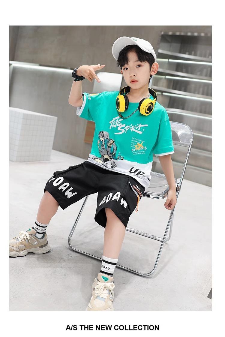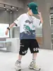 Traje de Verano de Manga Corta para Niños 2025 Nuevo Estilo para Niños Medianos y Grandes Verano para Niños Celebridad de Internet Caliente Calle Cool y Trendy