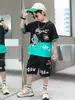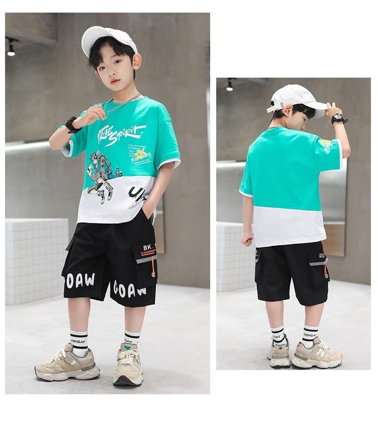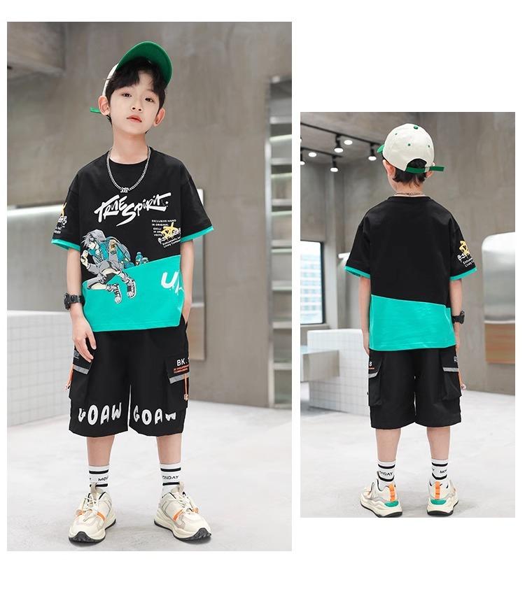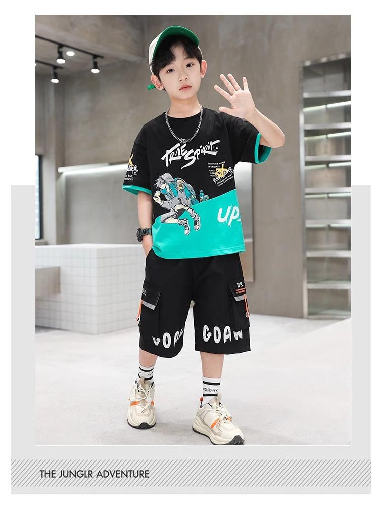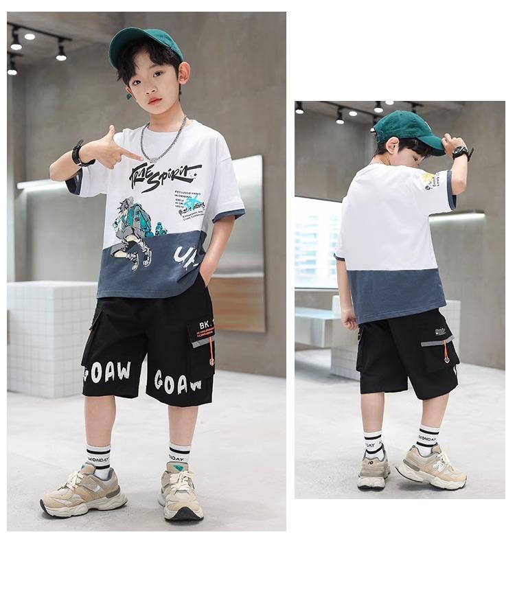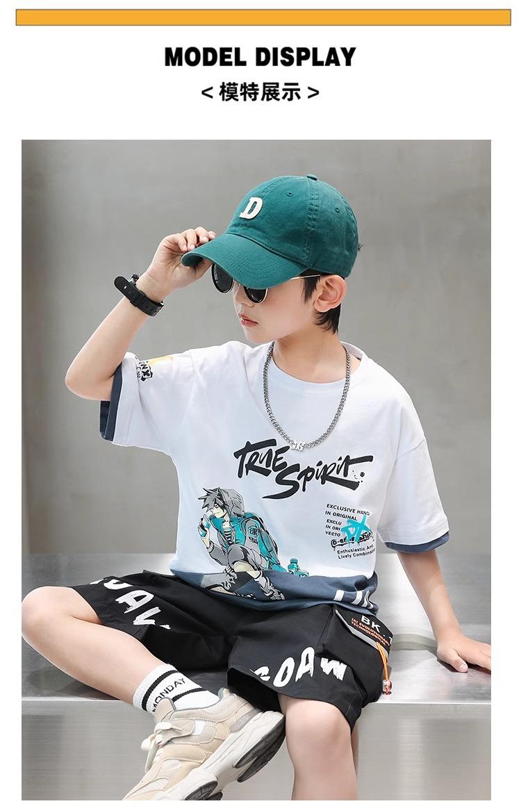 Traje de Verano de Manga Corta para Niños 2025 Nuevo Estilo para Niños Medianos y Grandes Verano para Niños Celebridad de Internet Caliente Calle Cool y Trendy
