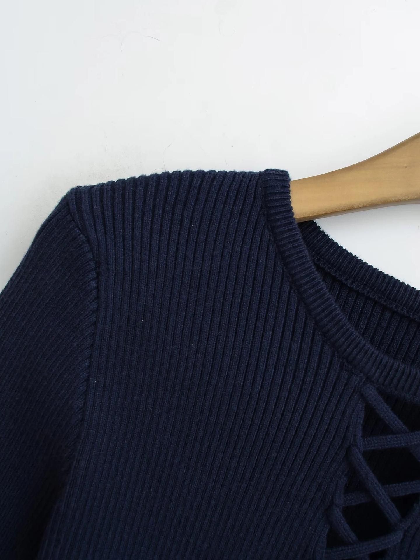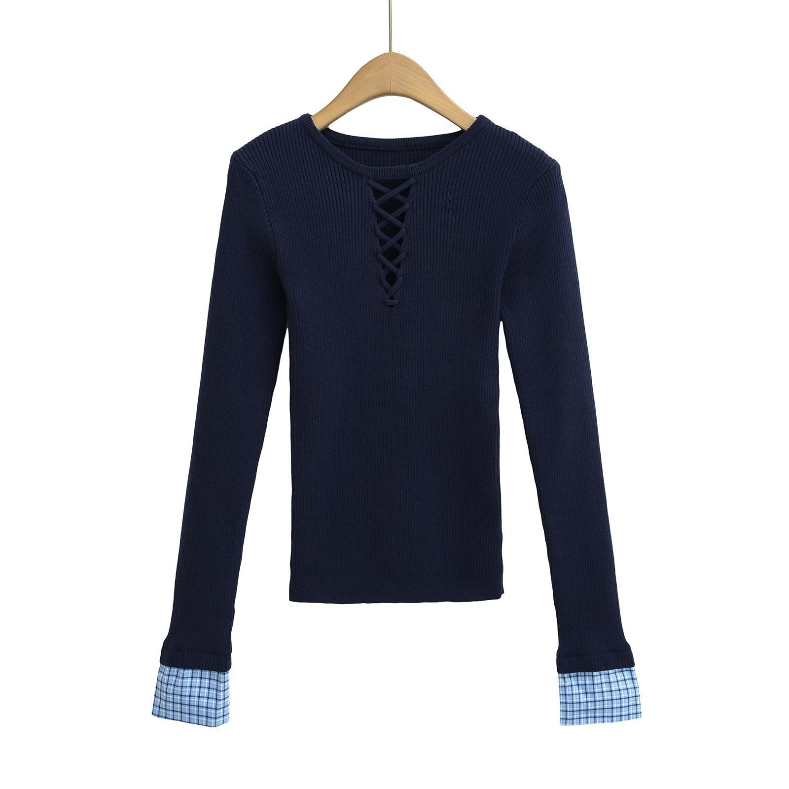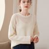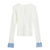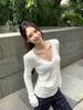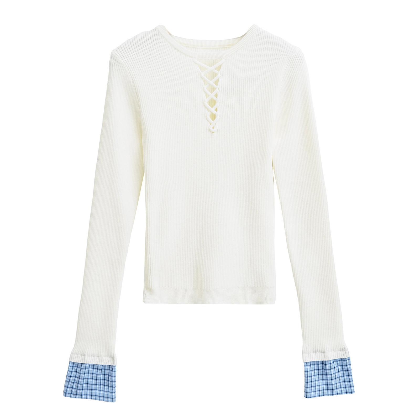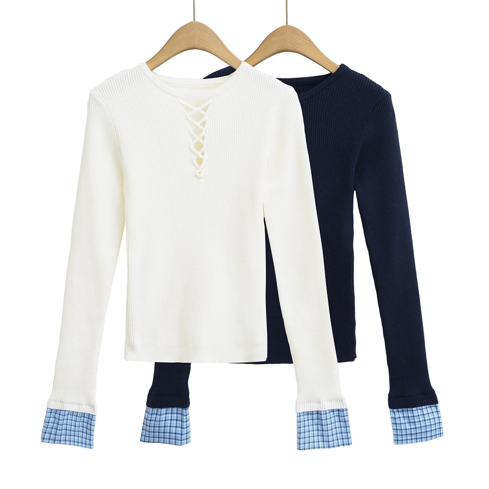 Suéter de Punto Calado de Cuello Redondo Blanco para Mujer Otoño e Invierno Ajustado de Manga Larga con Trenzas Camiseta Base con Top a Juego de Color