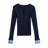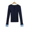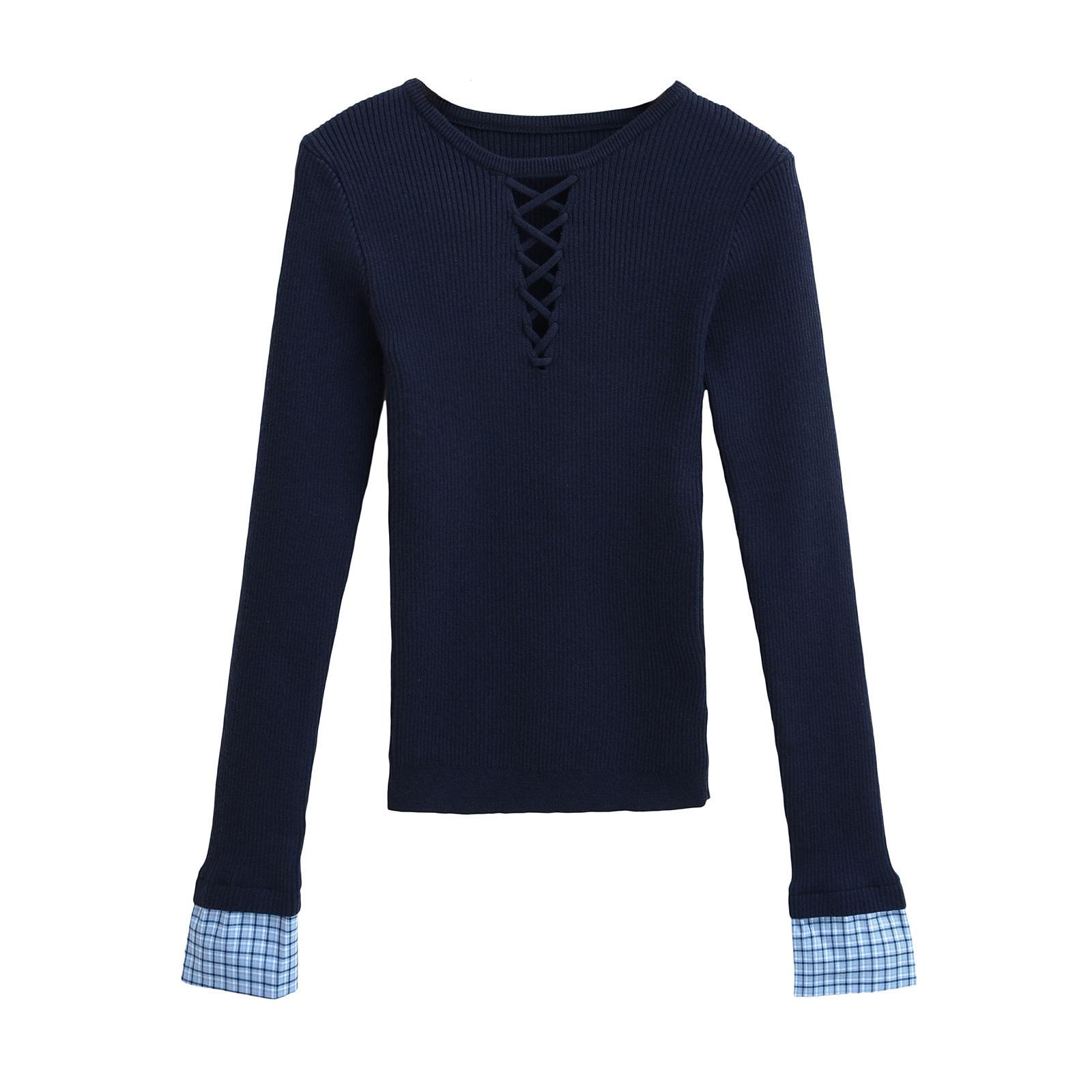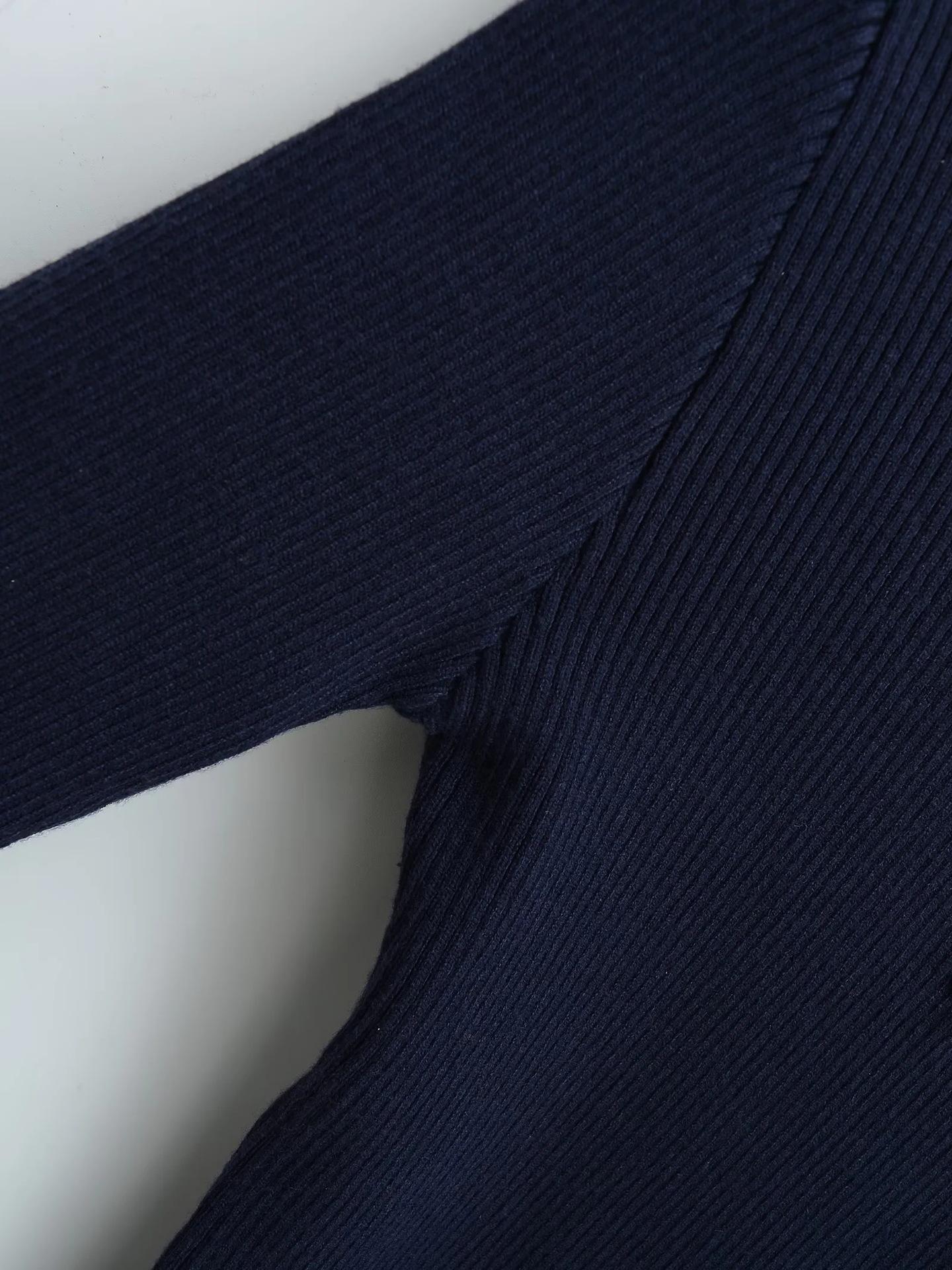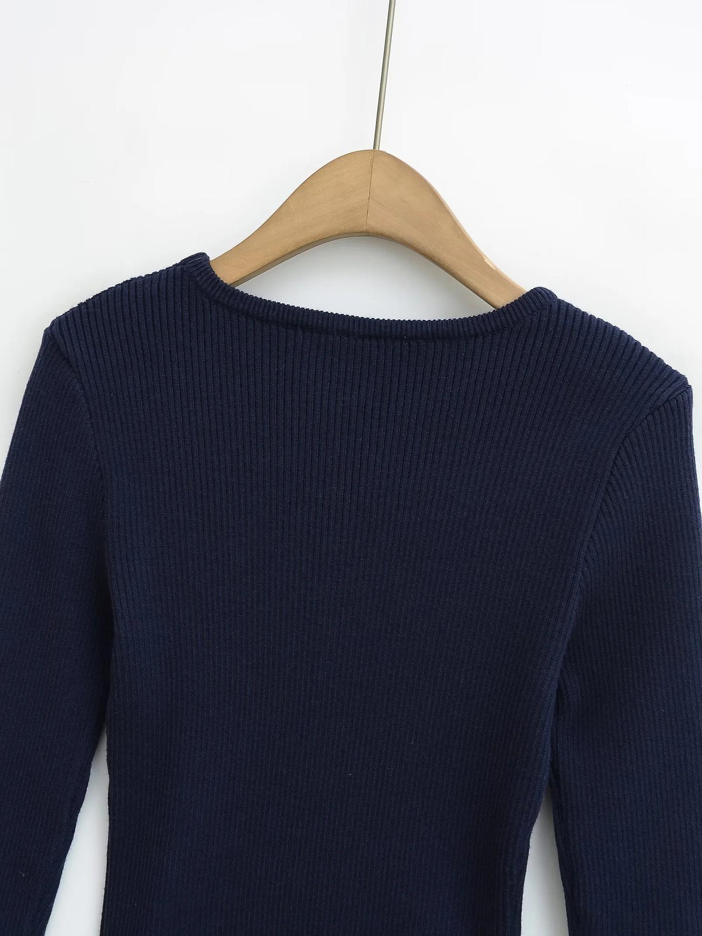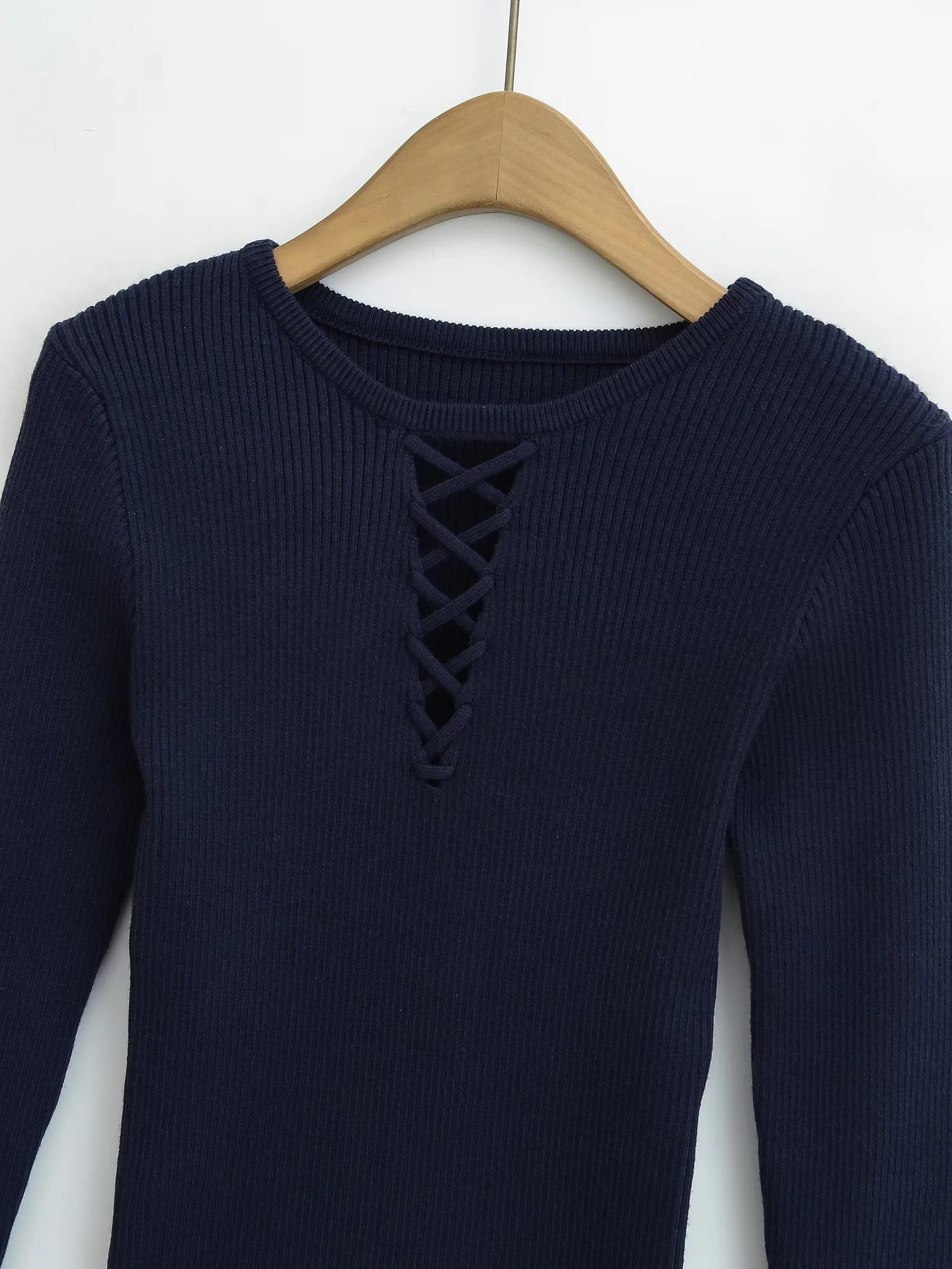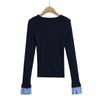 Suéter de Punto Calado de Cuello Redondo Blanco para Mujer Otoño e Invierno Ajustado de Manga Larga con Trenzas Camiseta Base con Top a Juego de Color