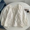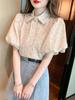 Blusa retro de verano con mangas abullonadas para mujer, estilo occidental, holgada y adelgazante, con estampado floral francés dulce.
