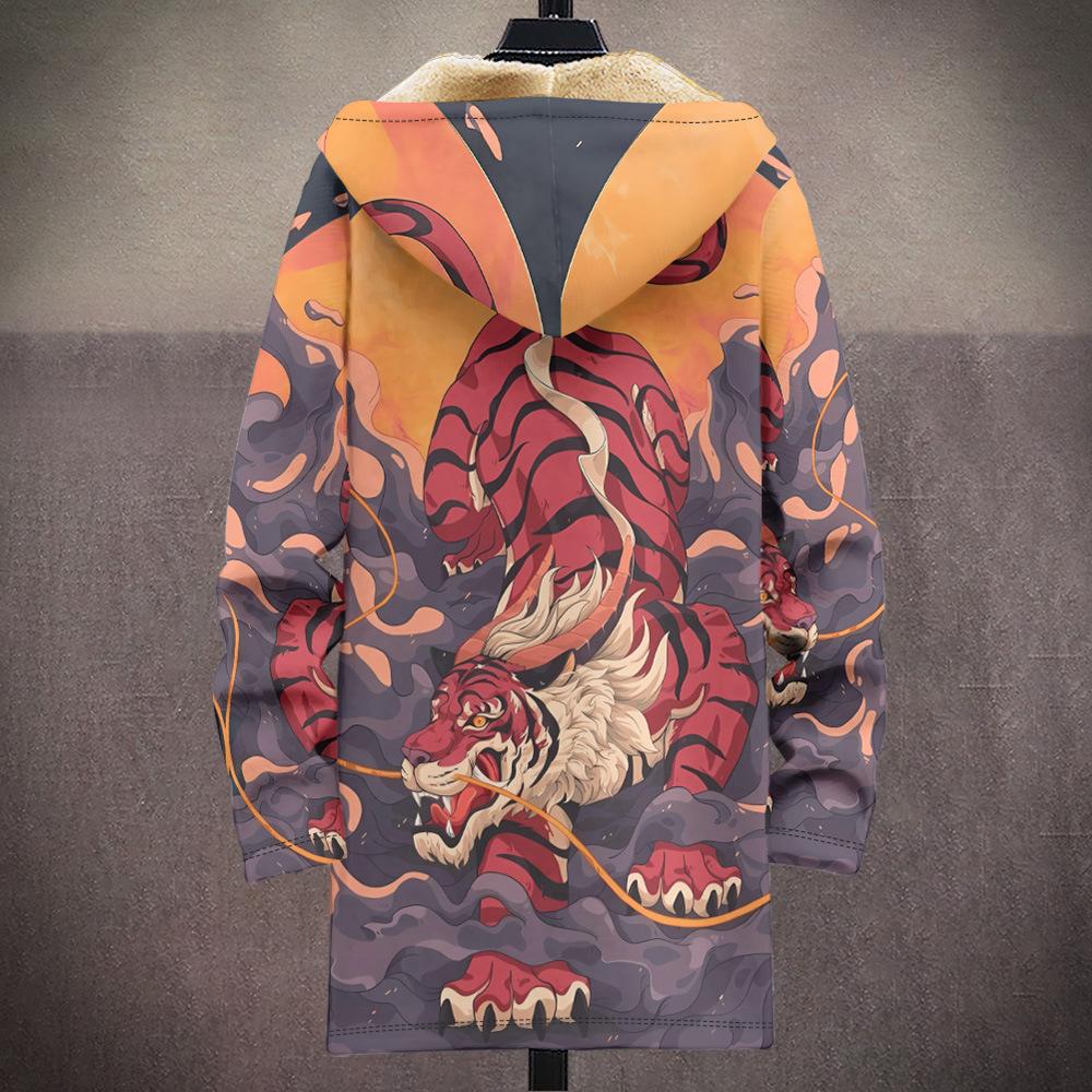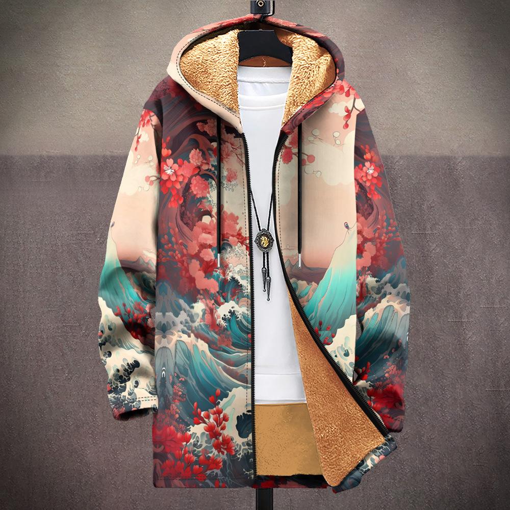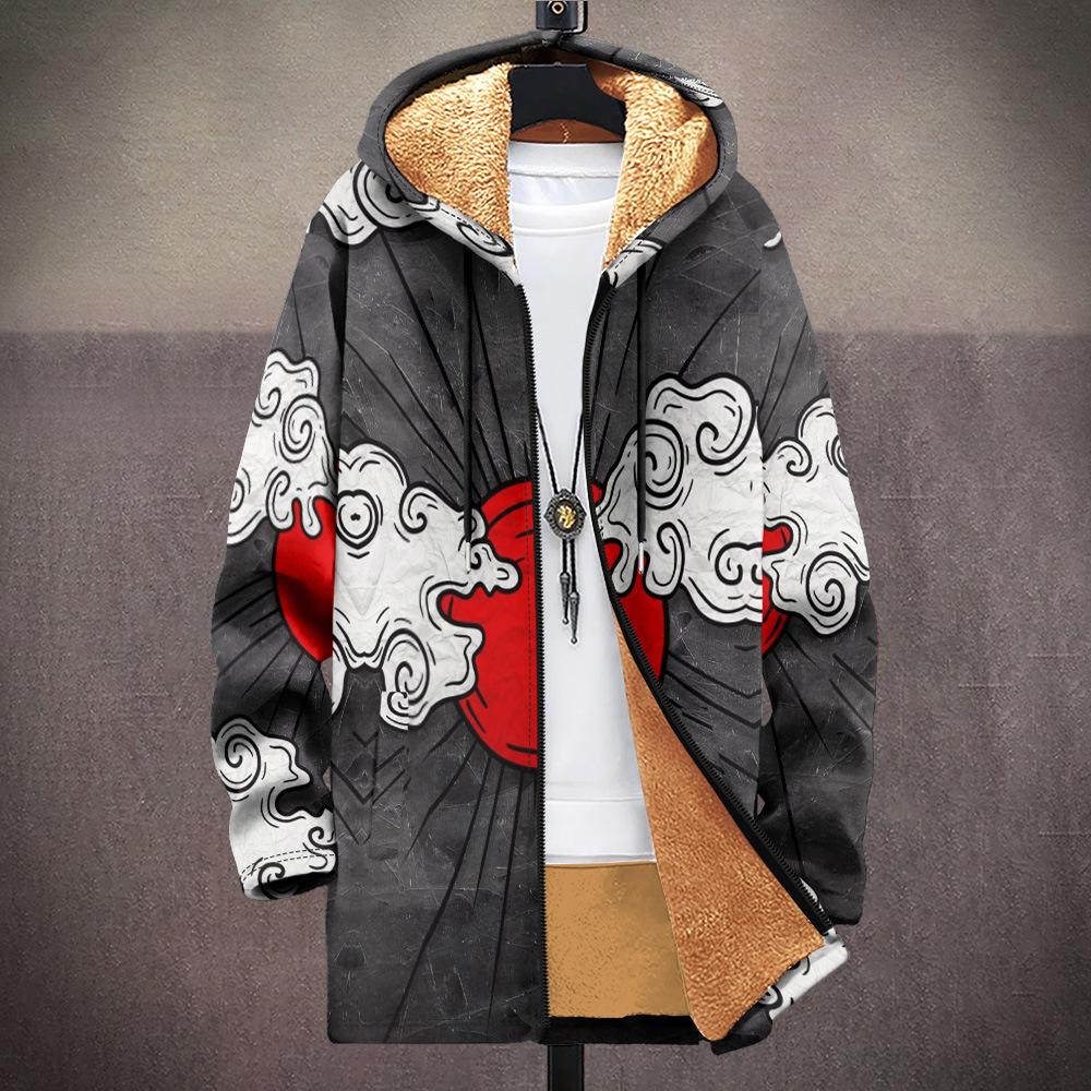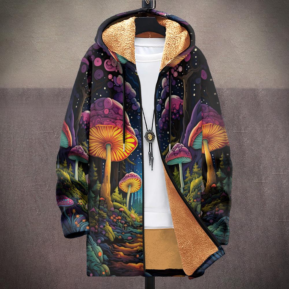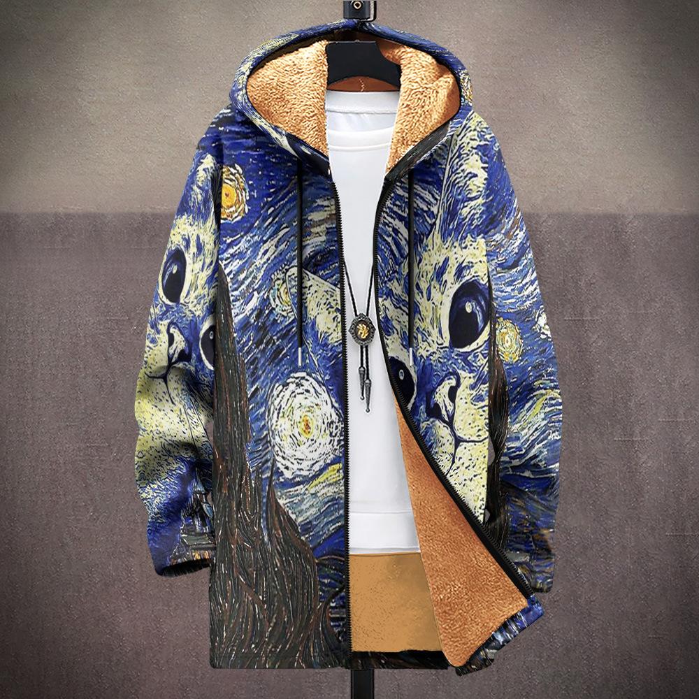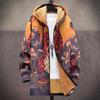 Abrigo nuevo transfronterizo con estampado multicolor, cárdigan con capucha y cremallera de 37 elementos, chaqueta acolchada de algodón y terciopelo de invierno gruesa con forro amarillo