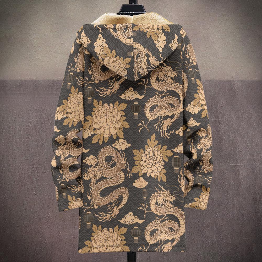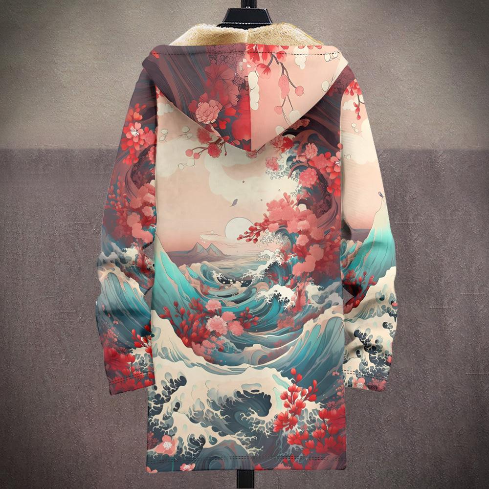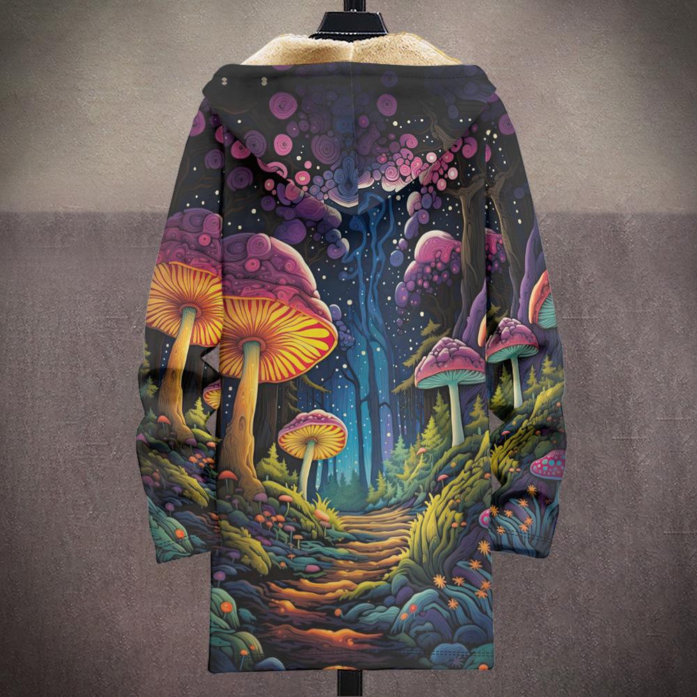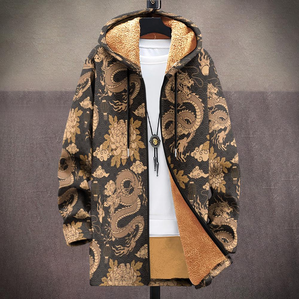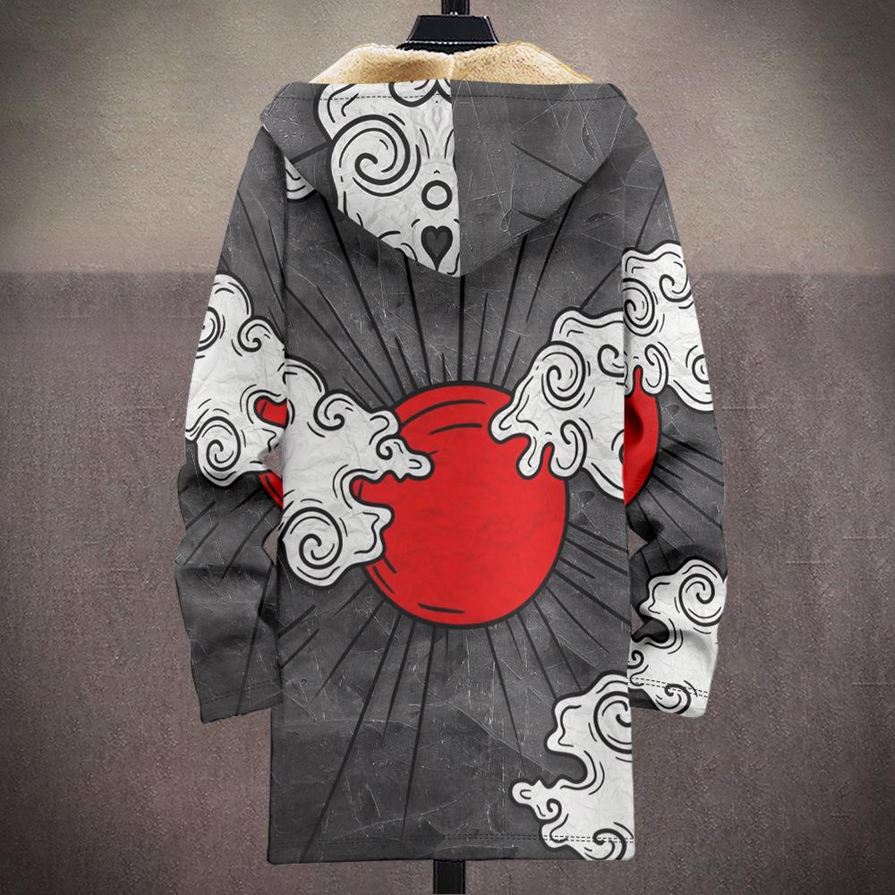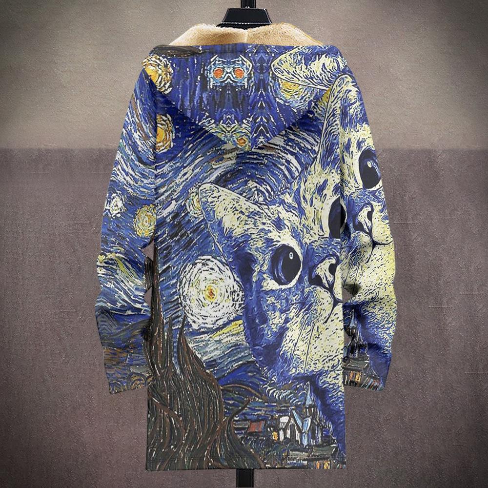 Abrigo nuevo transfronterizo con estampado multicolor, cárdigan con capucha y cremallera de 37 elementos, chaqueta acolchada de algodón y terciopelo de invierno gruesa con forro amarillo