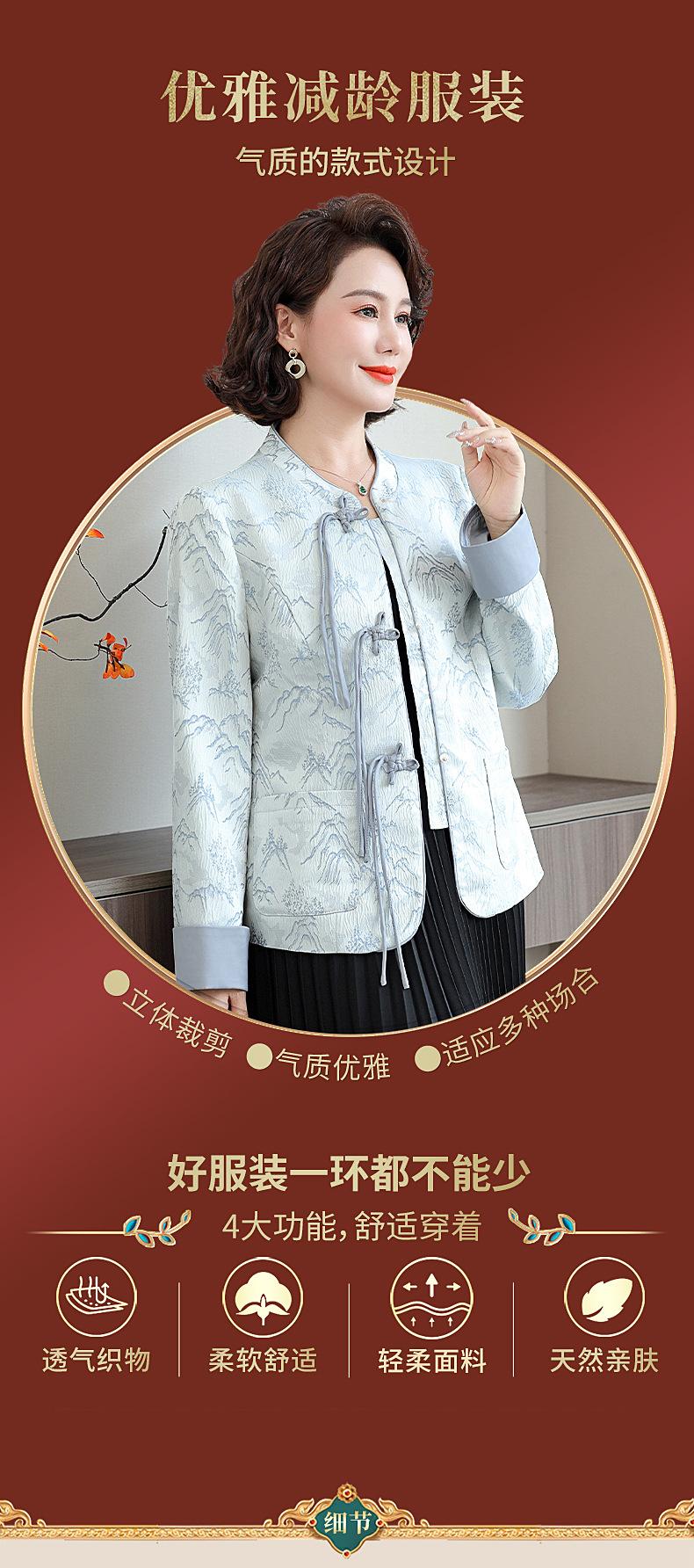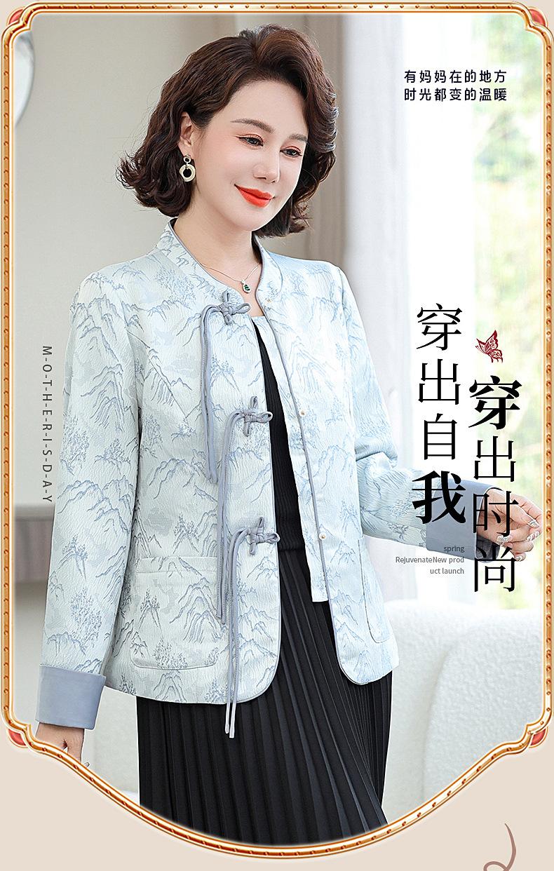 Abrigo estilo occidental para madre primeriza, primavera y otoño, estilo chino, estilo nacional, abrigo de otoño para mujeres de mediana edad y mayores, abrigo noble, corto, fino y de moda.