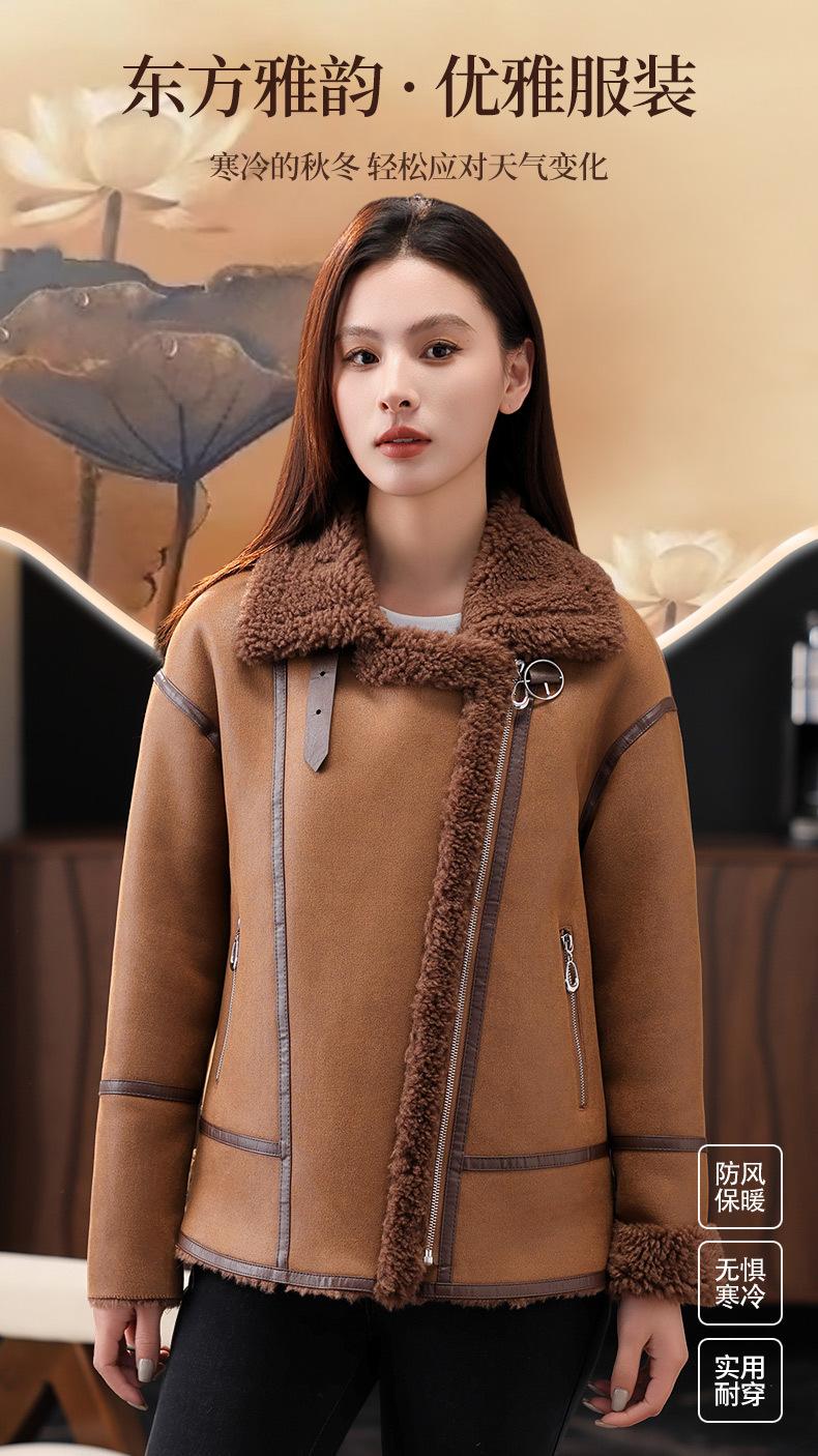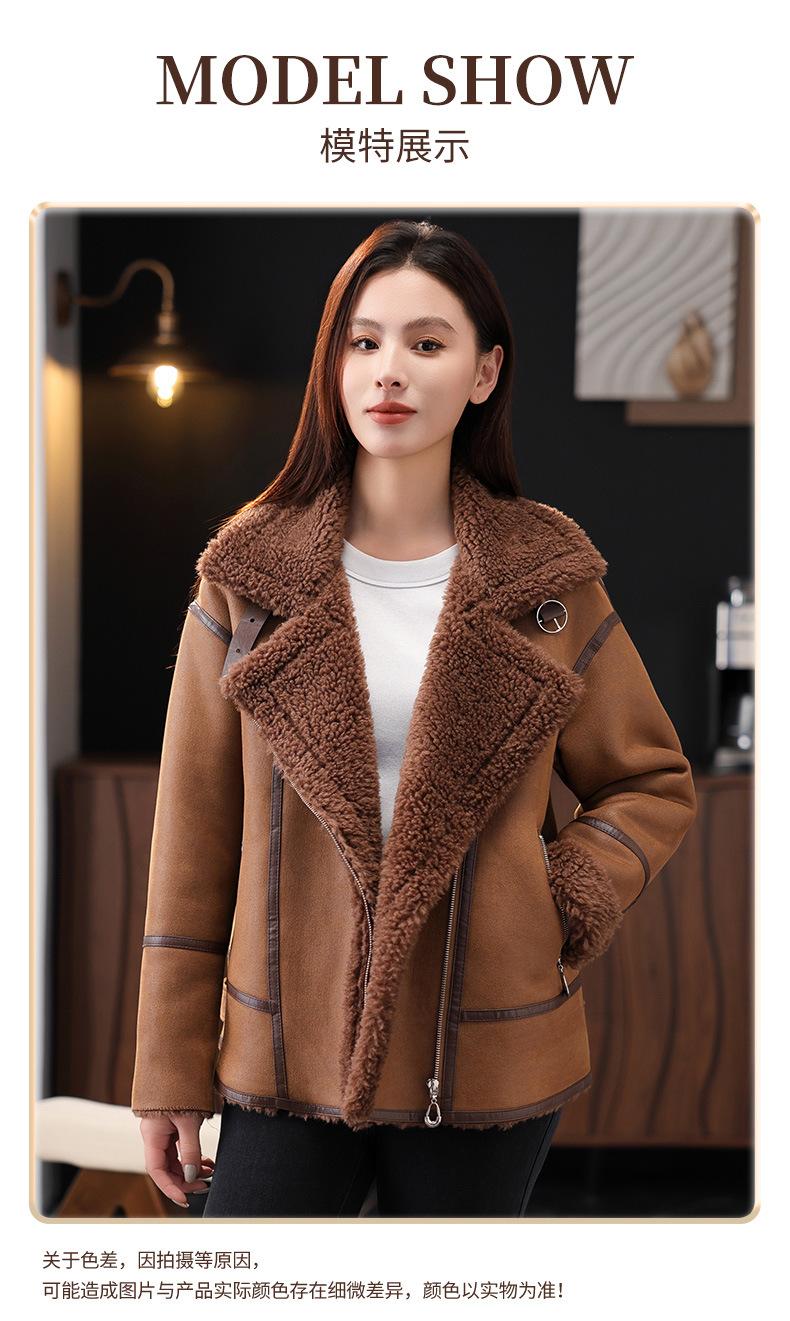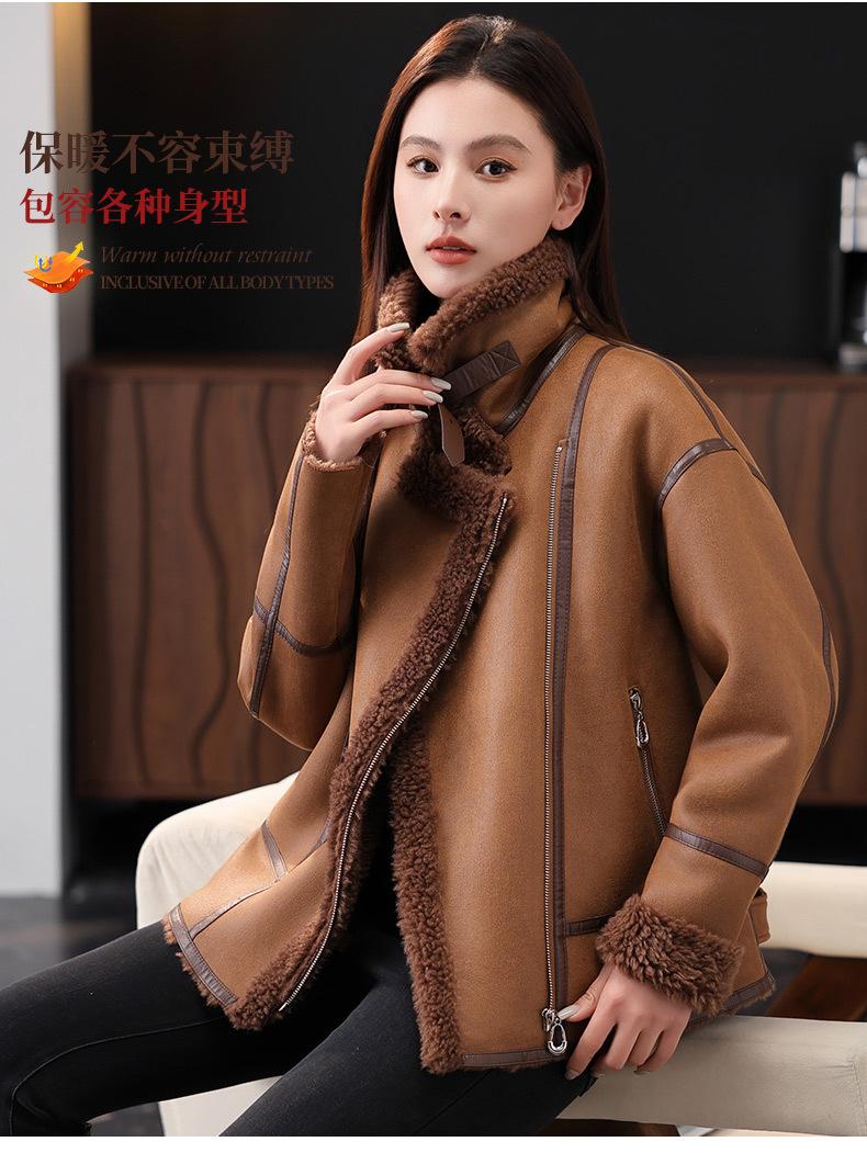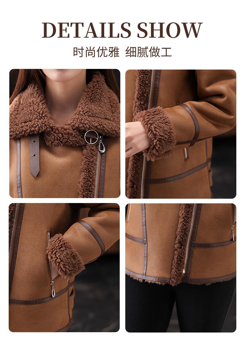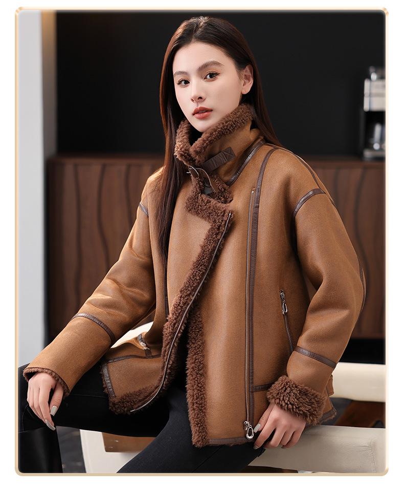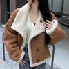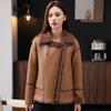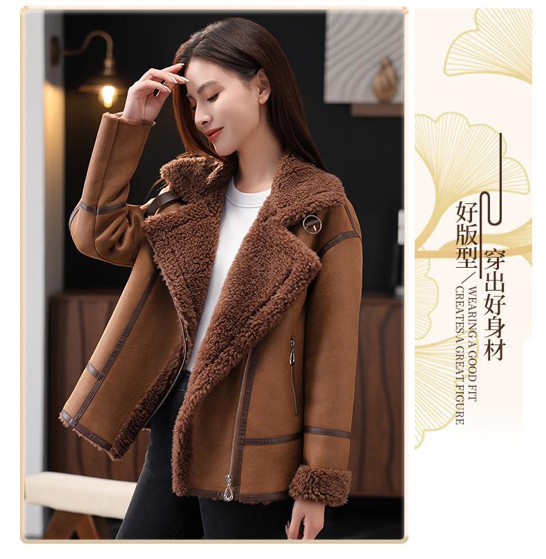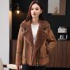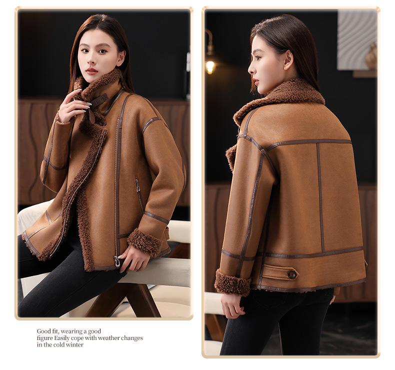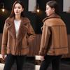 Abrigo de piel de ciervo y cordero para mujer, chaqueta corta y gruesa de estilo occidental, otoño e invierno, 2025