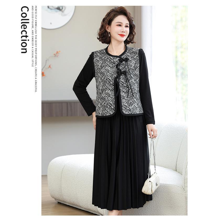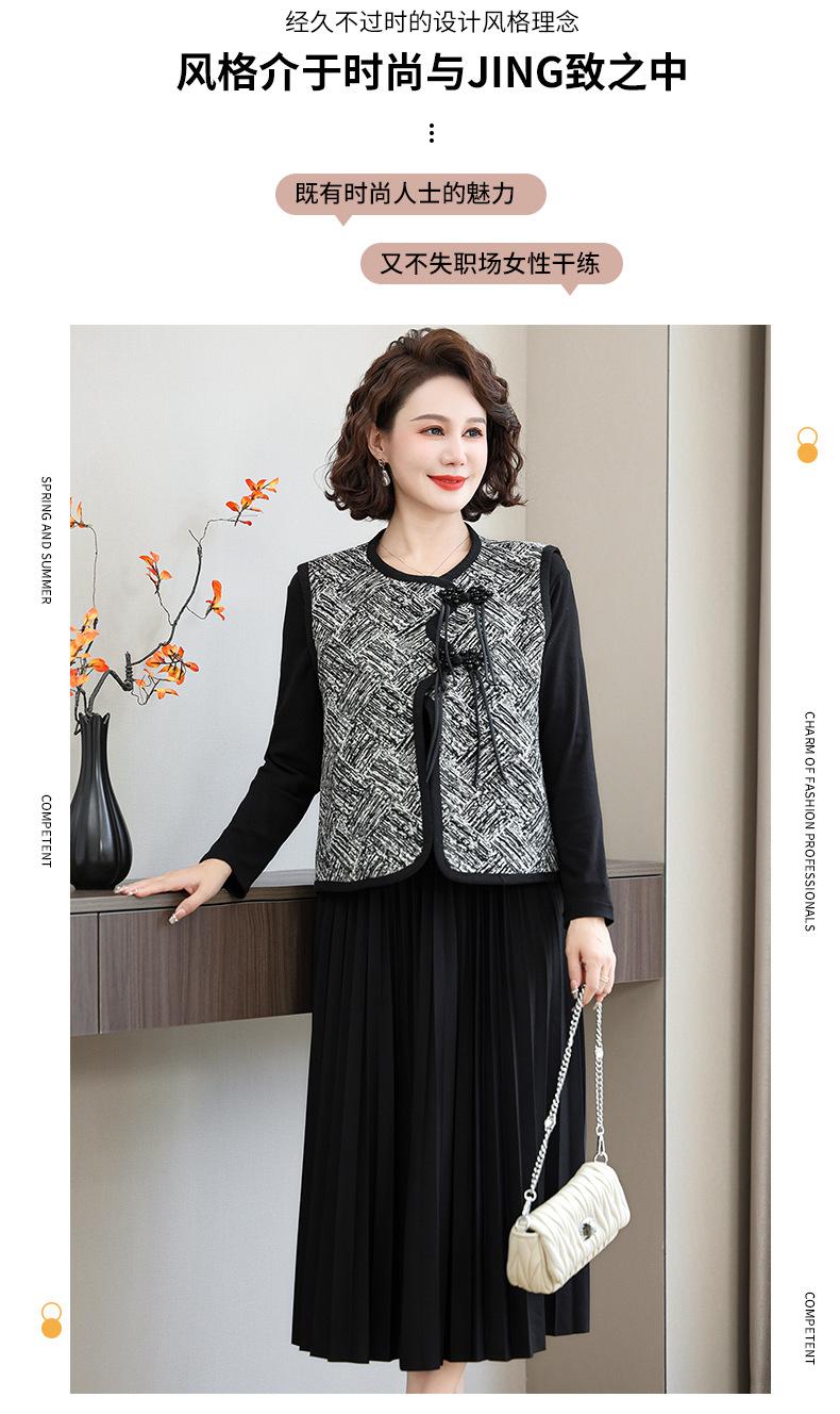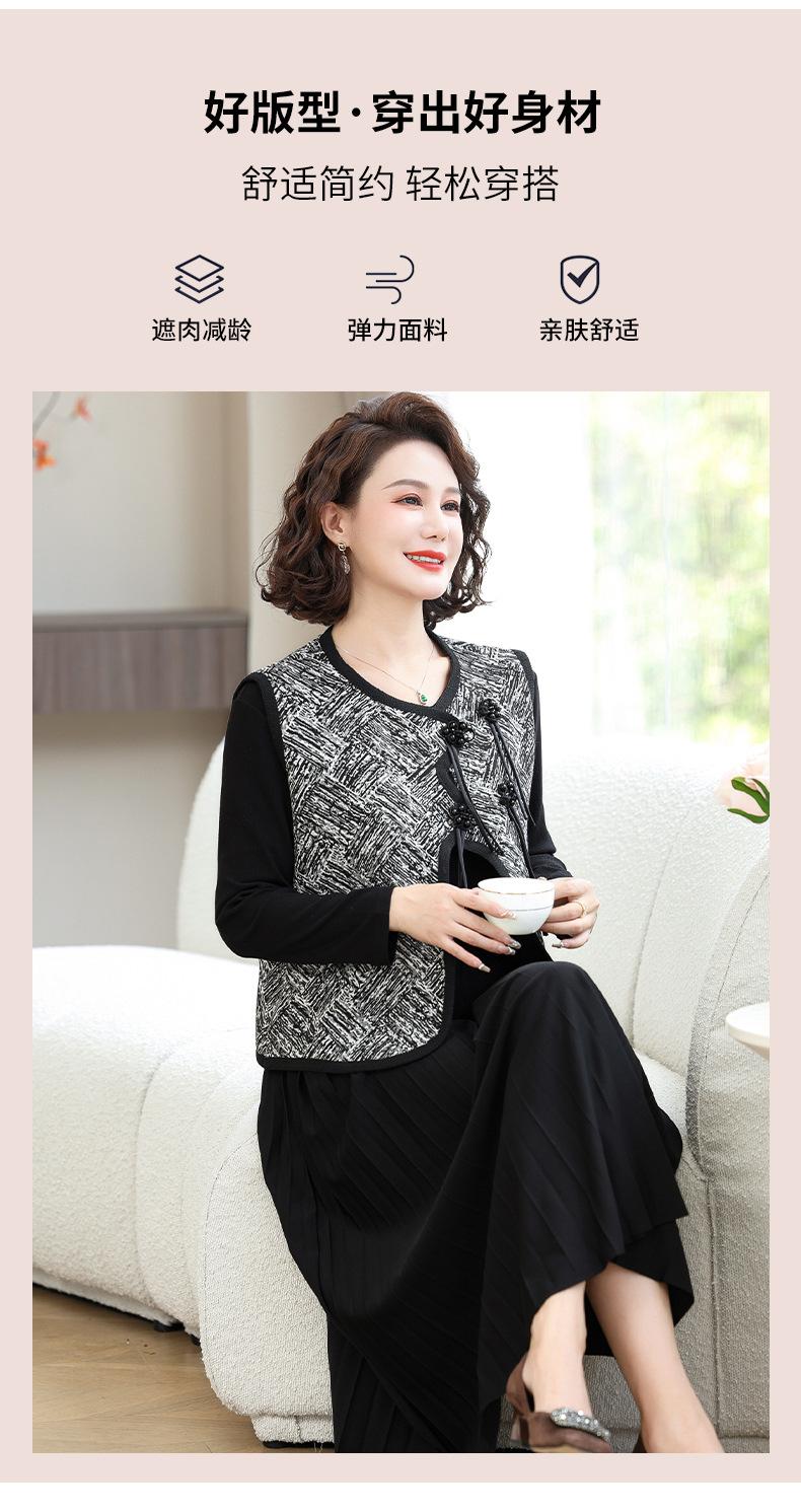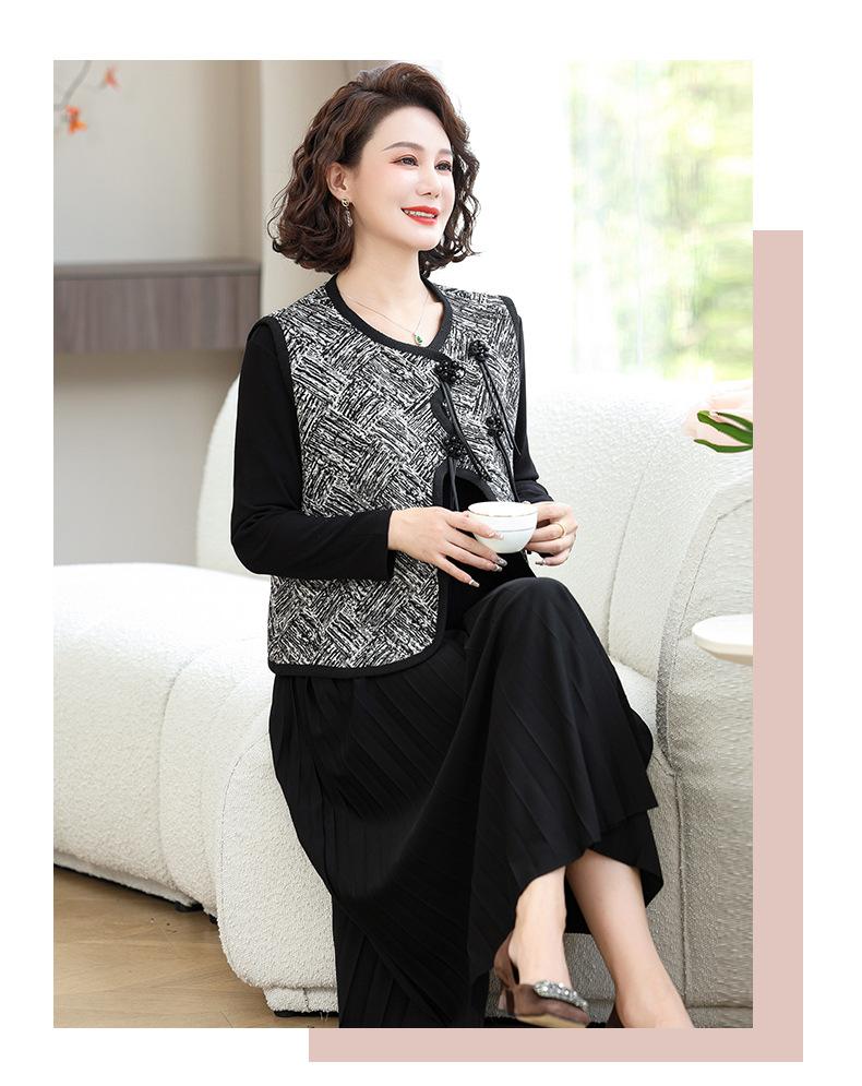 2024 Nuevo traje de vestir negro Nuevo chaleco Guofeng Vestido elegante suelto Conjunto de dos piezas Madre de mediana edad