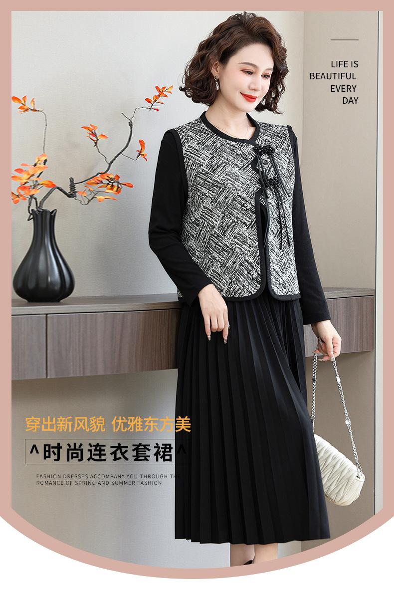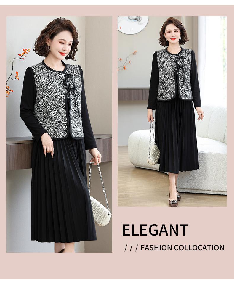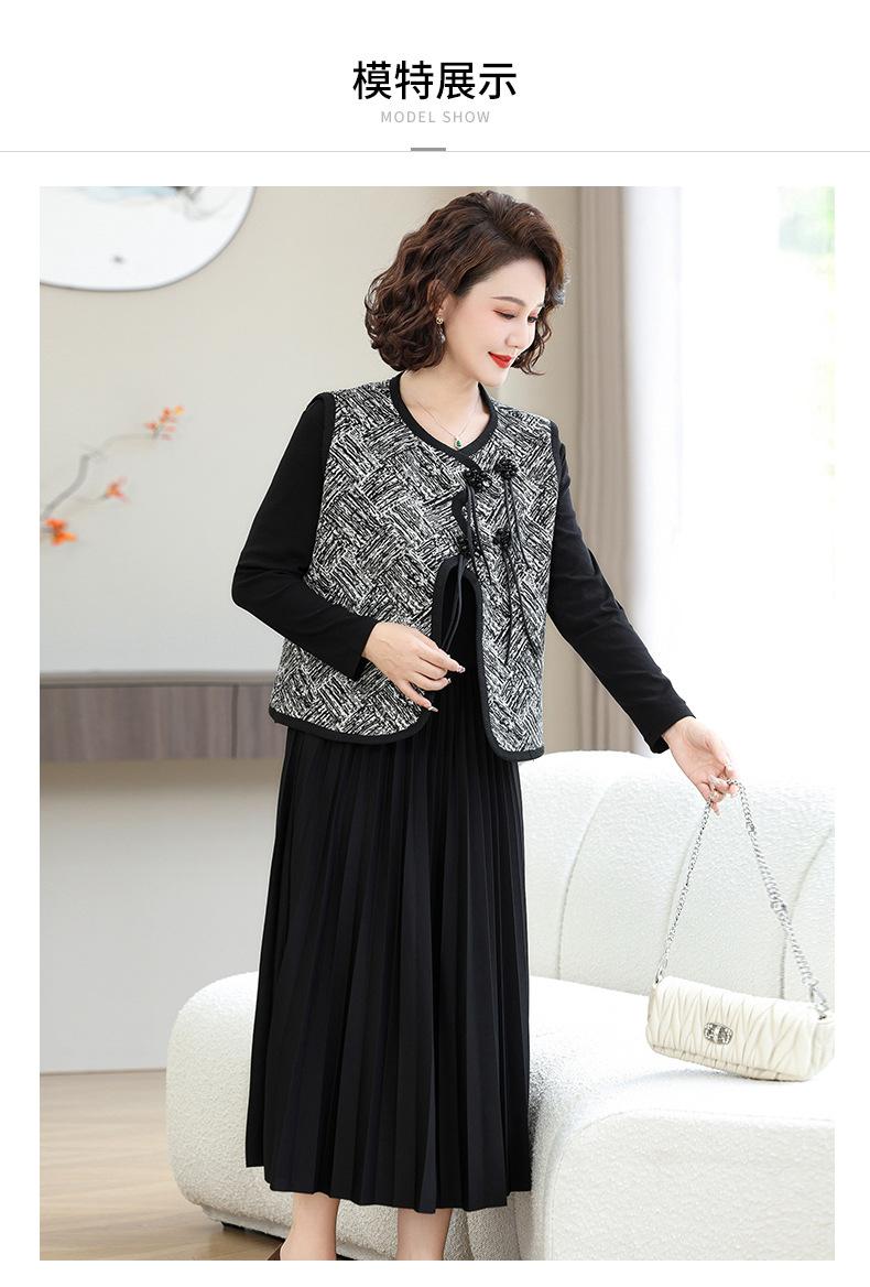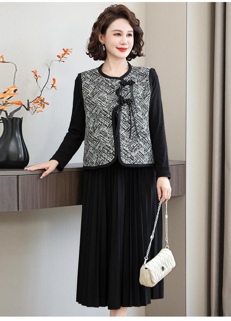 2024 Nuevo traje de vestir negro Nuevo chaleco Guofeng Vestido elegante suelto Conjunto de dos piezas Madre de mediana edad