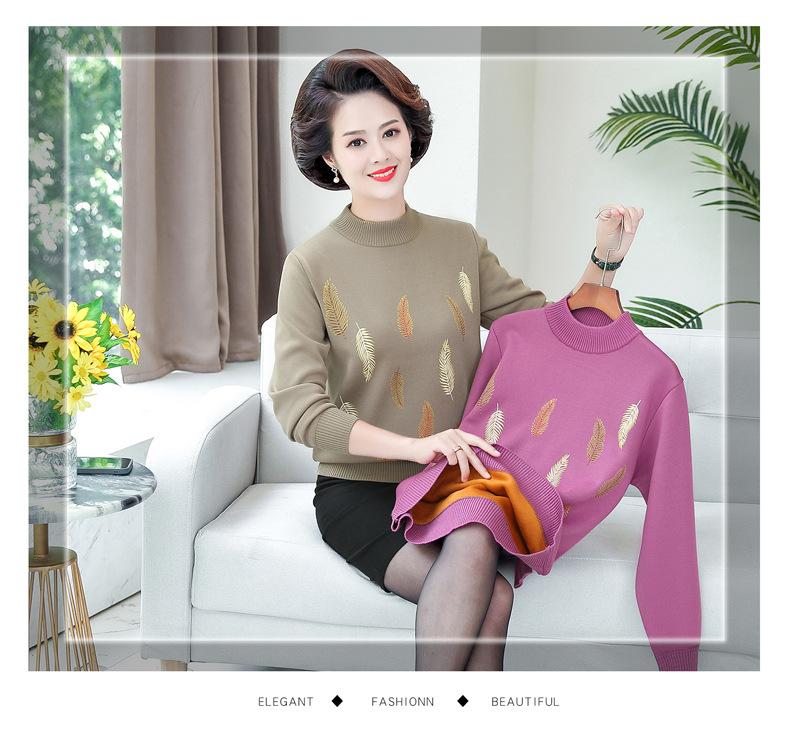 Suéter cálido de invierno para madres de mediana edad y mayores, ropa de otoño e invierno de 2024 para mujer, camisa de base gruesa con forro polar de una pieza, ropa superior