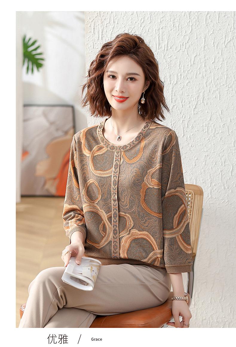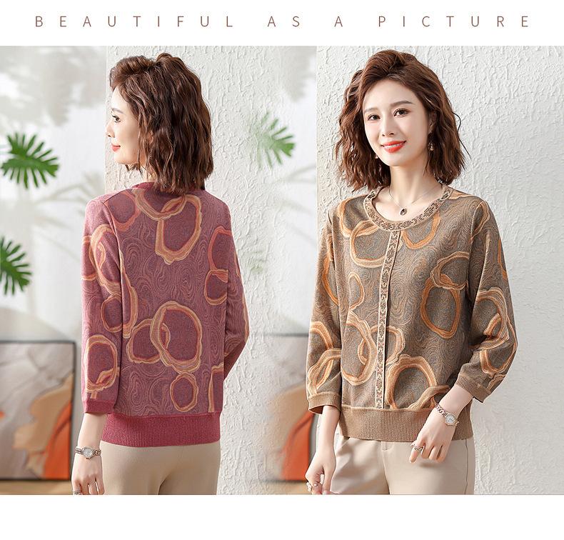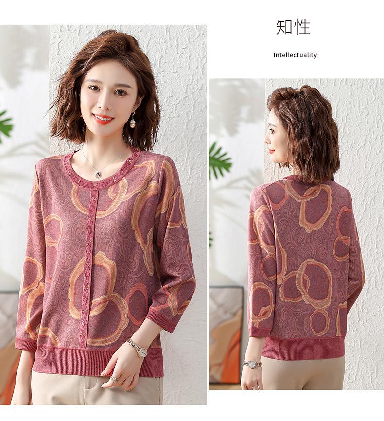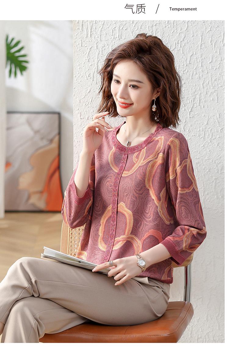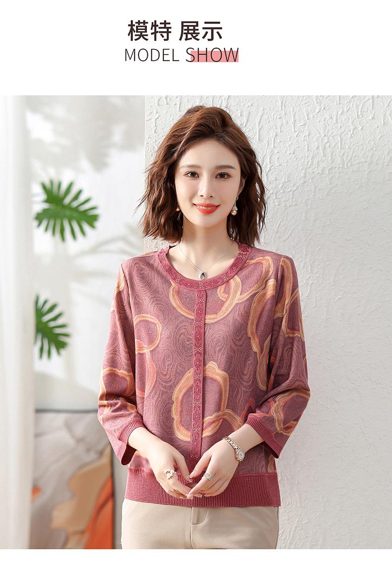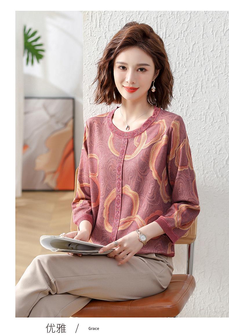 Camisa de punto nueva de otoño 2024 para madres, cuello redondo, camisa básica fina para mujeres de mediana edad y mayores, primavera y otoño