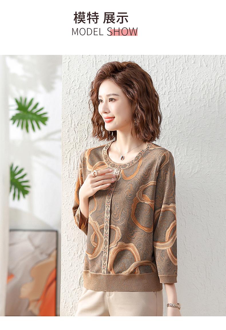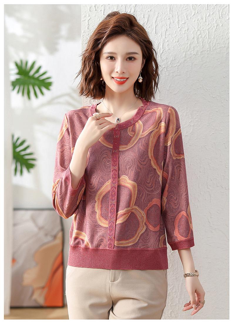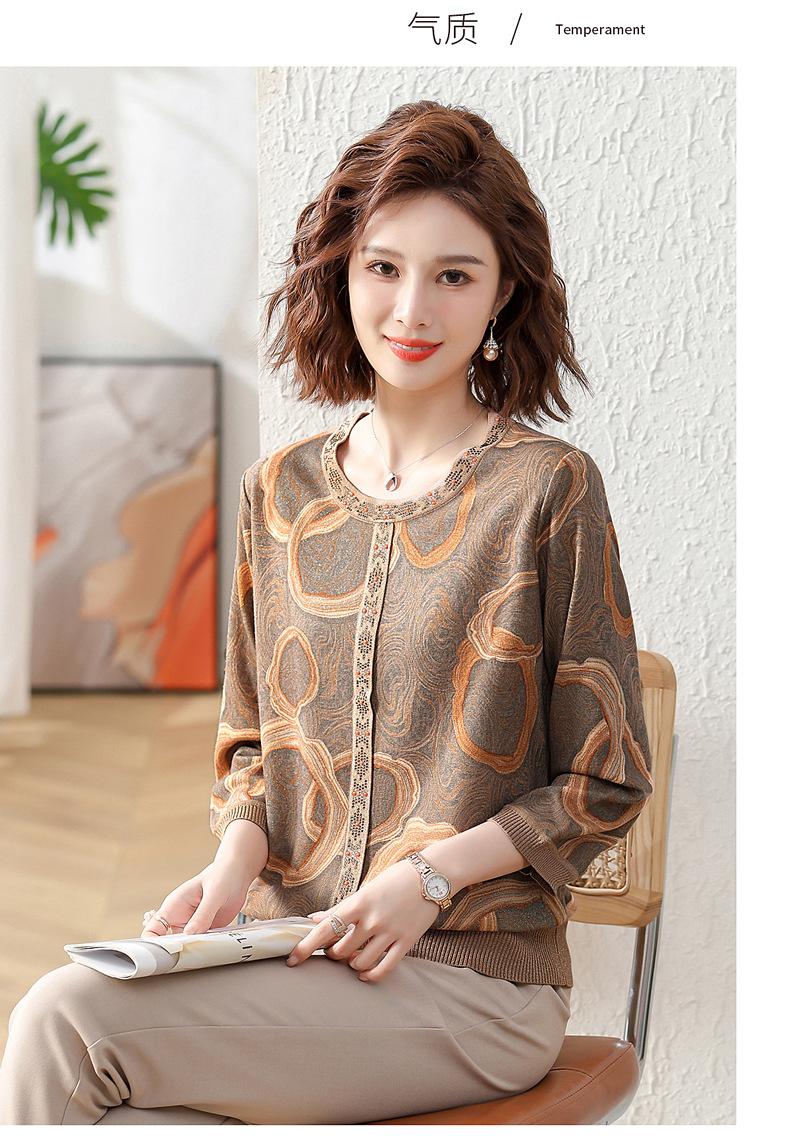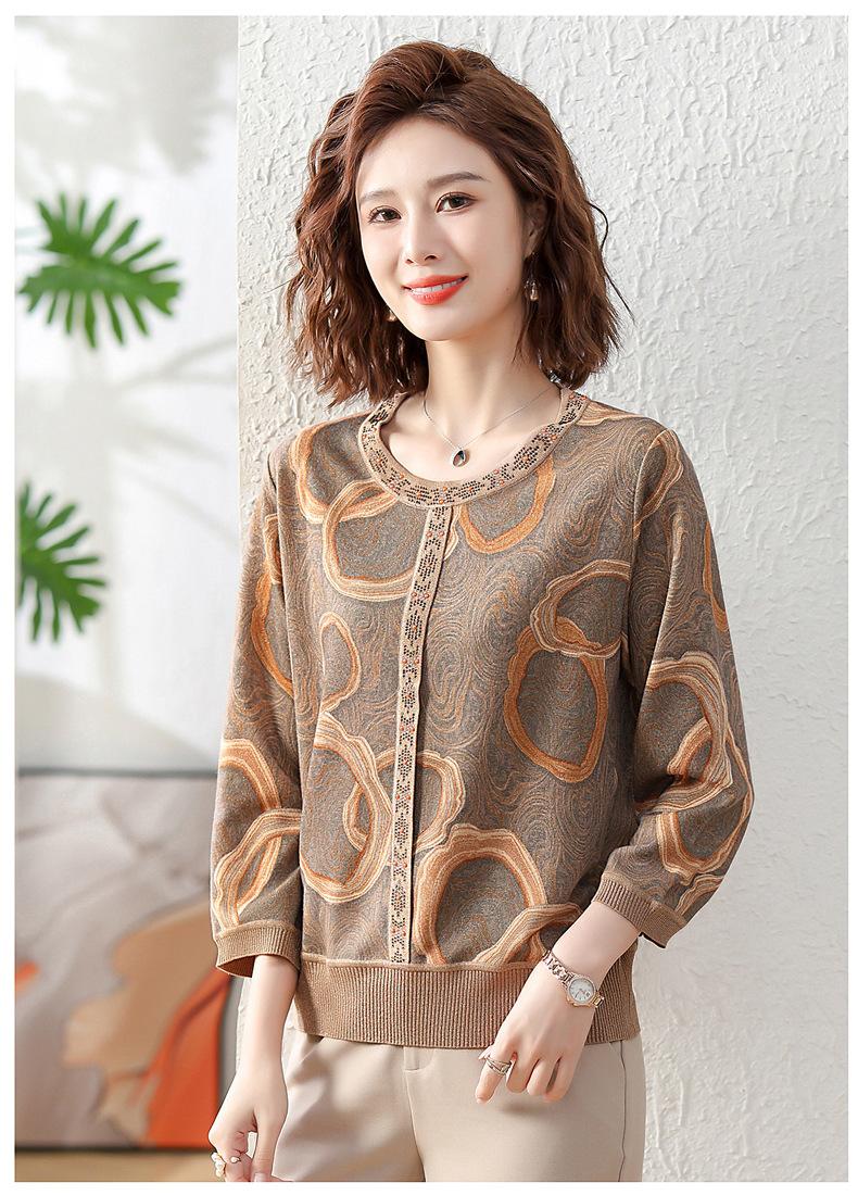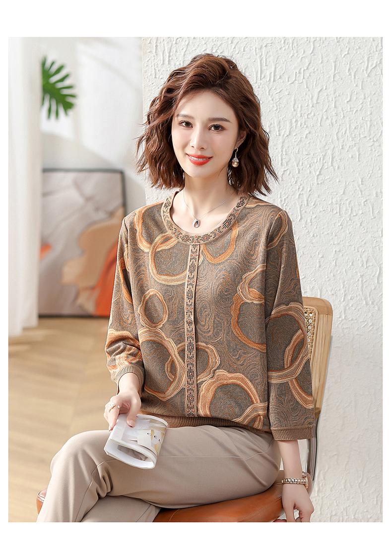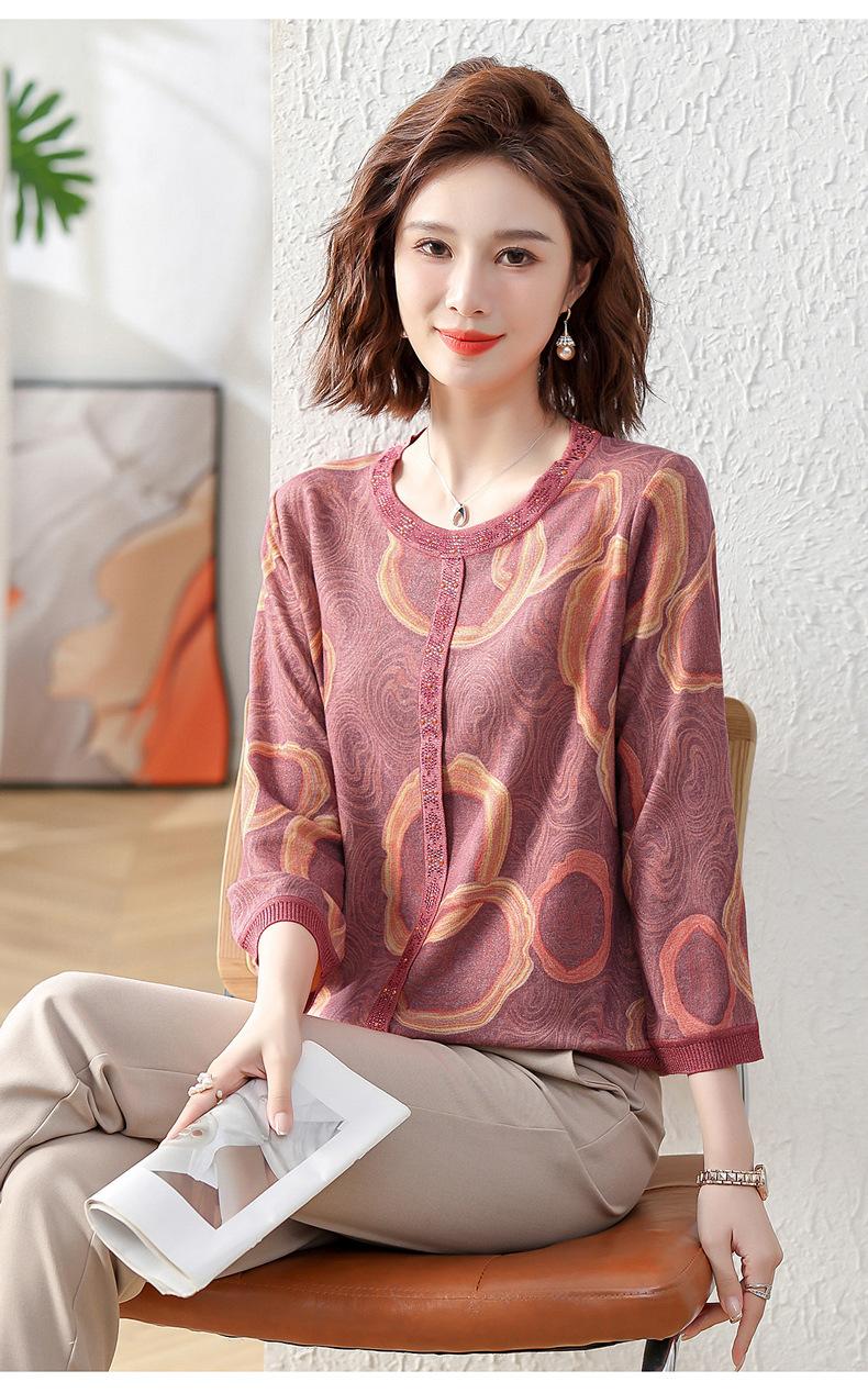 Camisa de punto nueva de otoño 2024 para madres, cuello redondo, camisa básica fina para mujeres de mediana edad y mayores, primavera y otoño