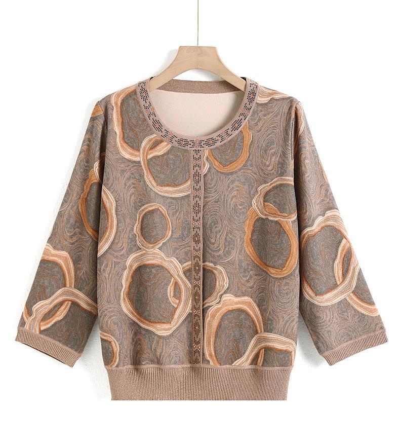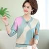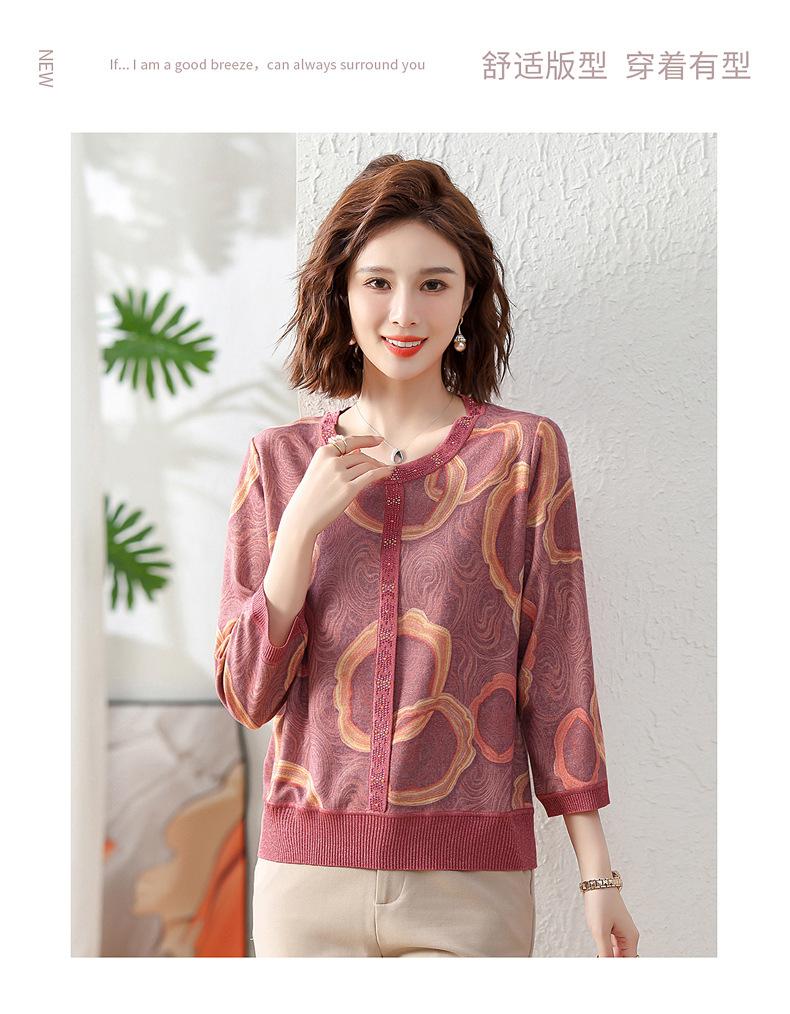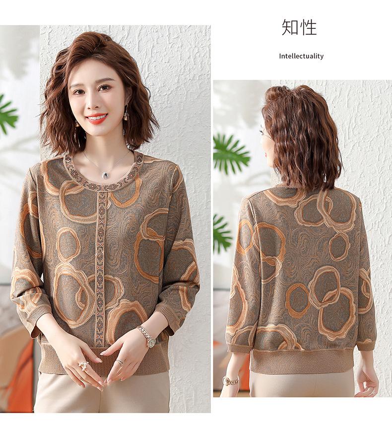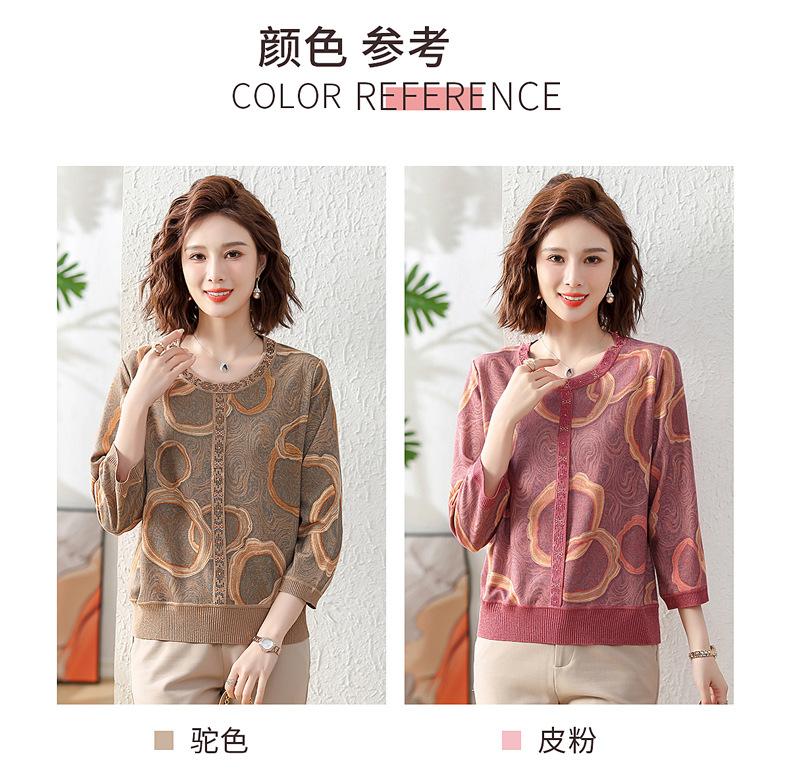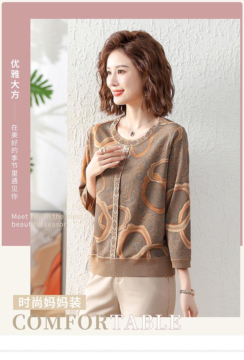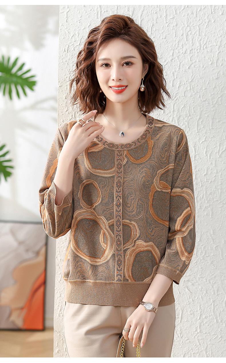 Camisa de punto nueva de otoño 2024 para madres, cuello redondo, camisa básica fina para mujeres de mediana edad y mayores, primavera y otoño