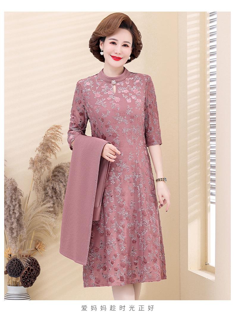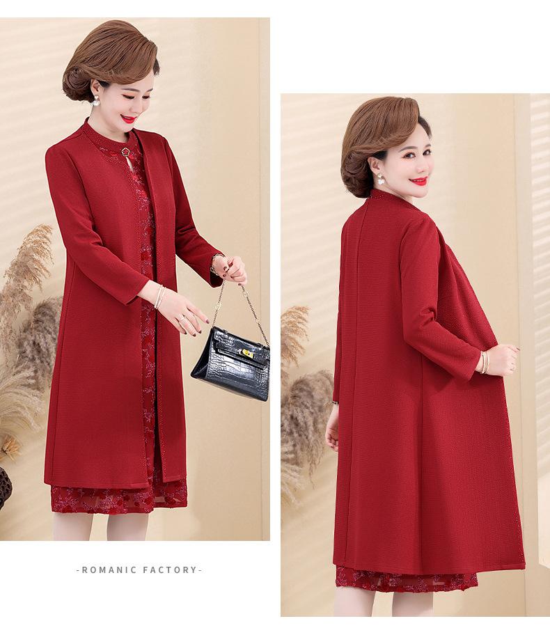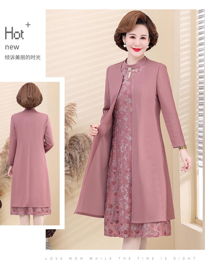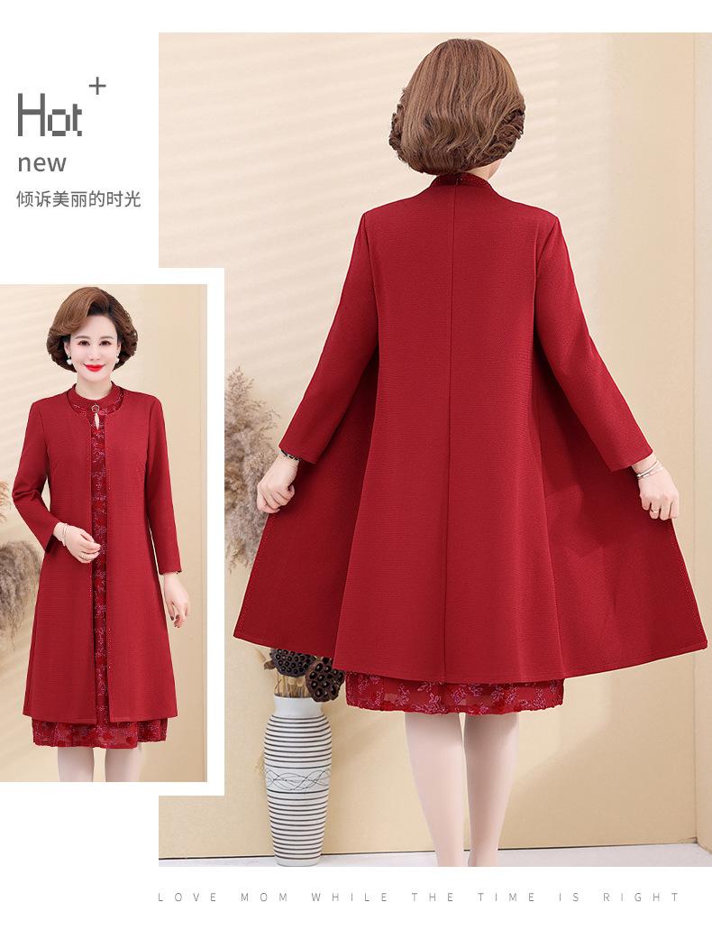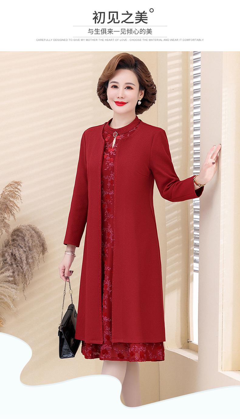 Vestido de boda para suegra de mediana edad y anciana, vestido cheongsam de manga larga, vestido nuevo de primavera y otoño para mujer, traje de dos piezas