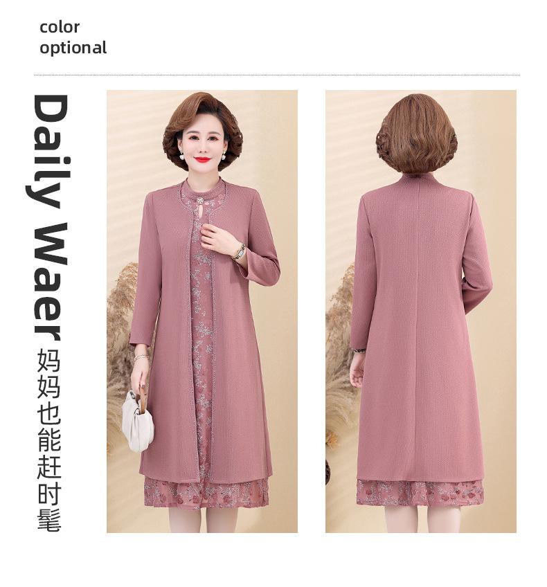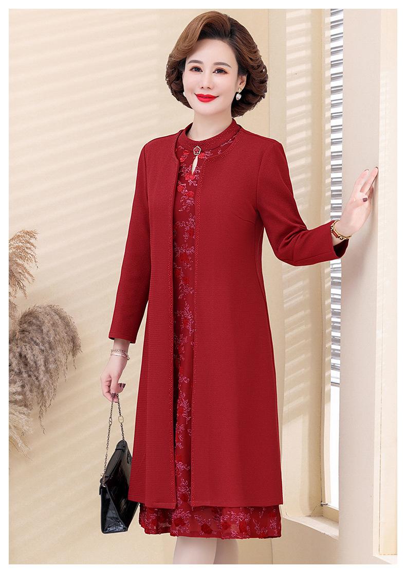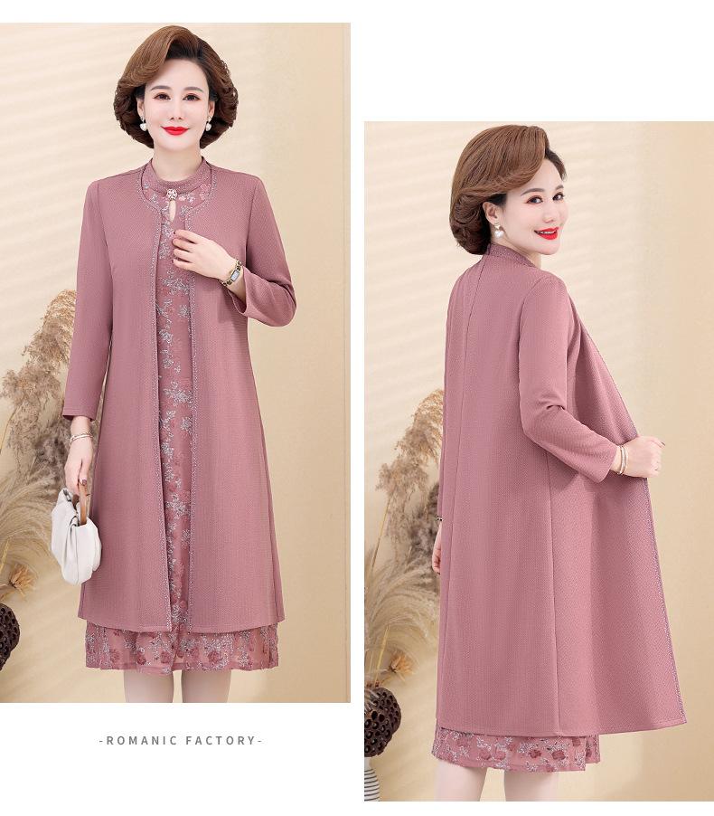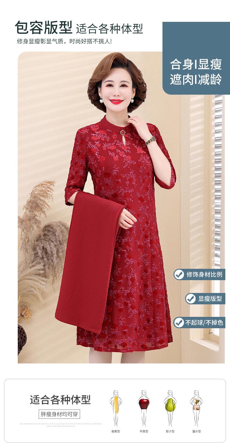Vestido de boda para suegra de mediana edad y anciana, vestido cheongsam de manga larga, vestido nuevo de primavera y otoño para mujer, traje de dos piezas