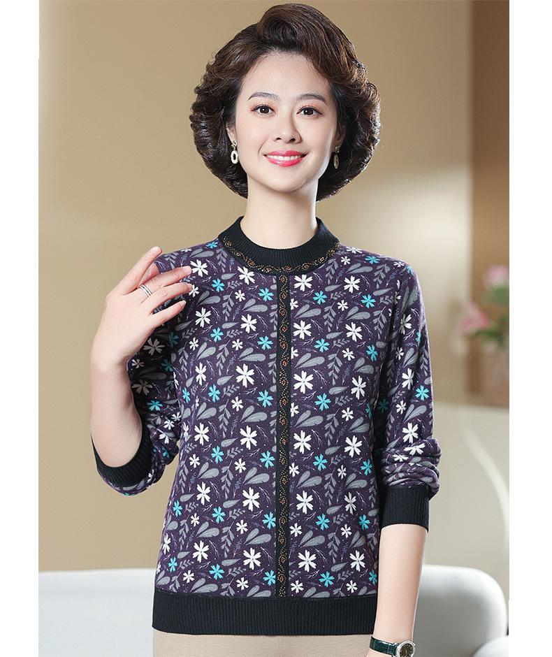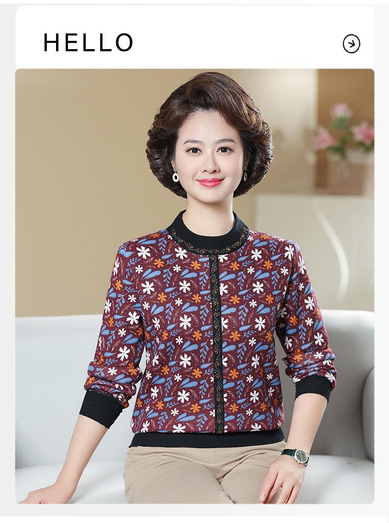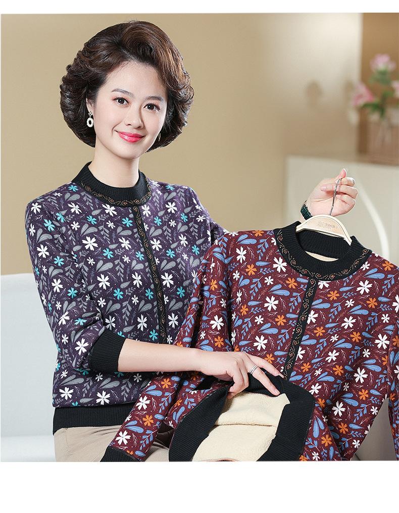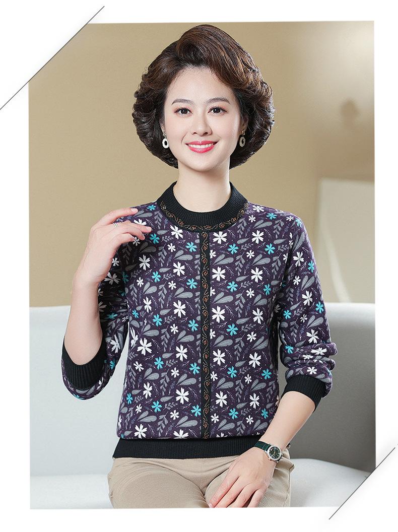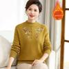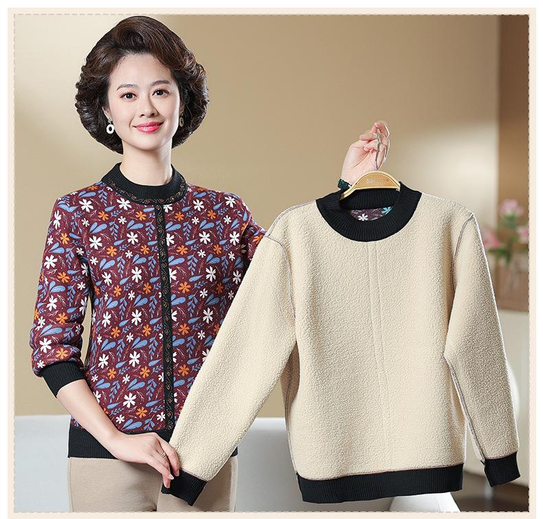 Suéter Grueso con Forro Polar de Invierno para Madre Camiseta Base Cálida para Mujeres de Mediana Edad Top de Otoño e Invierno de Estilo Occidental para Mediana Edad y Ancianas