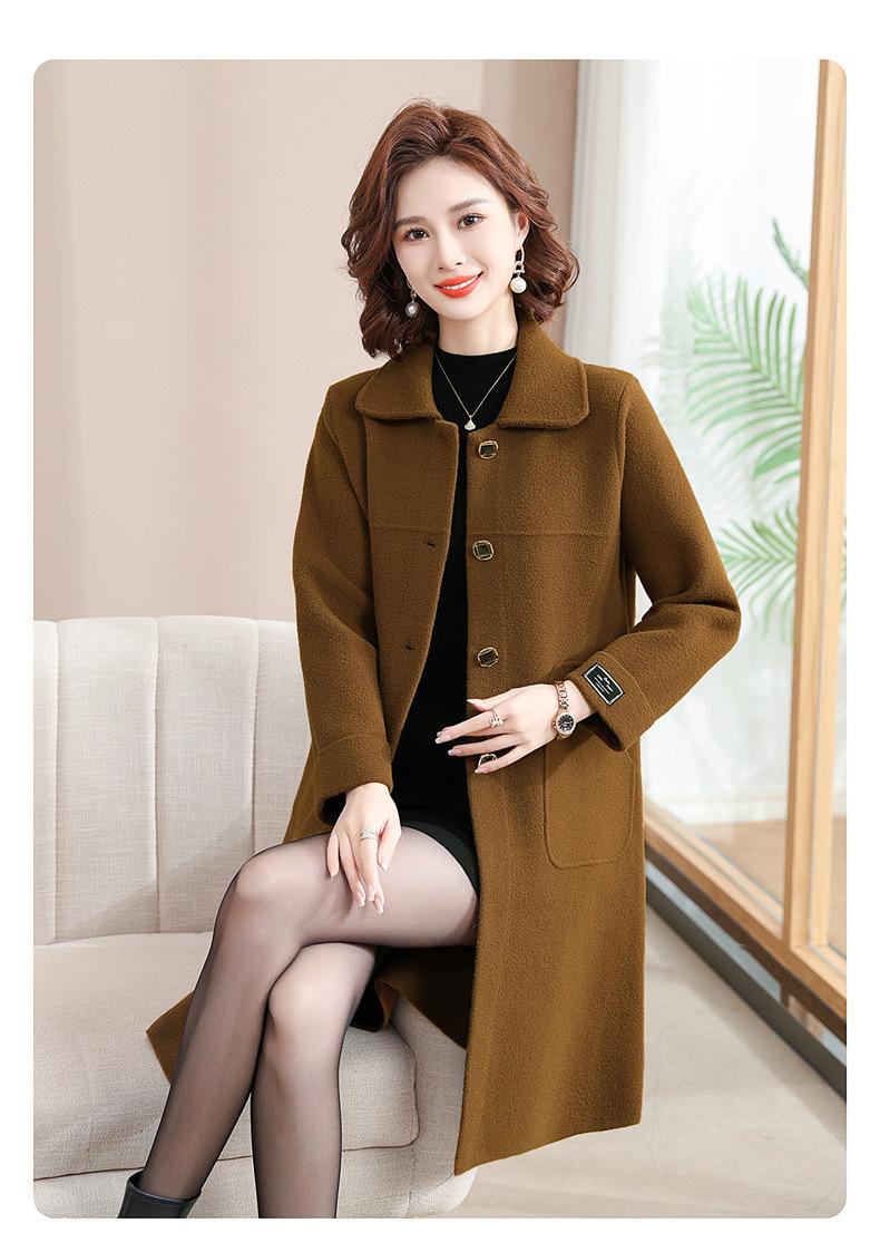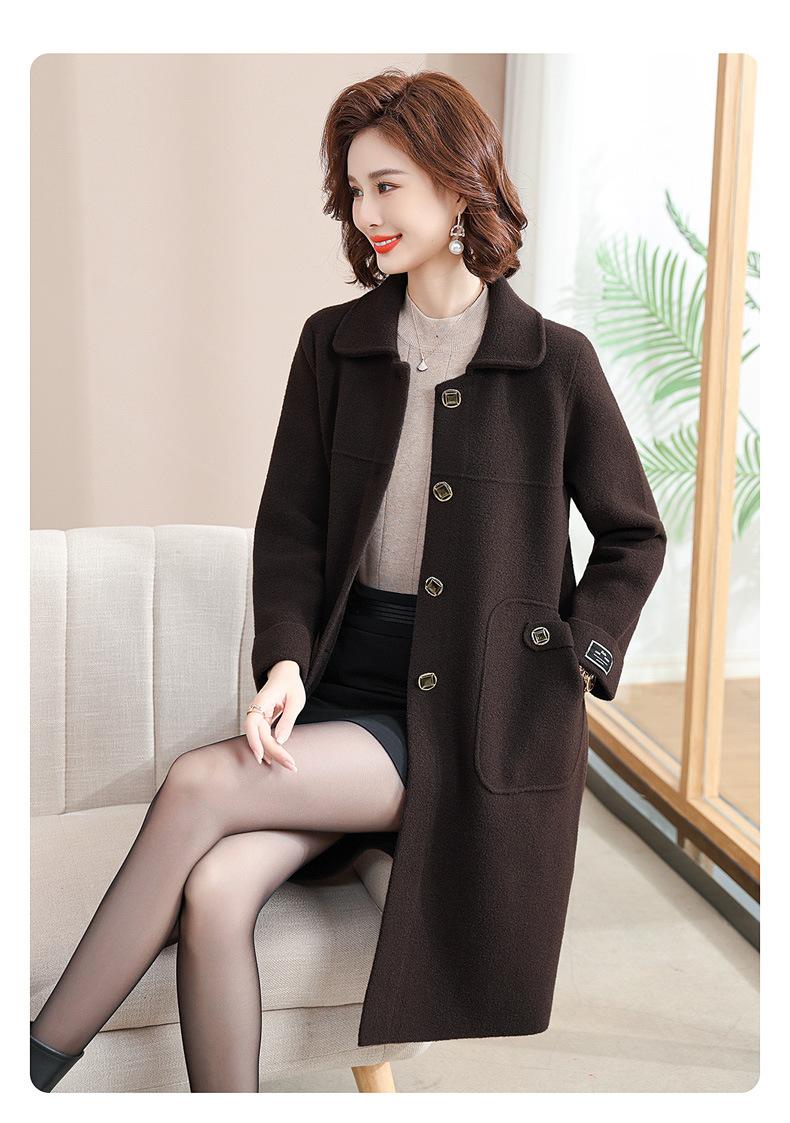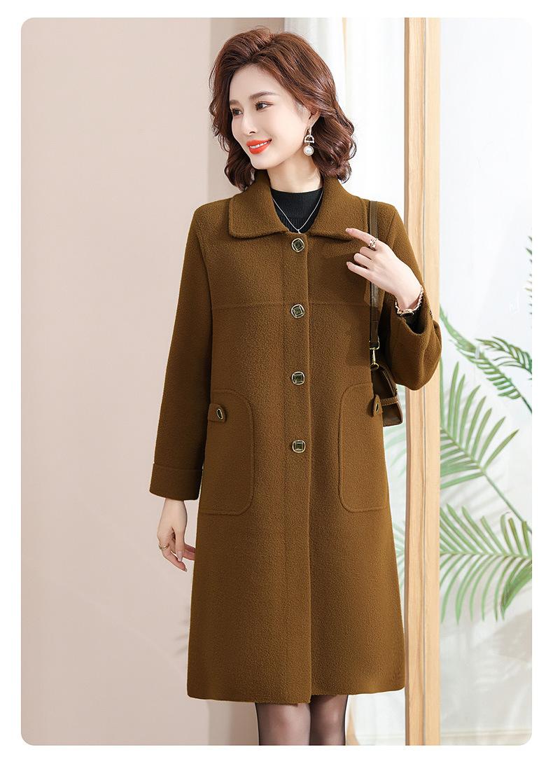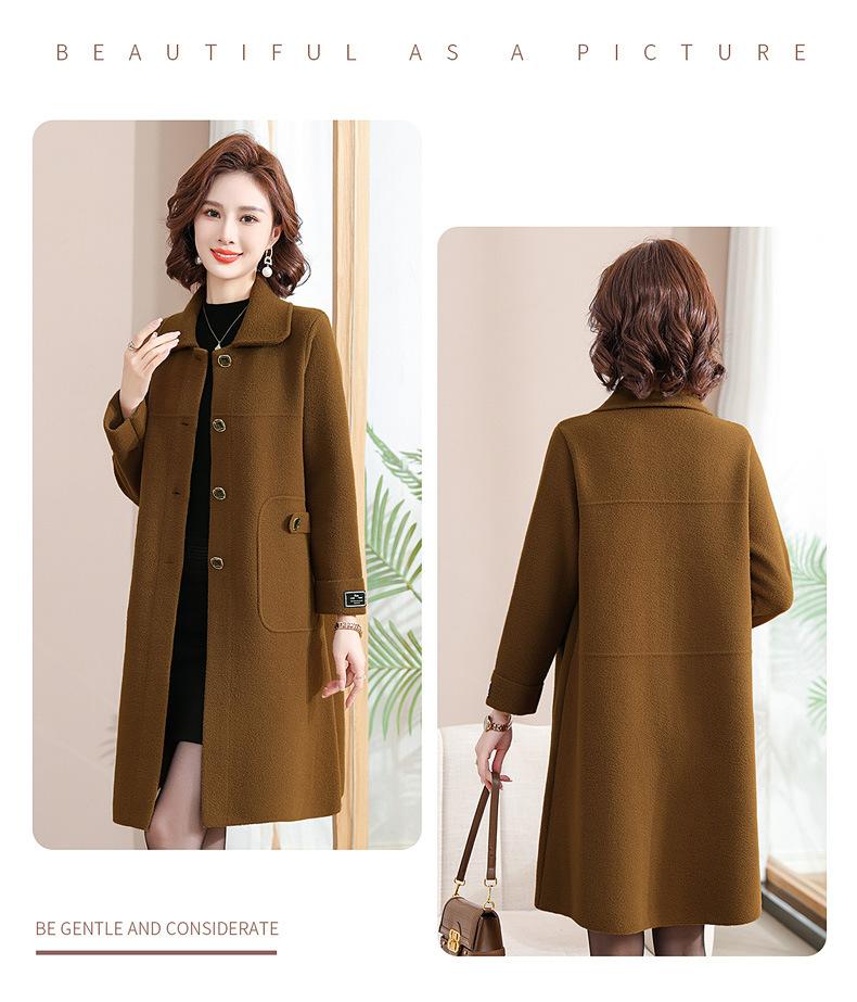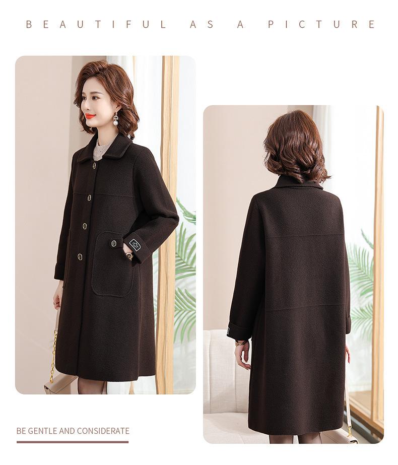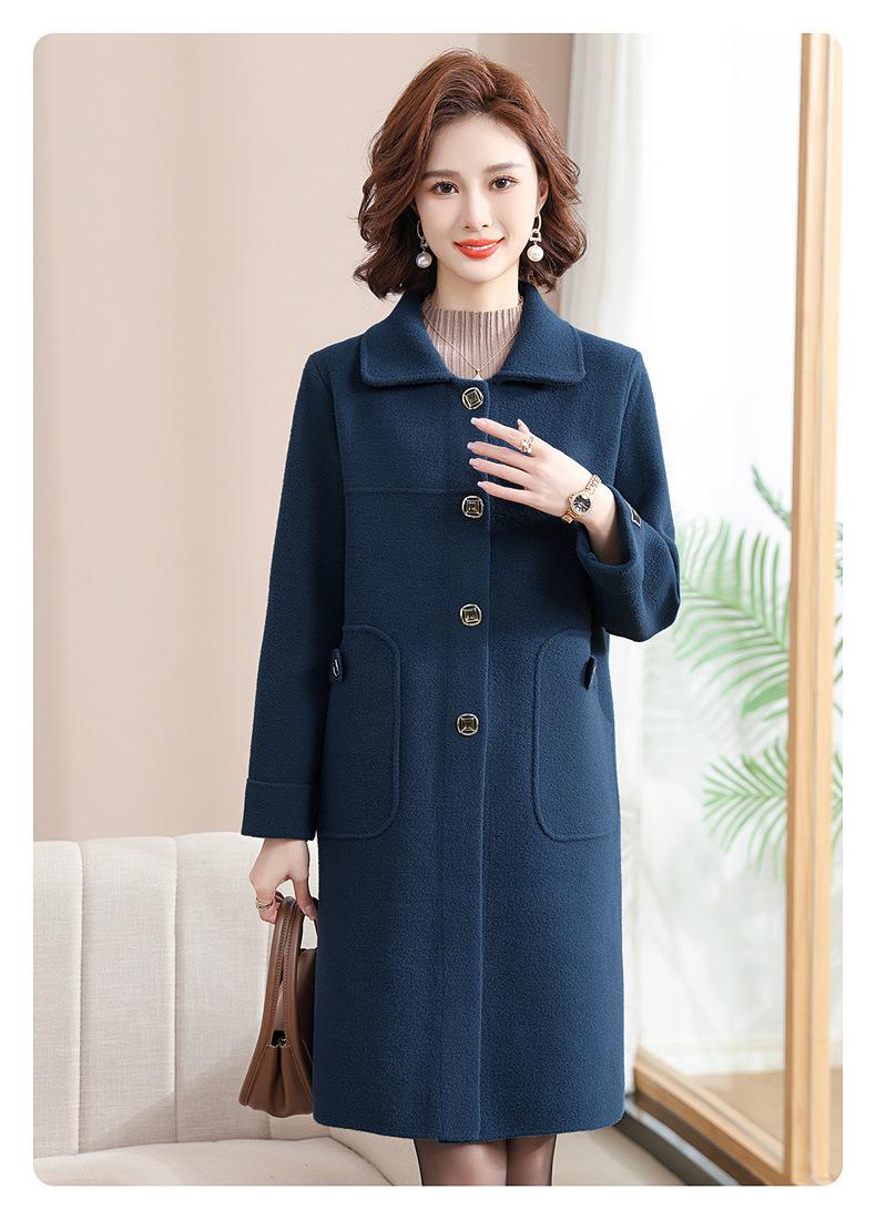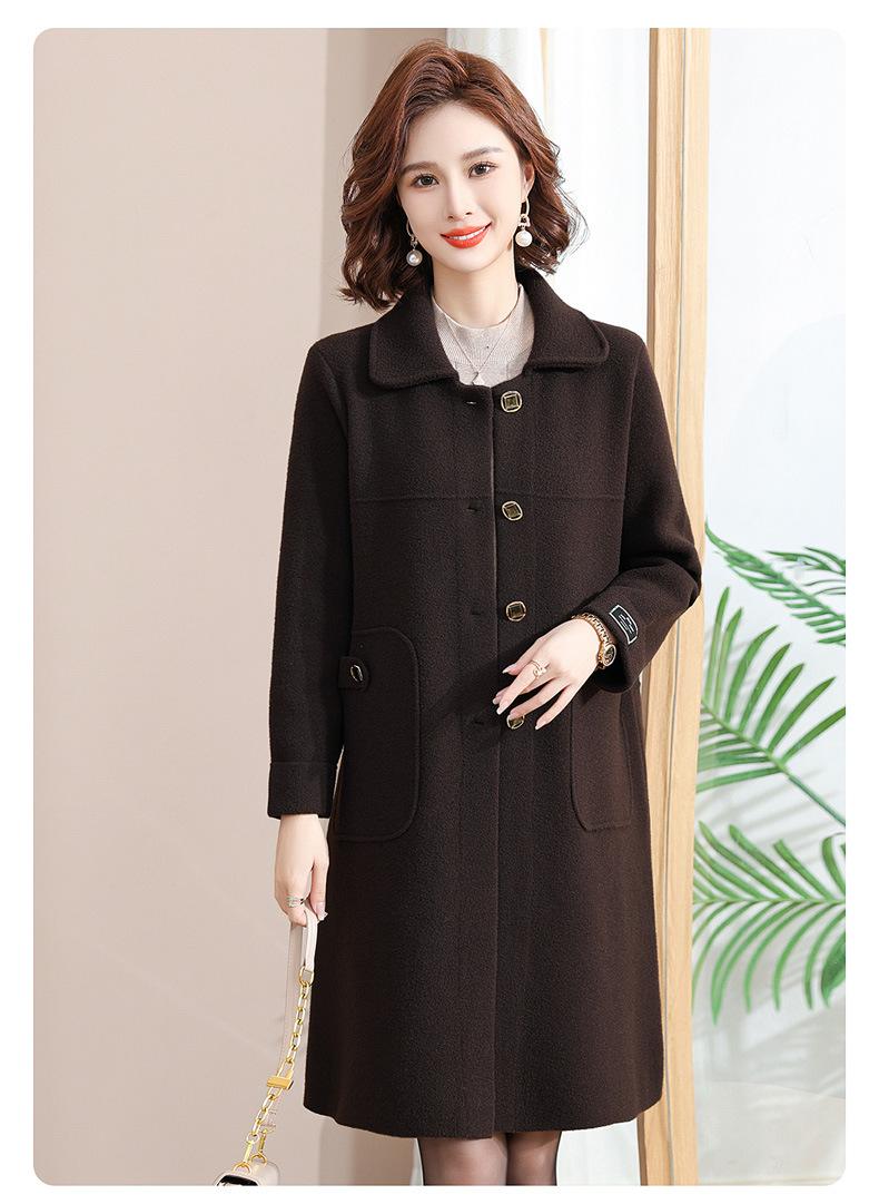 Abrigo de otoño e invierno para mamá, gabardina gruesa, abrigo de lana estilo occidental para mujer, abrigo noble de longitud media, nuevo estilo 2024 para mujeres de mediana edad y mayores.