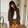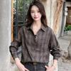 Camisa a cuadros vintage estilo Hong Kong de primavera y otoño para mujer, nueva camisa holgada estilo americano, abrigo, top de manga larga