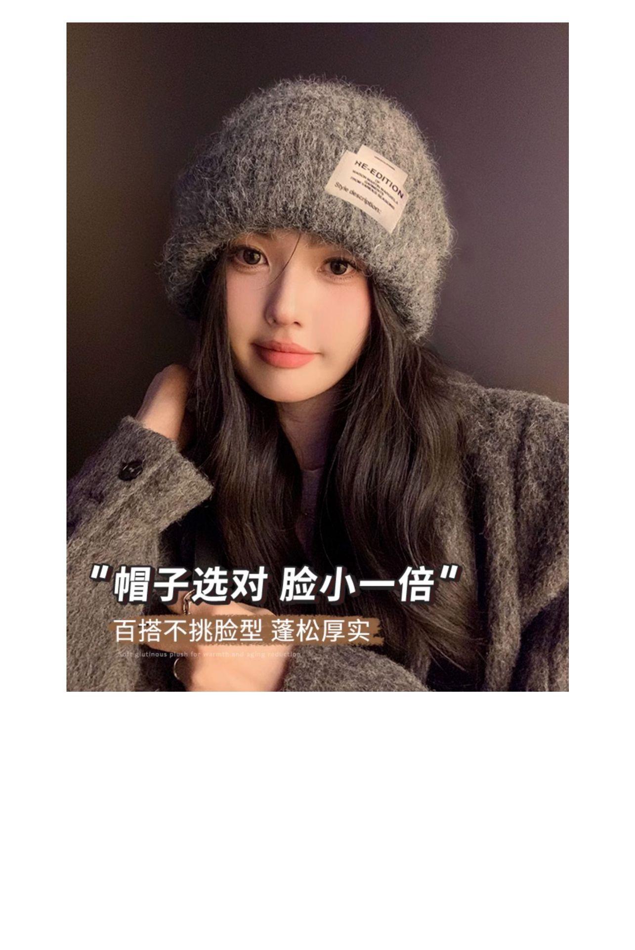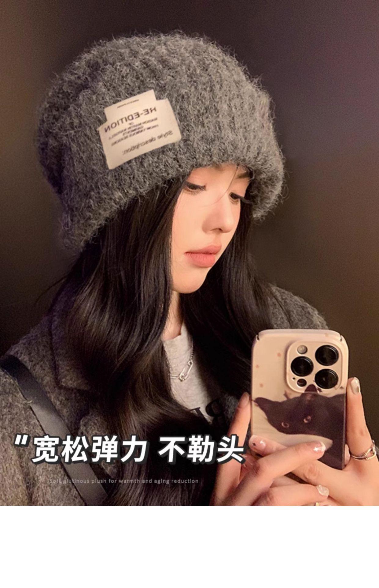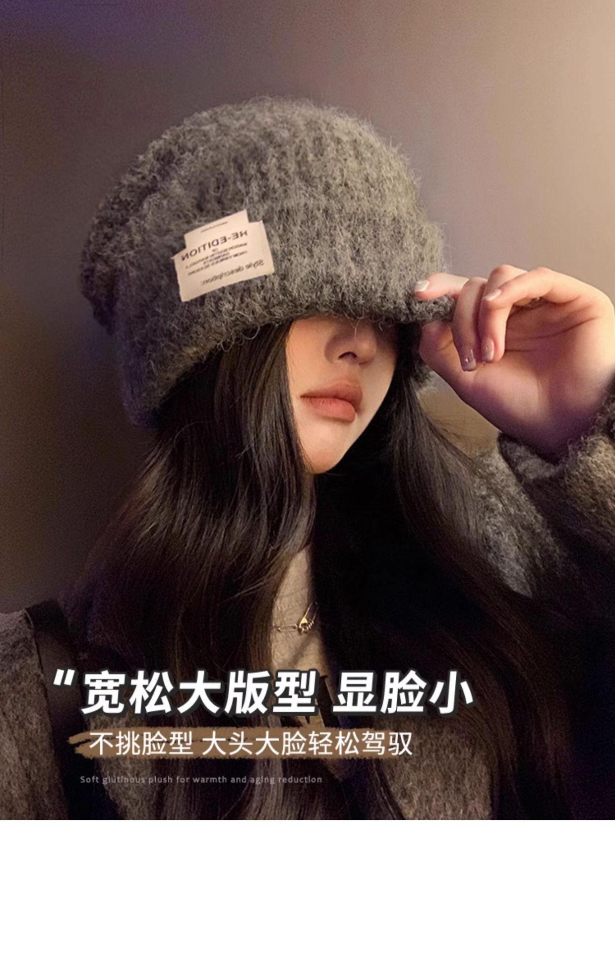 Sombrero Invierno para Mujer 2024 Nuevo Sombrero de Lana Muestra Rostro Pequeño Moda Foto Cálido Sombrero Tejido Protección para las Orejas Gorro Boina Moderno
