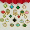Colgante de aleación con incrustaciones de trébol de cuatro hojas, marco dorado, clip de cristal, colgante, pulsera, collar, accesorios de material, venta al por mayor