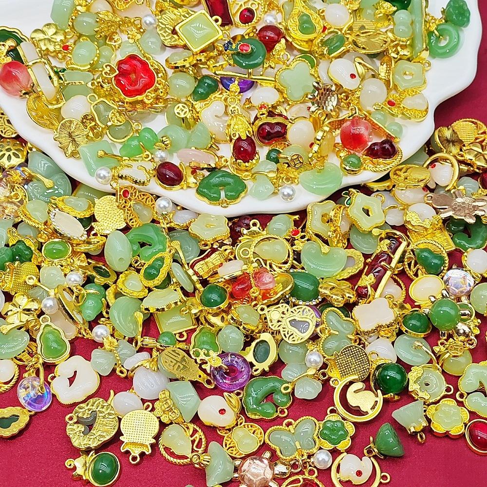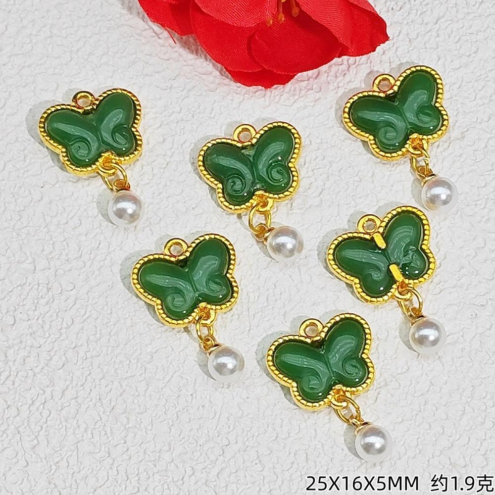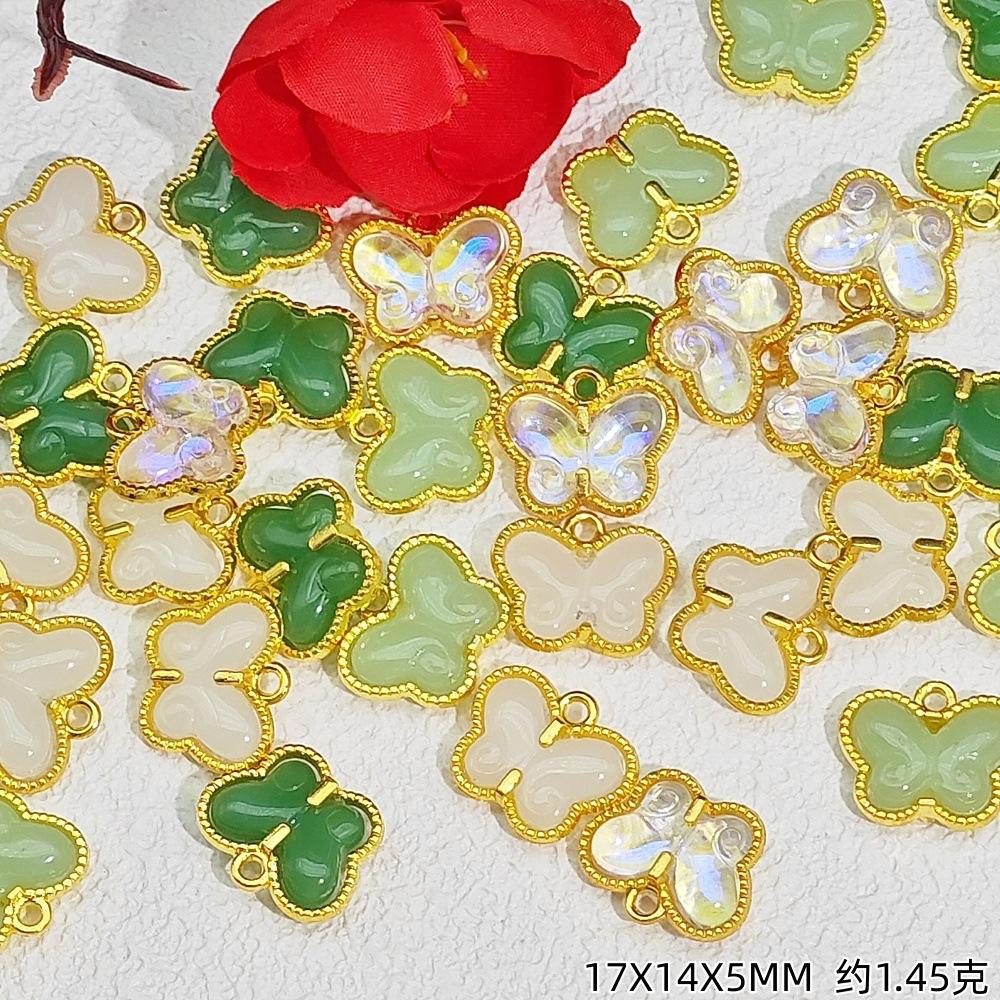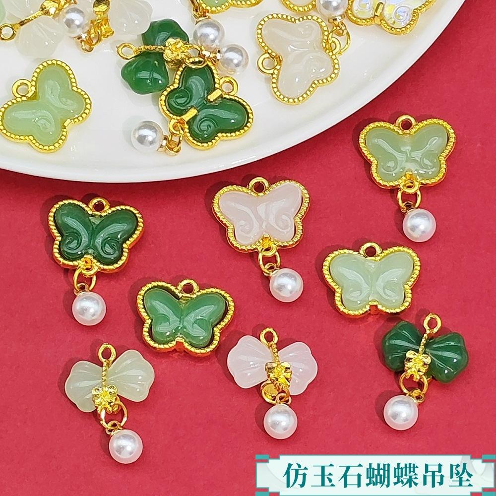 Accesorios de aleación, colgante de mariposa de jade de imitación, accesorios hechos a mano, pulsera, collar, pulsera, material de joyería, colgante pequeño