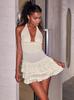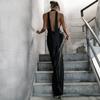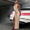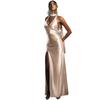 Moda 2025 Sexy Cuello V Profundo Bolsillo Halter Espalda Descubierta Cinta de Satén Abertura Cadera Vestido