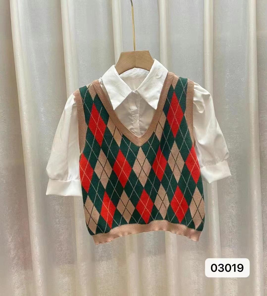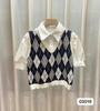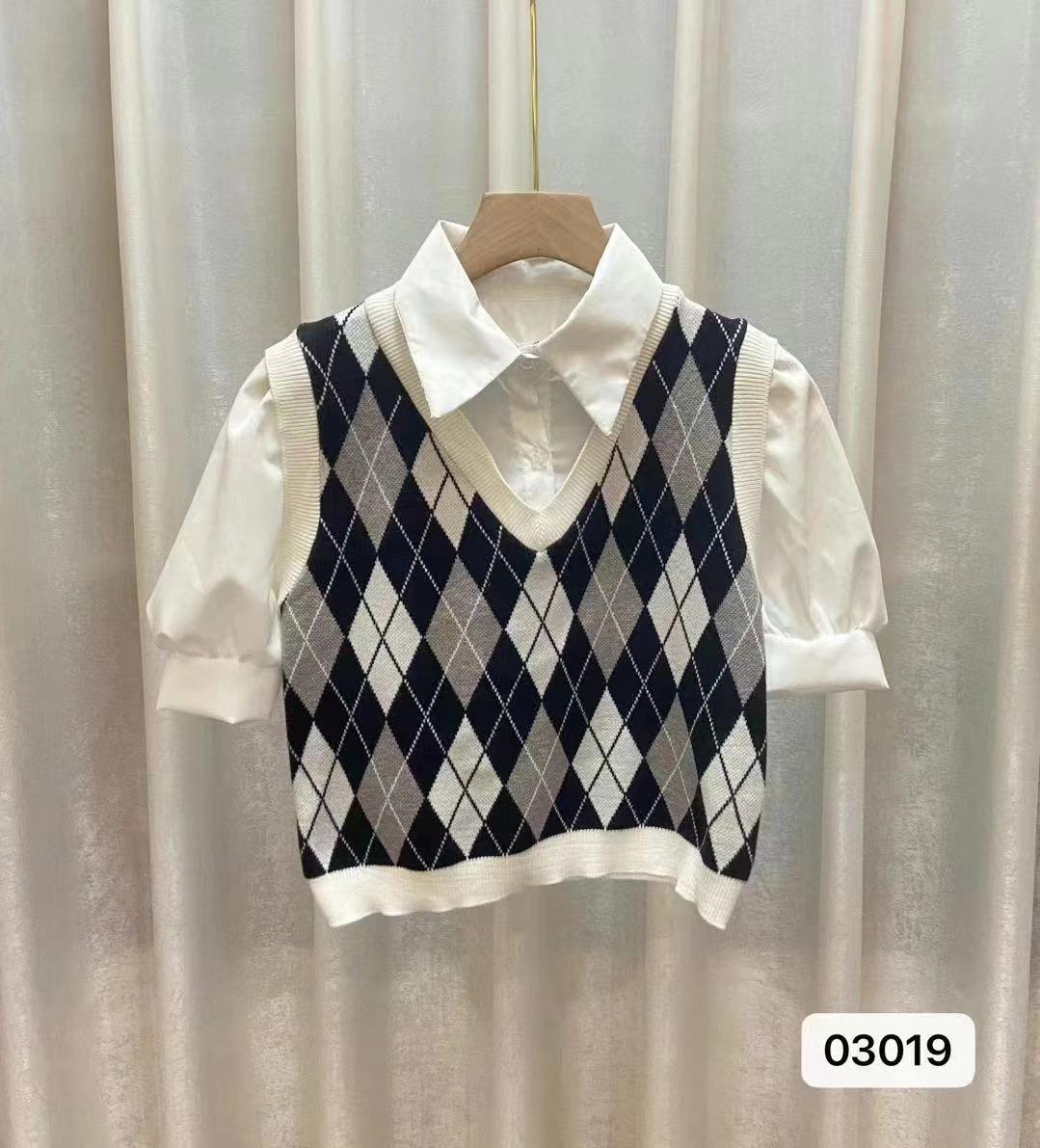 Polo costuras cuello punto manga corta estilo preppy coreano Camiseta cuello polo chaleco falso dos piezas top manga corta ropa de mujer