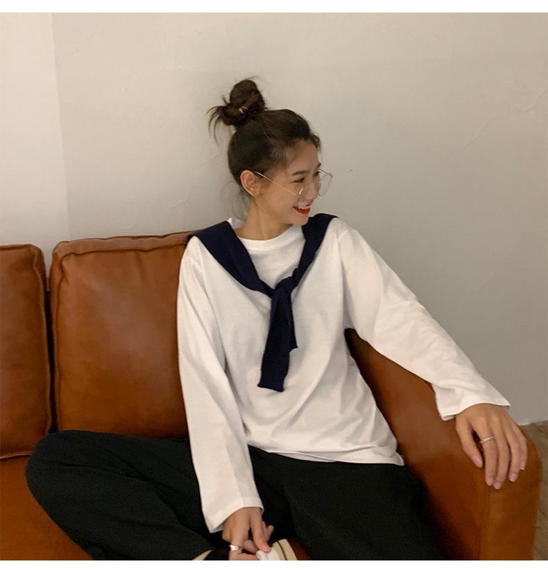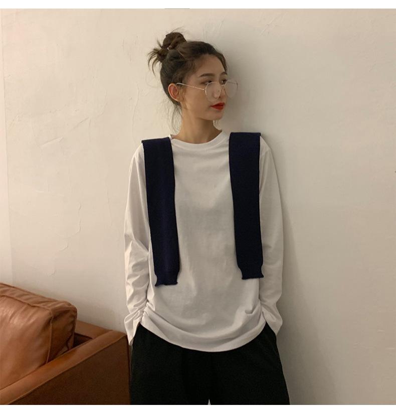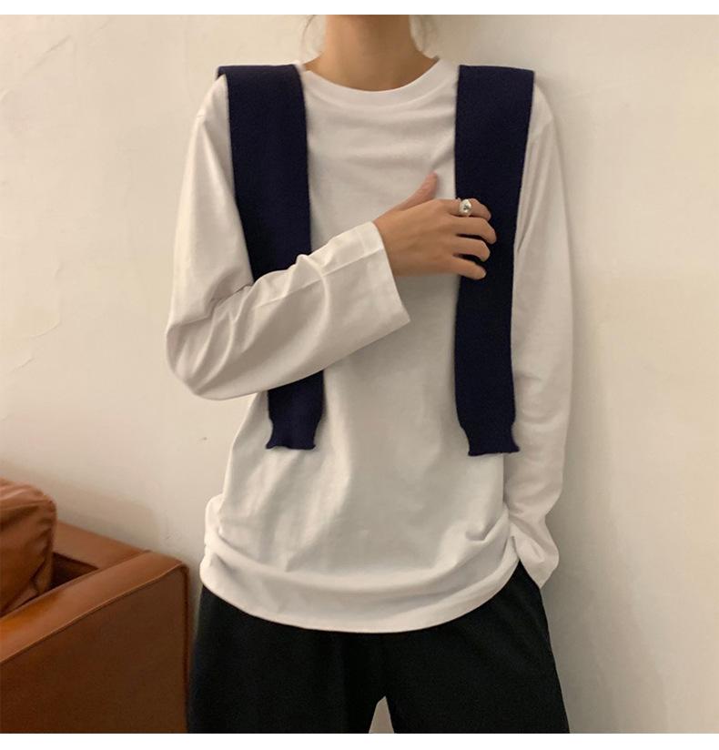 Camiseta básica blanca para mujer 2025 Nueva ropa de mujer estilo coreano de principios de primavera y otoño con color puro Camiseta de manga larga para estudiante para mujer