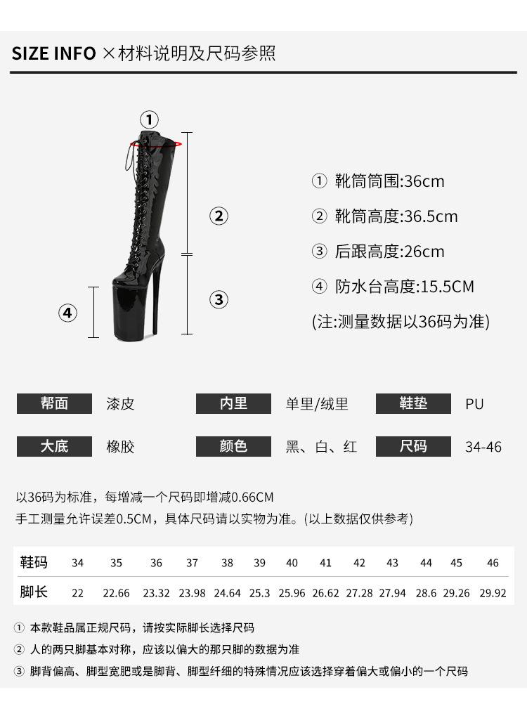 Botas de baile de tubo de acero de estilo europeo y americano con tacón superalto de 26 cm, botas de caballero de gran tamaño.