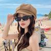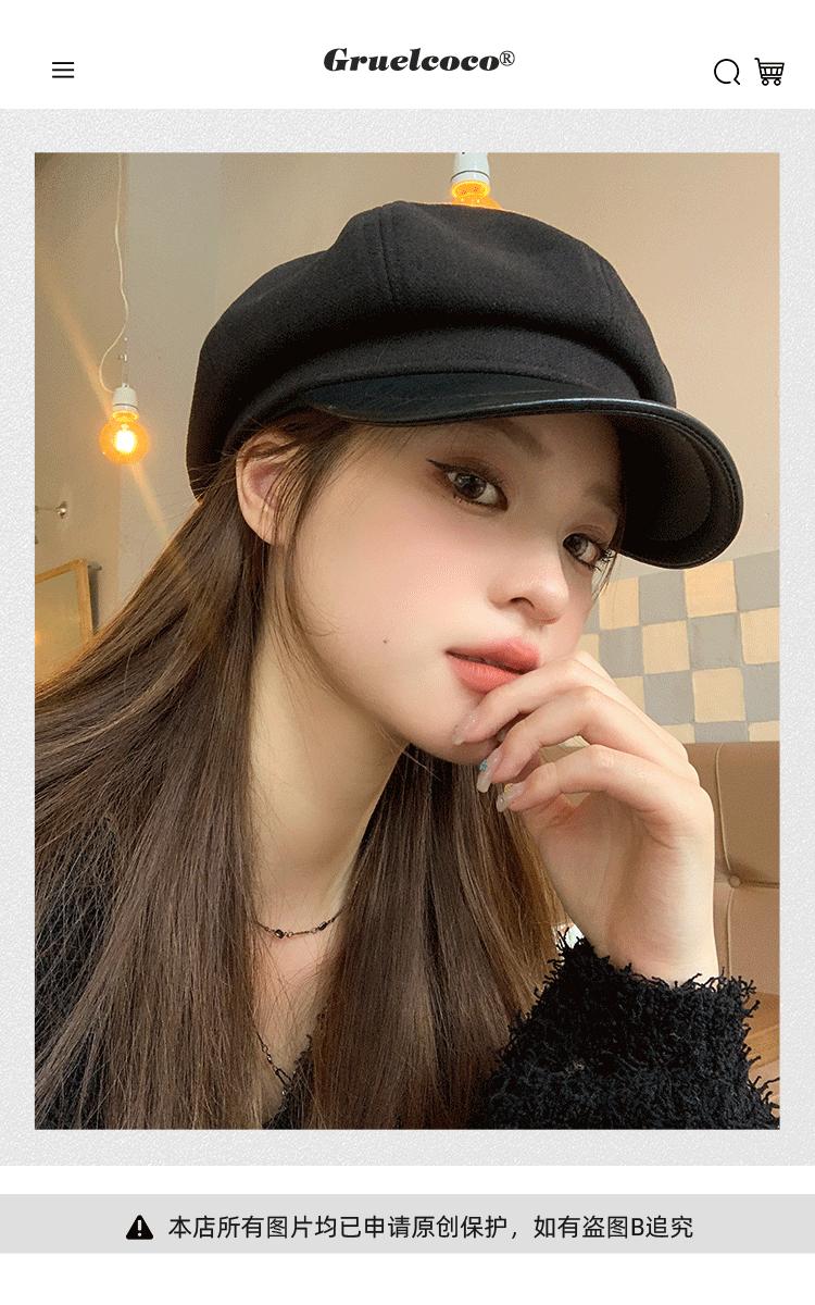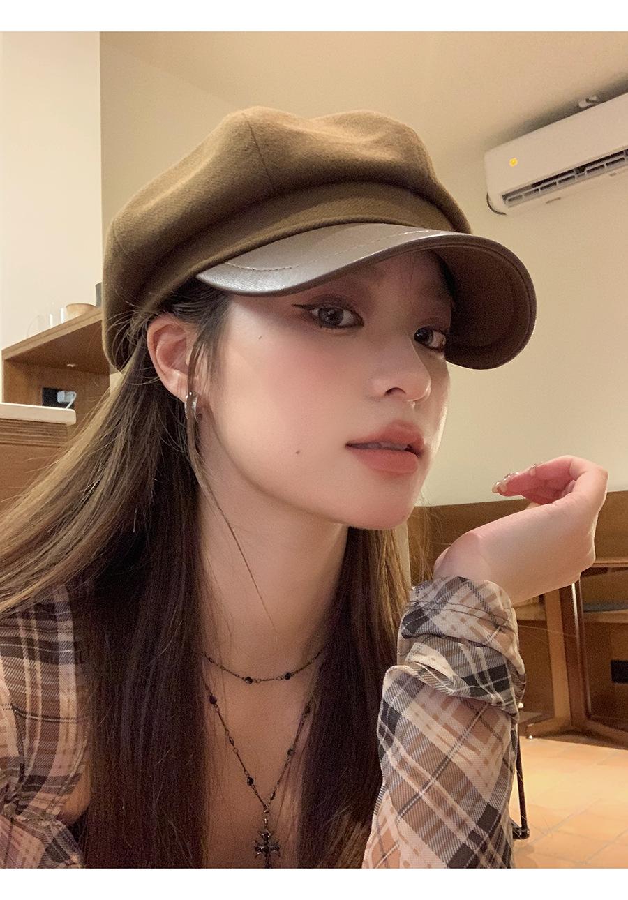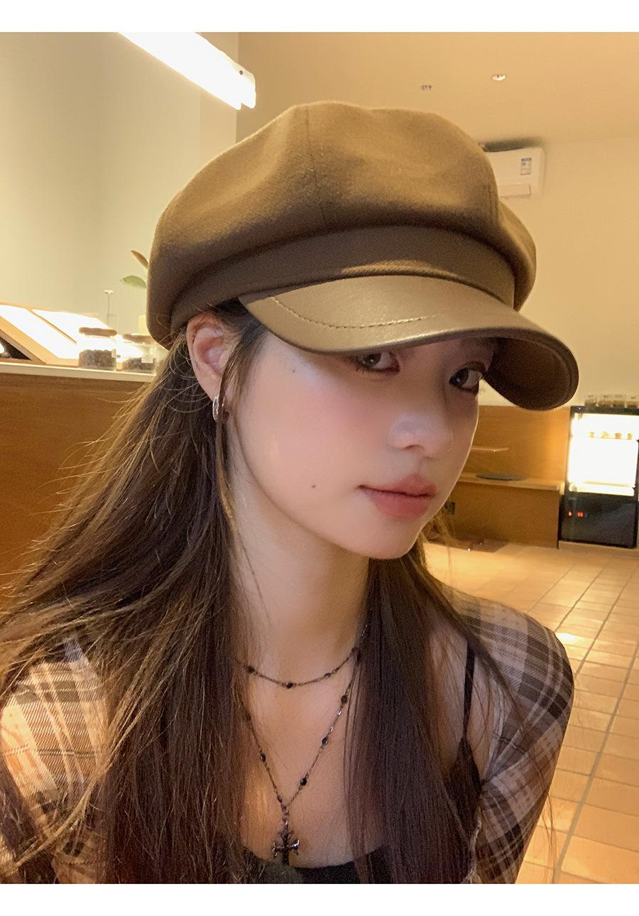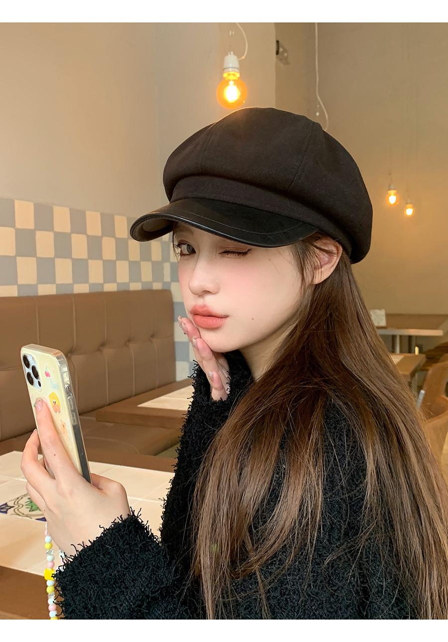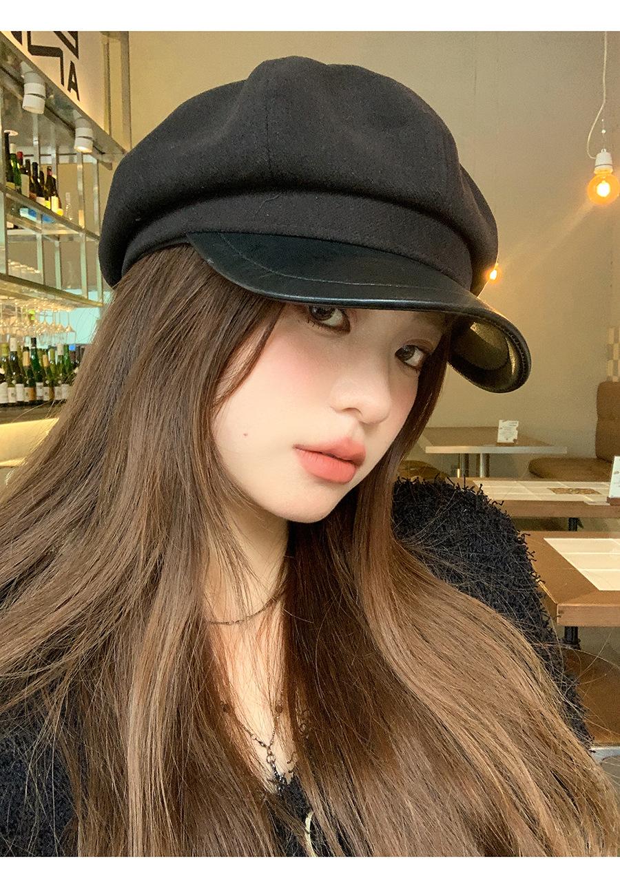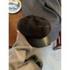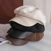 Sombrero octogonal de cuero PU negro circunferencia de cabeza grande boina otoño e invierno sombrero de pintor gorra con visera sombrero británico sombrero de cuero