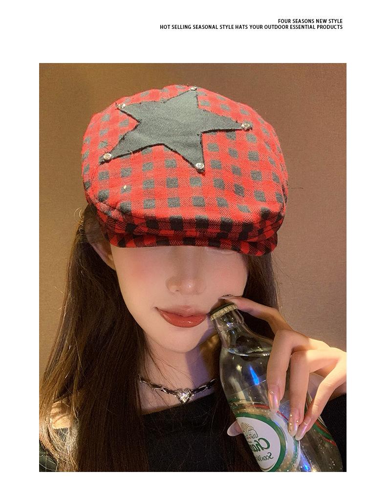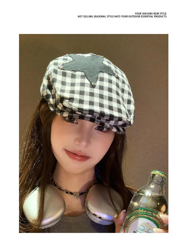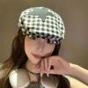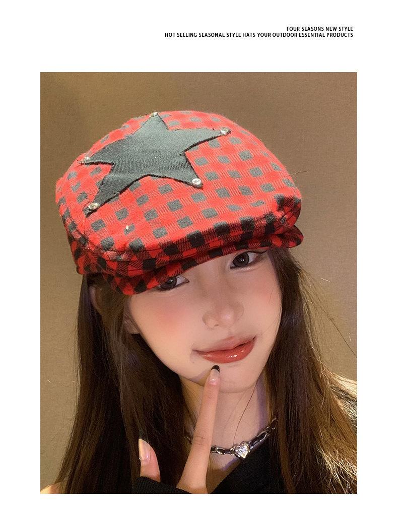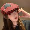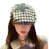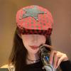 Nuevo Llegada Gorro Plano Estrella a Cuadros Estilo Coreano Otoño e Invierno Artístico Combinable Lindo Boina Sombrero Pequeño para Mujer